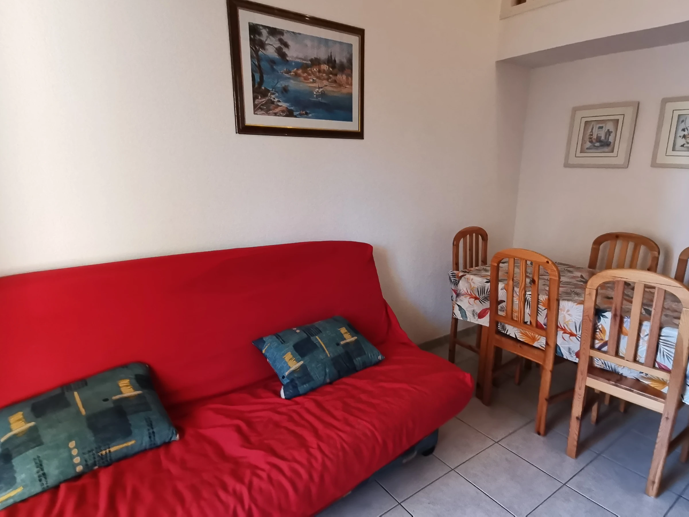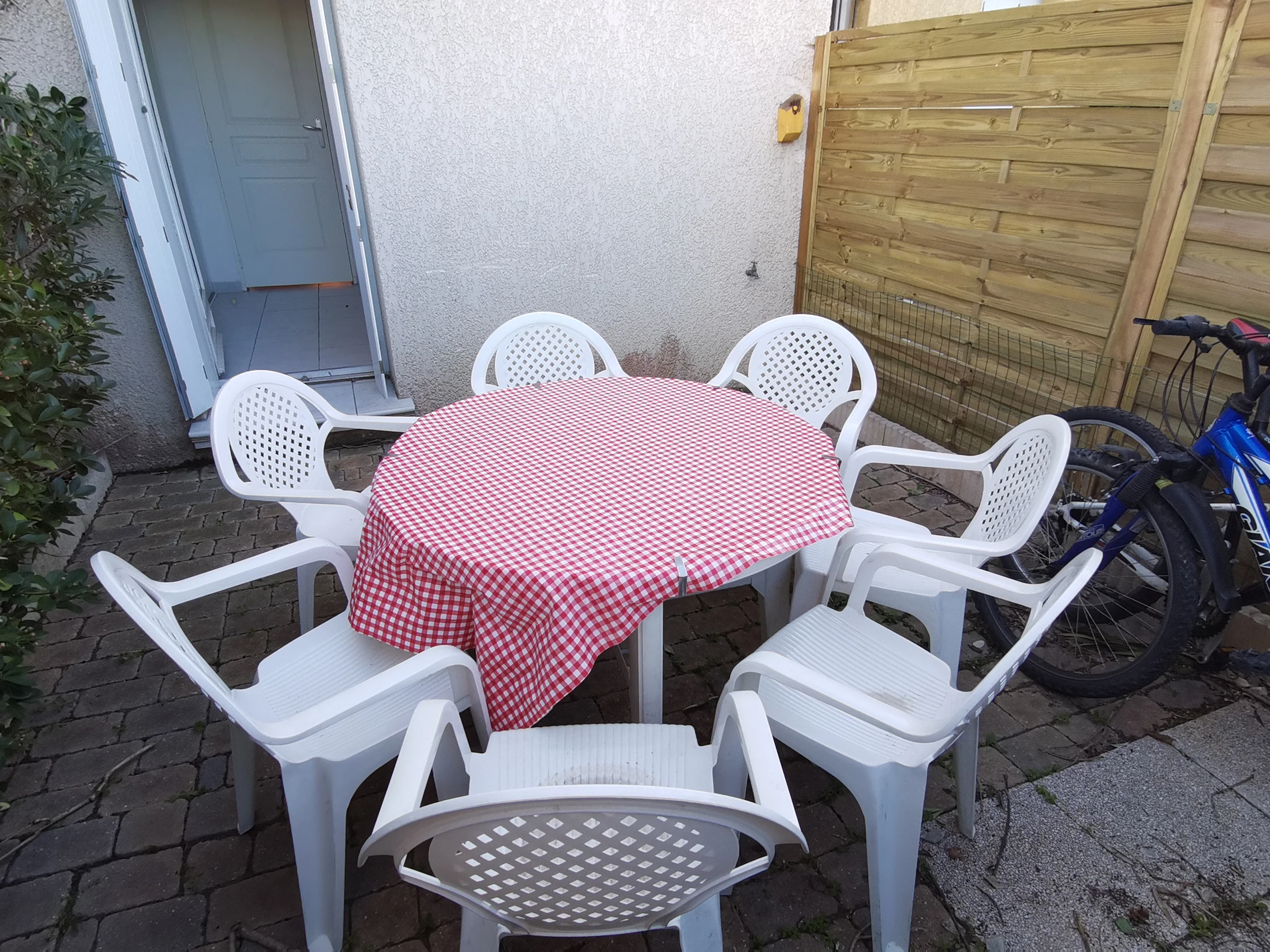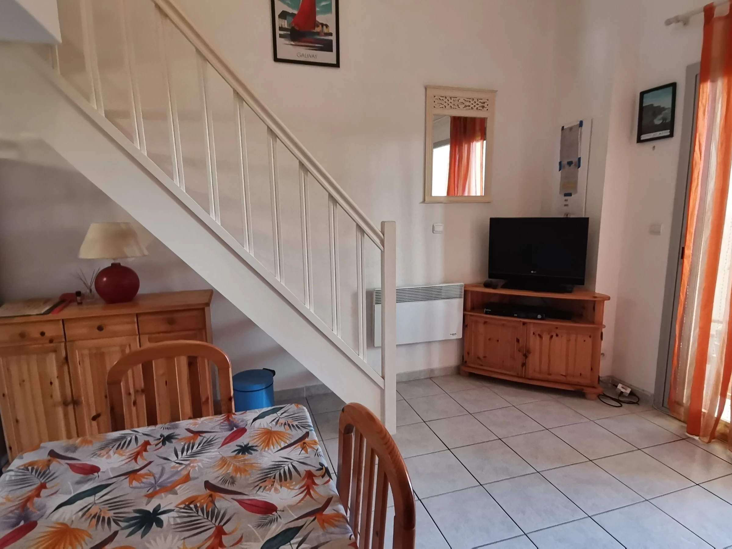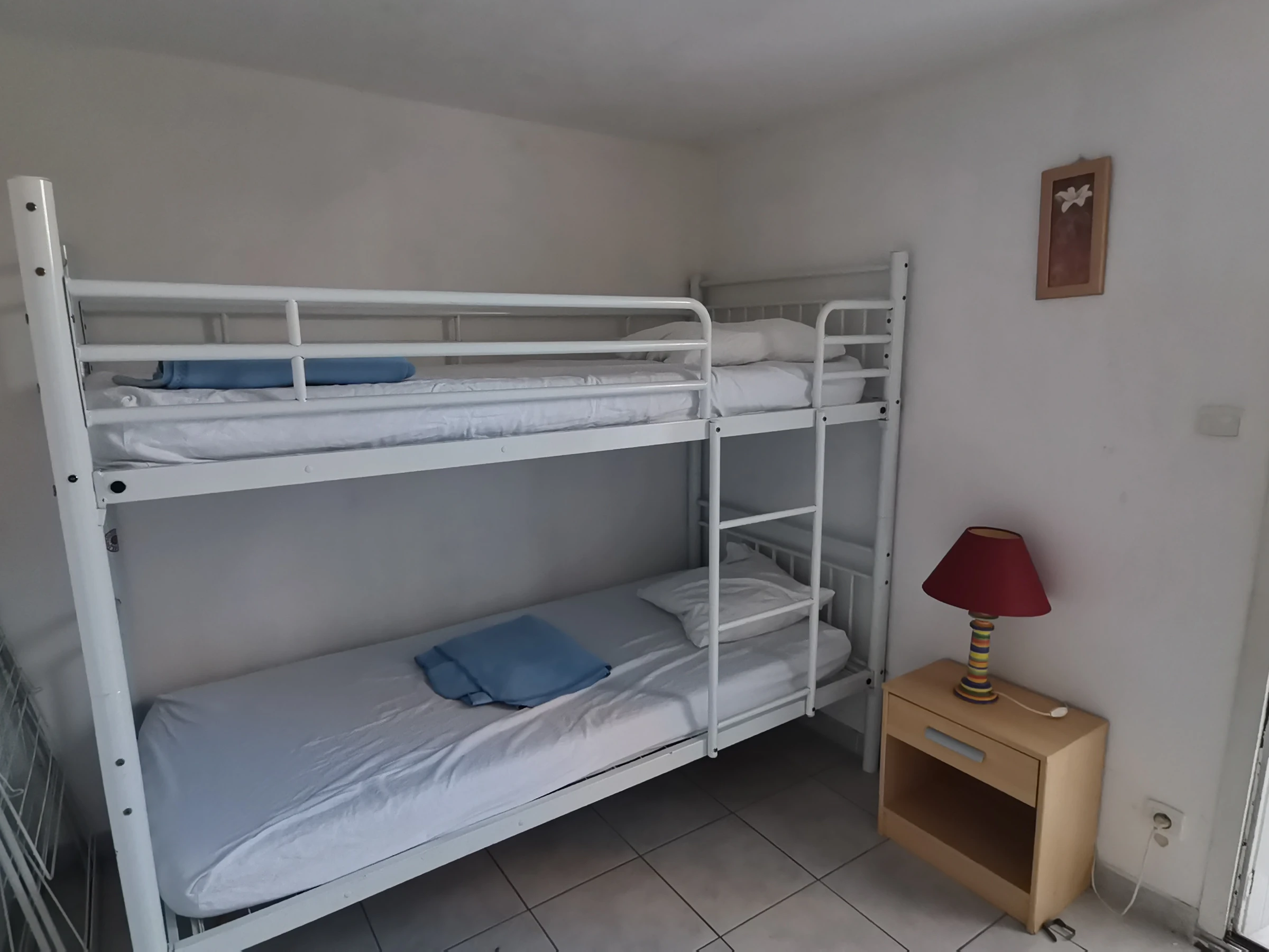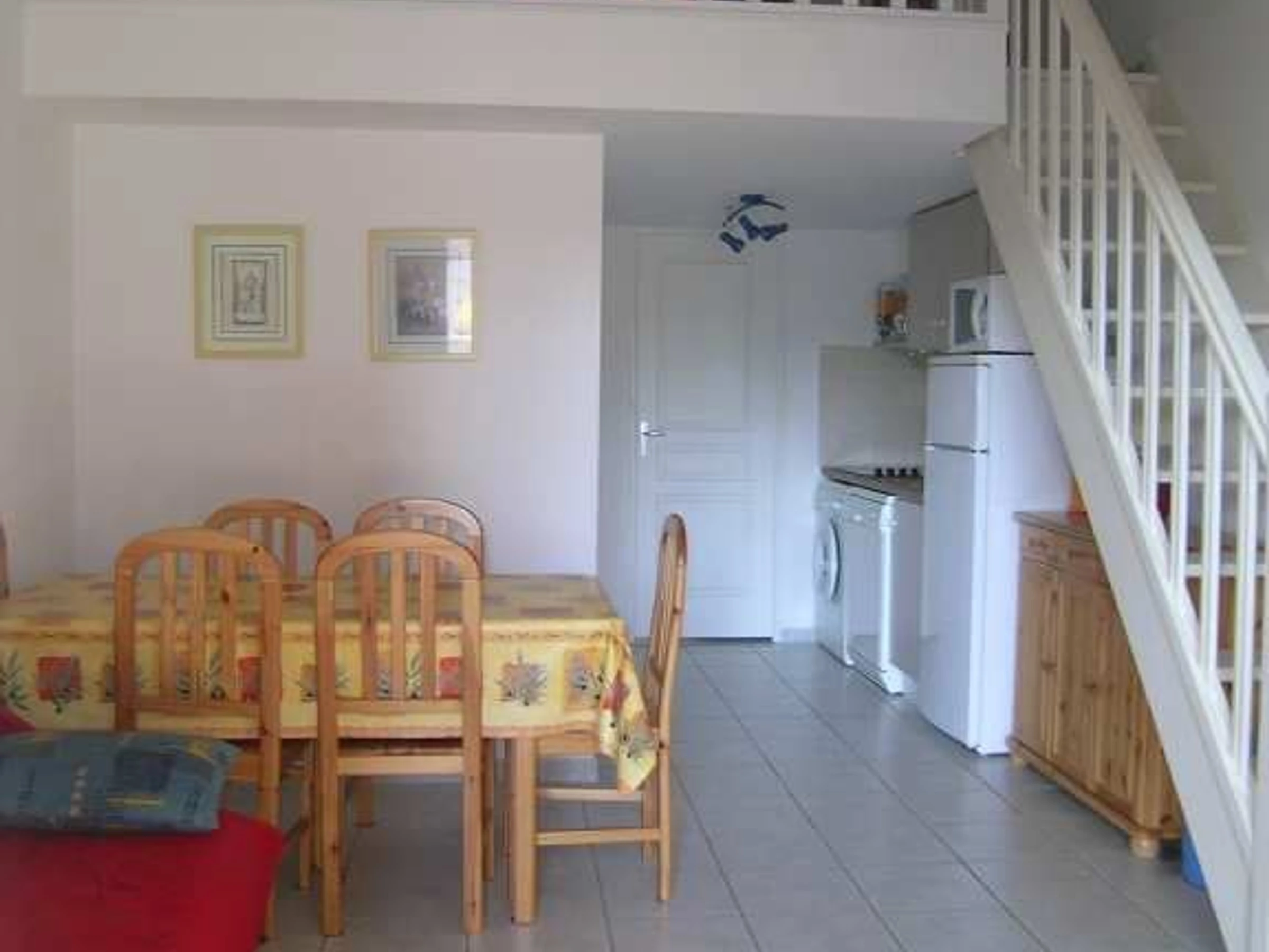 En résidence sécurisée avec piscine, un pavillon 6 pers comprenant un séjour avec coin cuisine équipée, une salle de bains, un wc indépendant et une chambre avec lits superposés( 2 x90 ) .