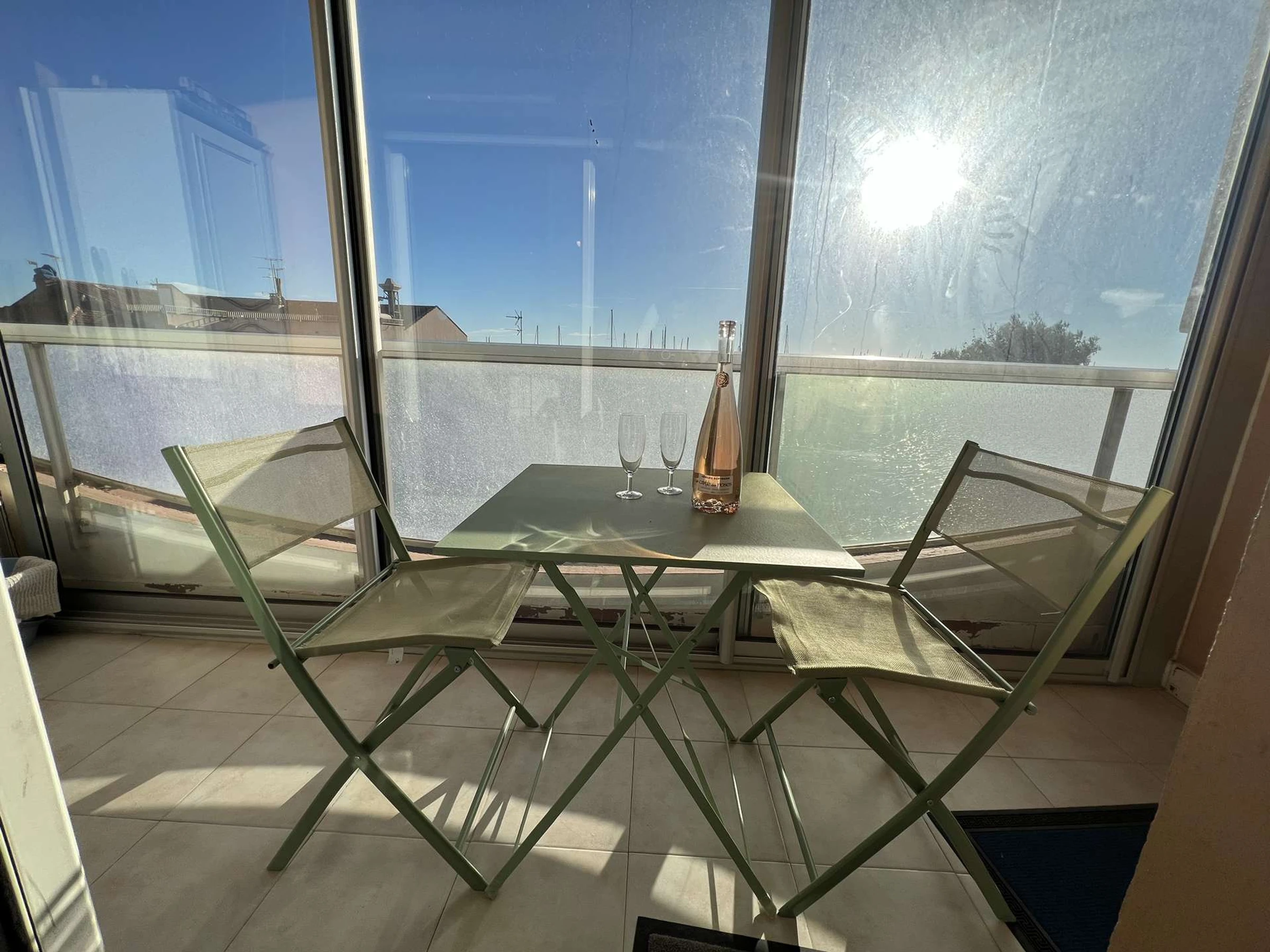 Composition : séjour avec un canapé lit clic clac 140, une chambre avec un lit en 140cm, une salle d'eau, un coin cuisine équipé (une plaque électrique, un réfrigérateur/congélateur, micro-ondes/four, une lave- vaisselle, un lave-linge etc.), un balcon où vous pouvez manger.