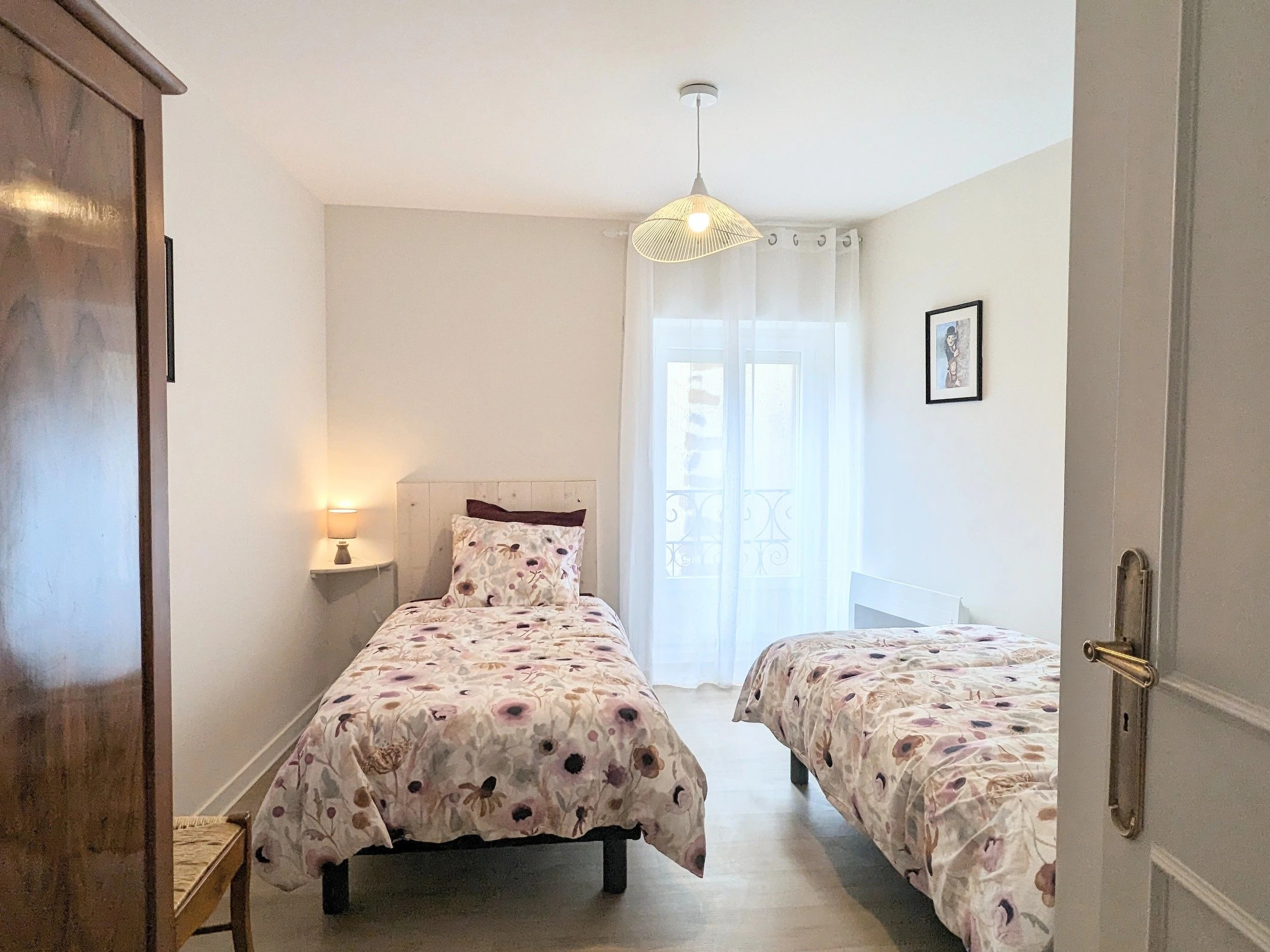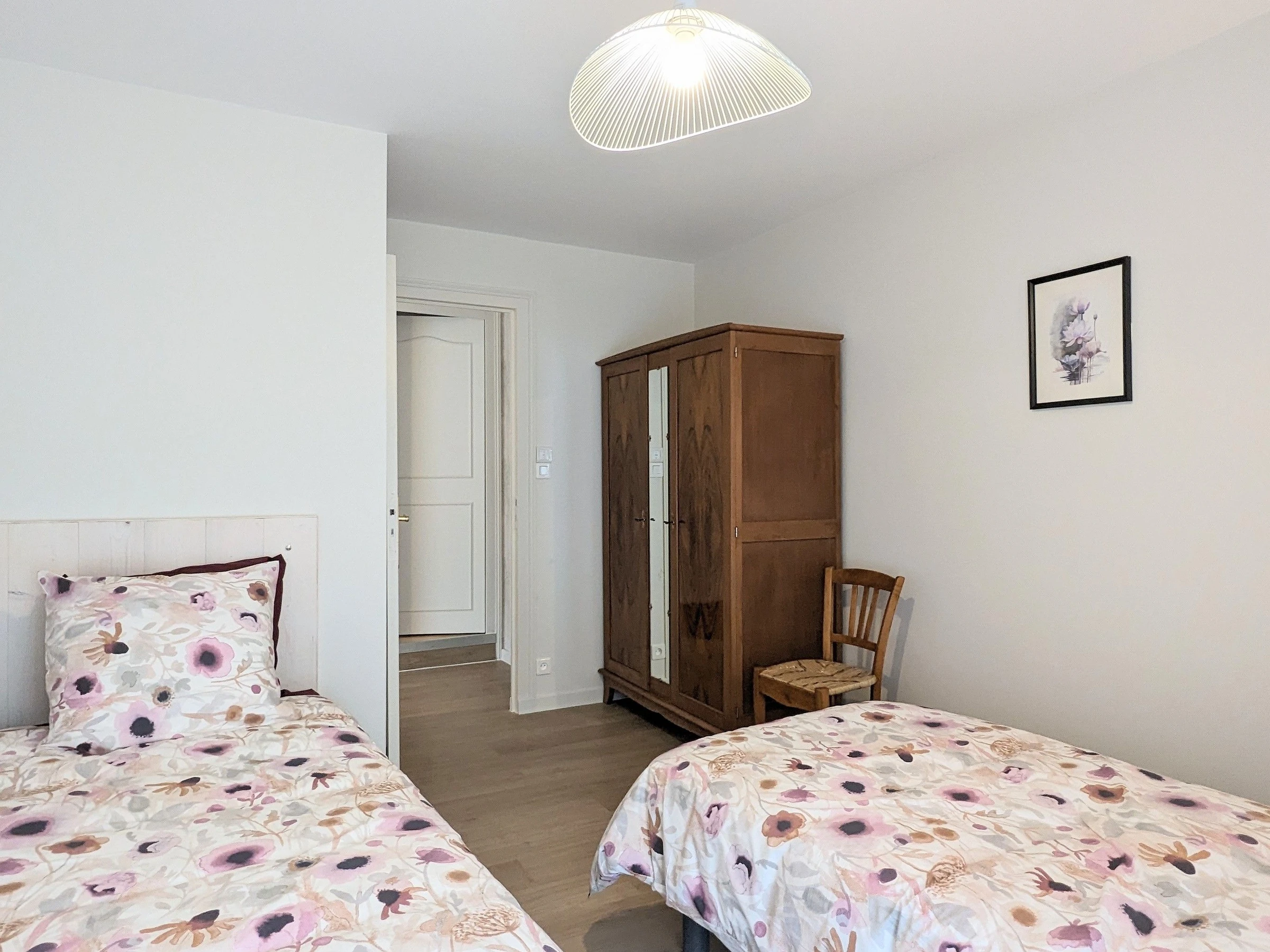 A l'étage, 2 chambres spacieuses avec lits doubles en 160x200 et une troisième chambre équipée de 2 lits en 90x190. Une grande salle d'eau et un wc séparé complètent l'étage.