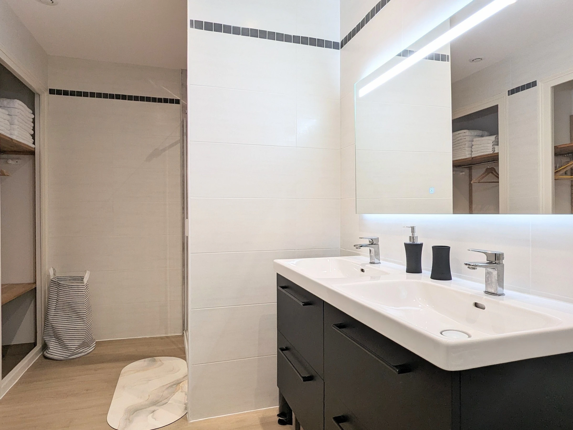 Pour les charges une consommation raisonnable est demandée (maximum 16kwh par jour) Accessible par une terrasse close et sécurisée, l’entrée ouvre sur une grande pièce de vie comprenant une cuisine entièrement équipée, un espace repas et un coin salon.
