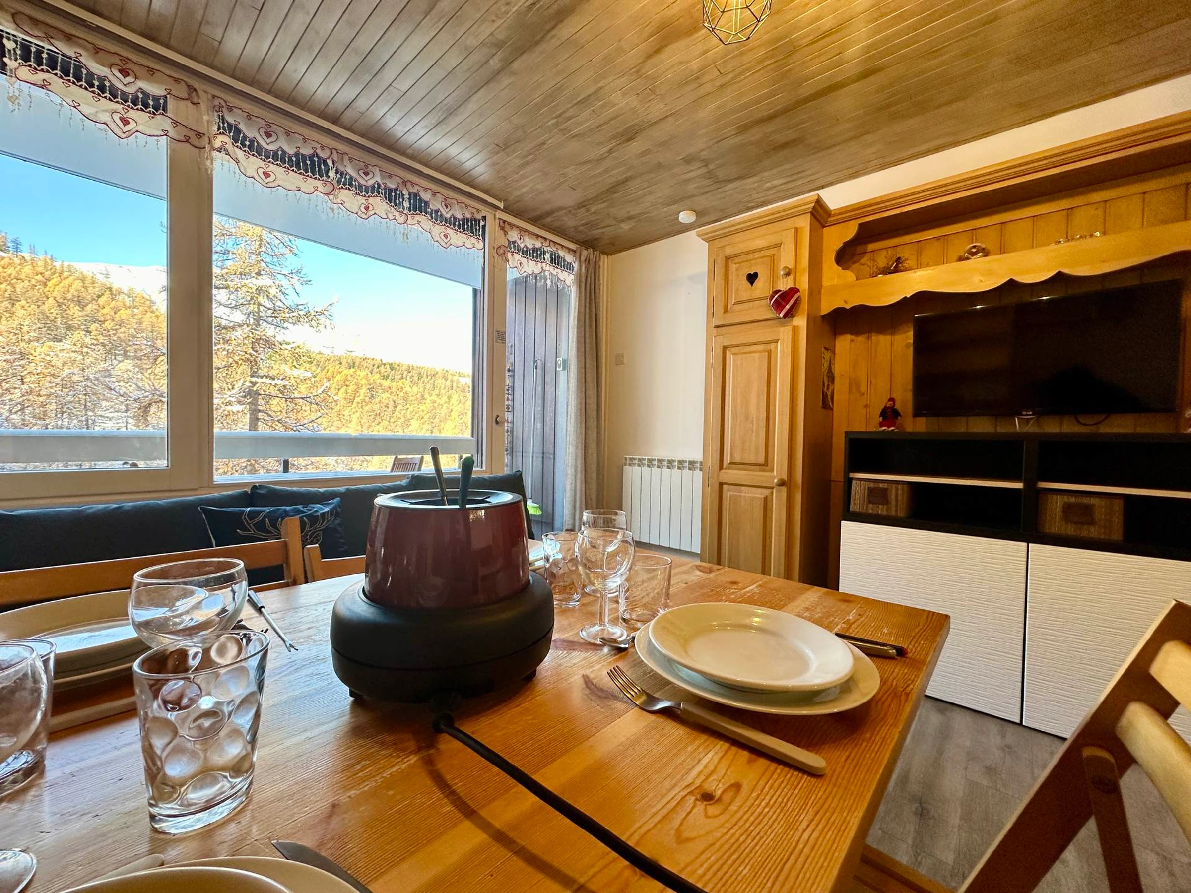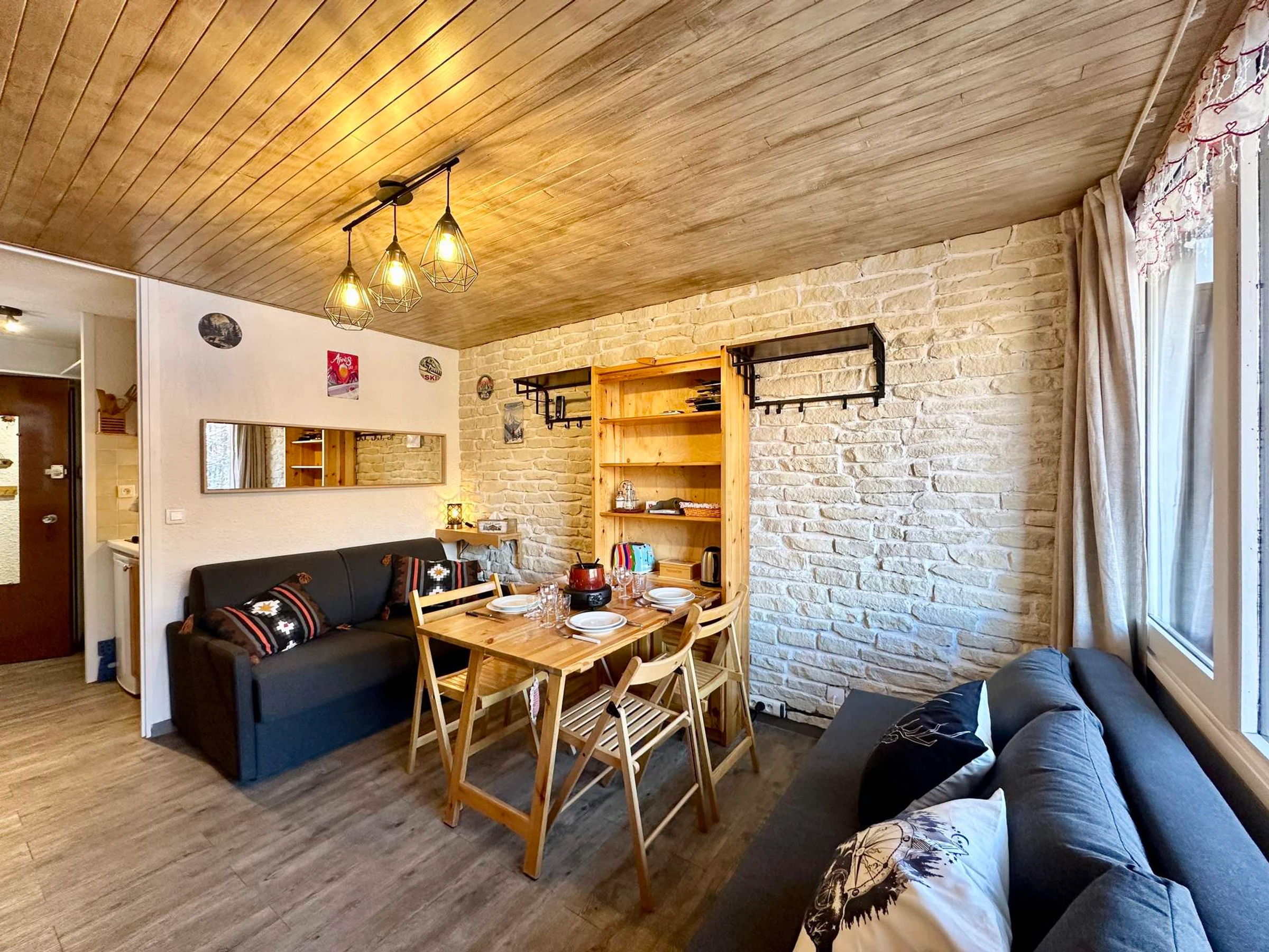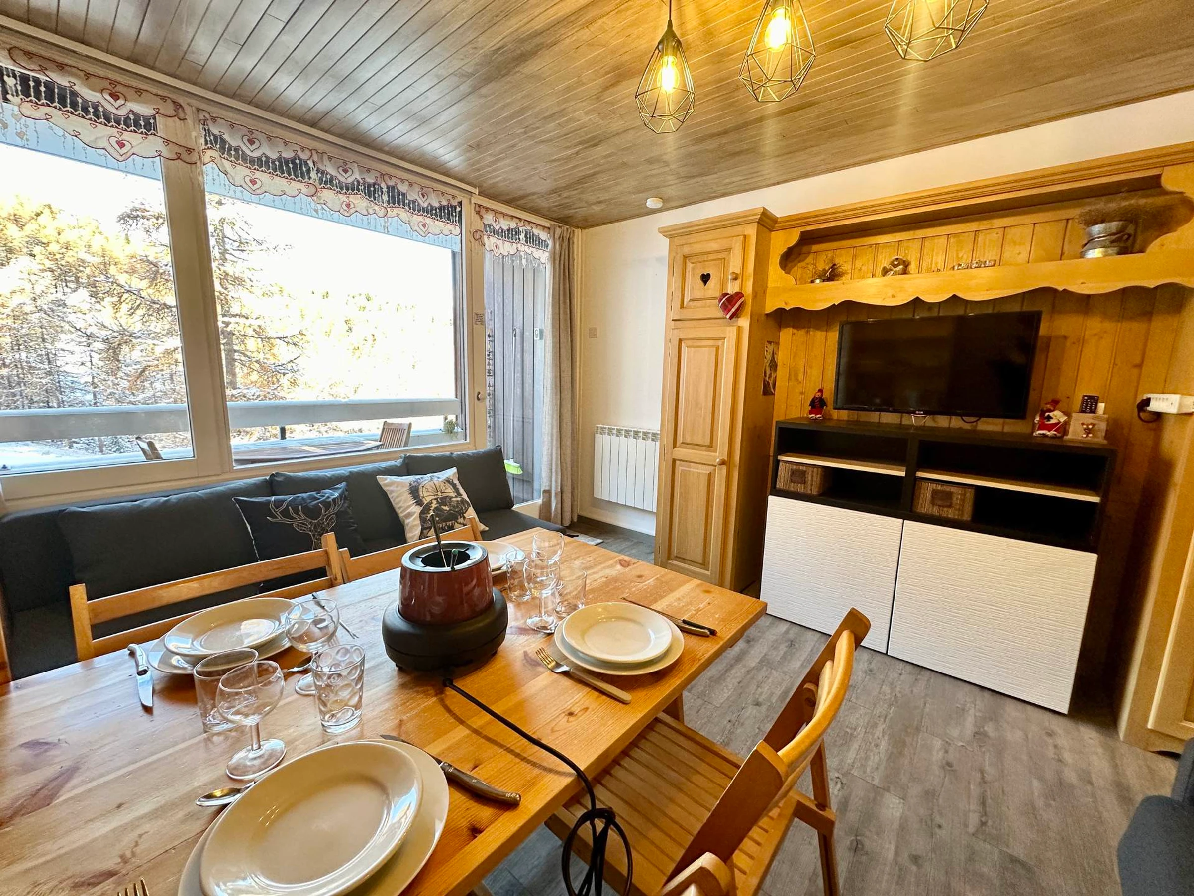 L'appartement dispose d'une télévision, d'une table modulable, et offre tout le confort nécessaire pour votre séjour.