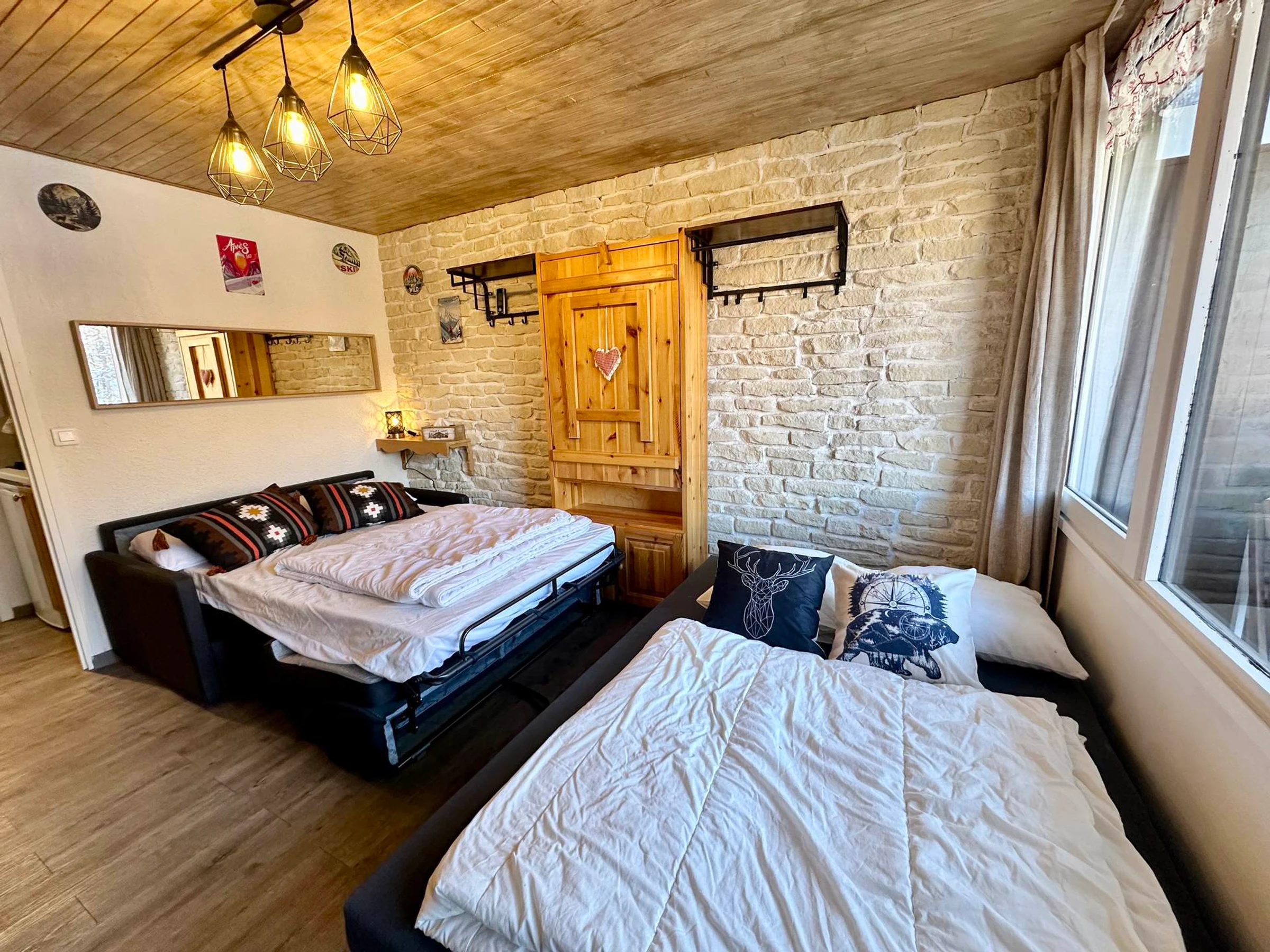 Le salon est aménagé avec deux canapés-lits (140 x 200) offrant un couchage confortable.