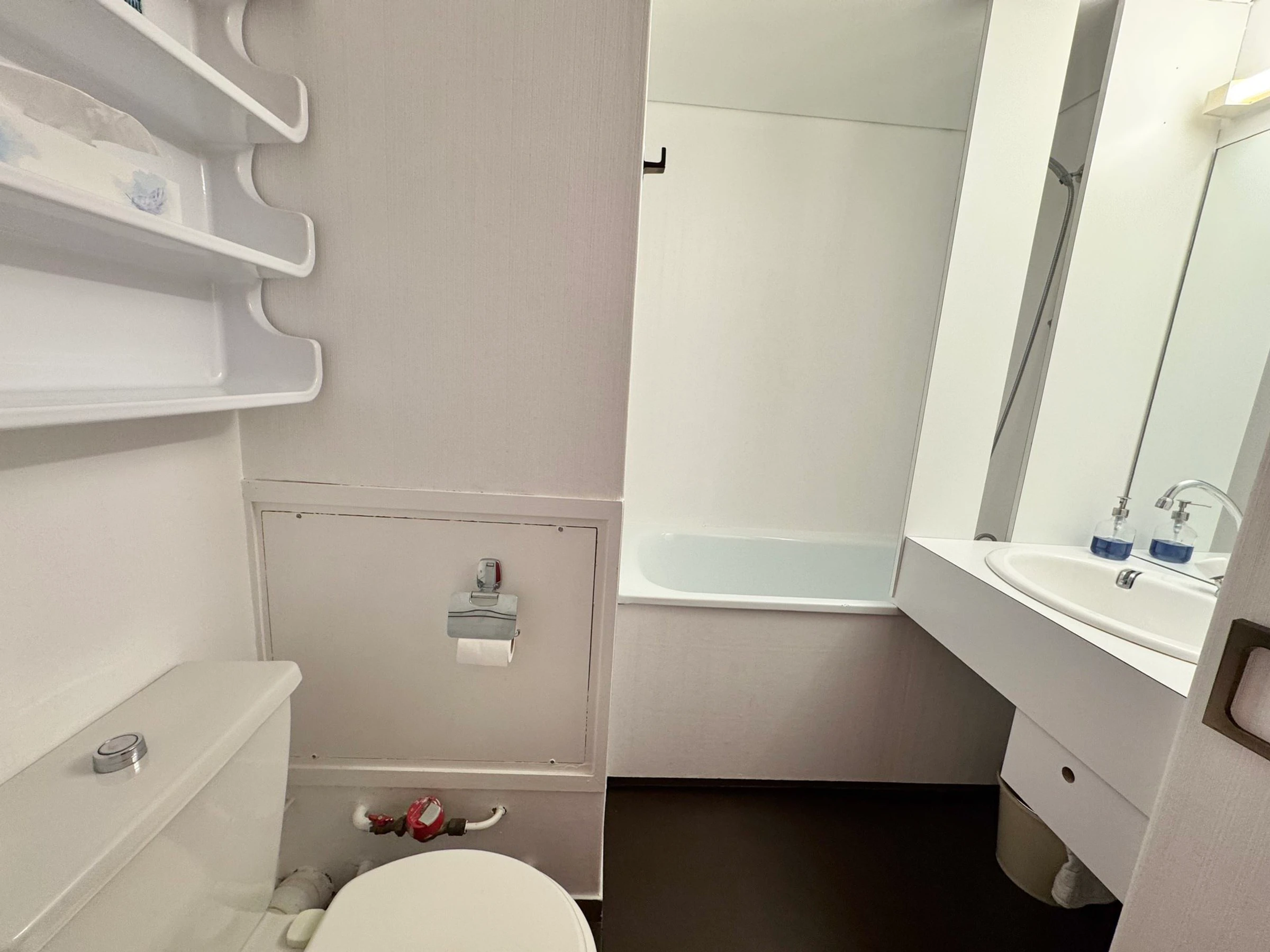 L’appartement dispose d’un séjour avec une cuisine ouverte entièrement équipée : lave-vaisselle, four combiné, réfrigérateur, machine à café à filtres et appareil à raclette sont à votre disposition pour des repas conviviaux. Le salon, est équipé d’une télévision. La salle de bains comprend une baignoire et des toilettes.