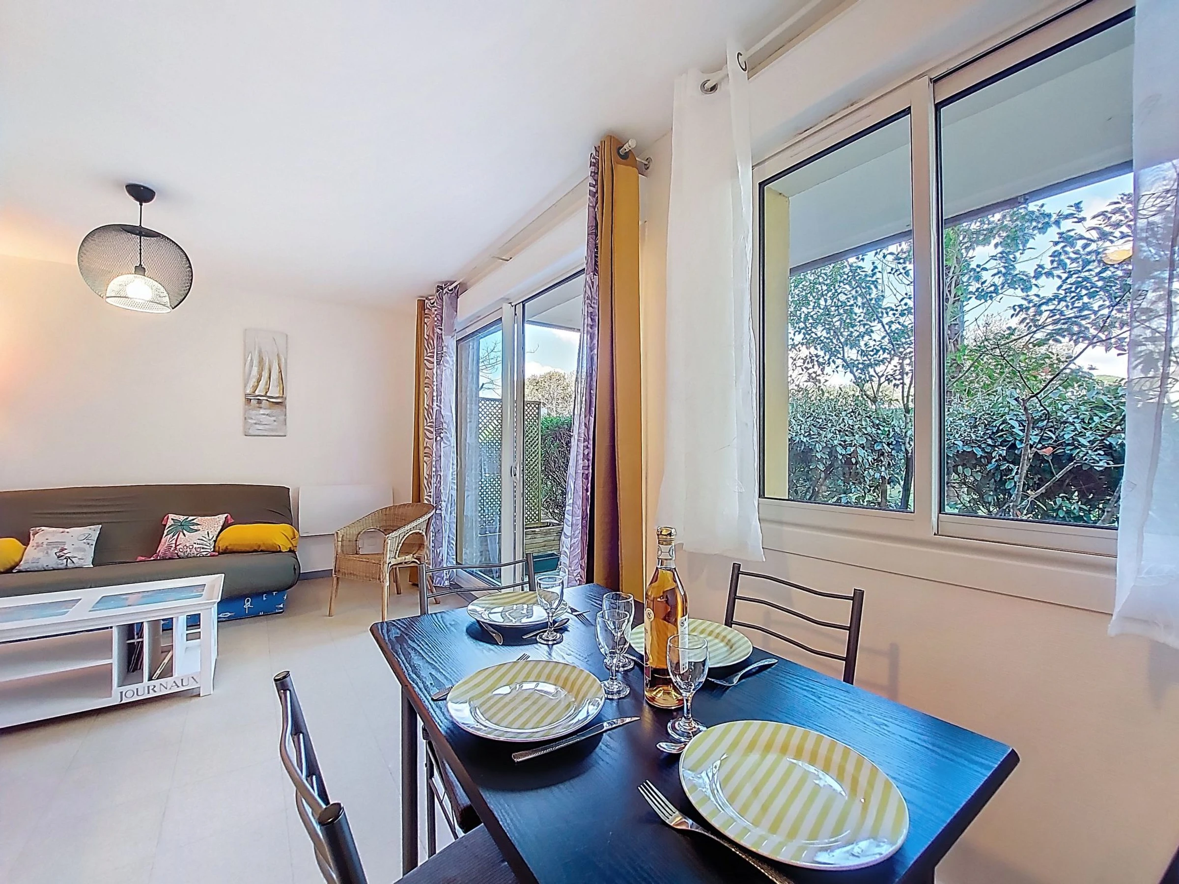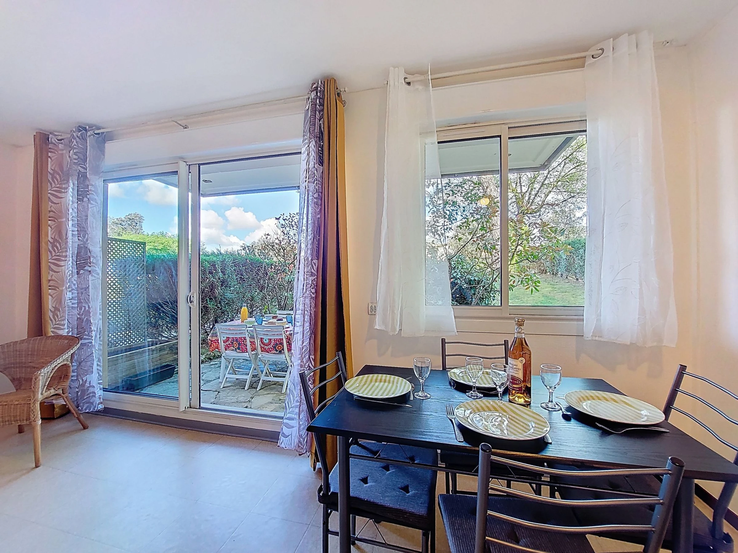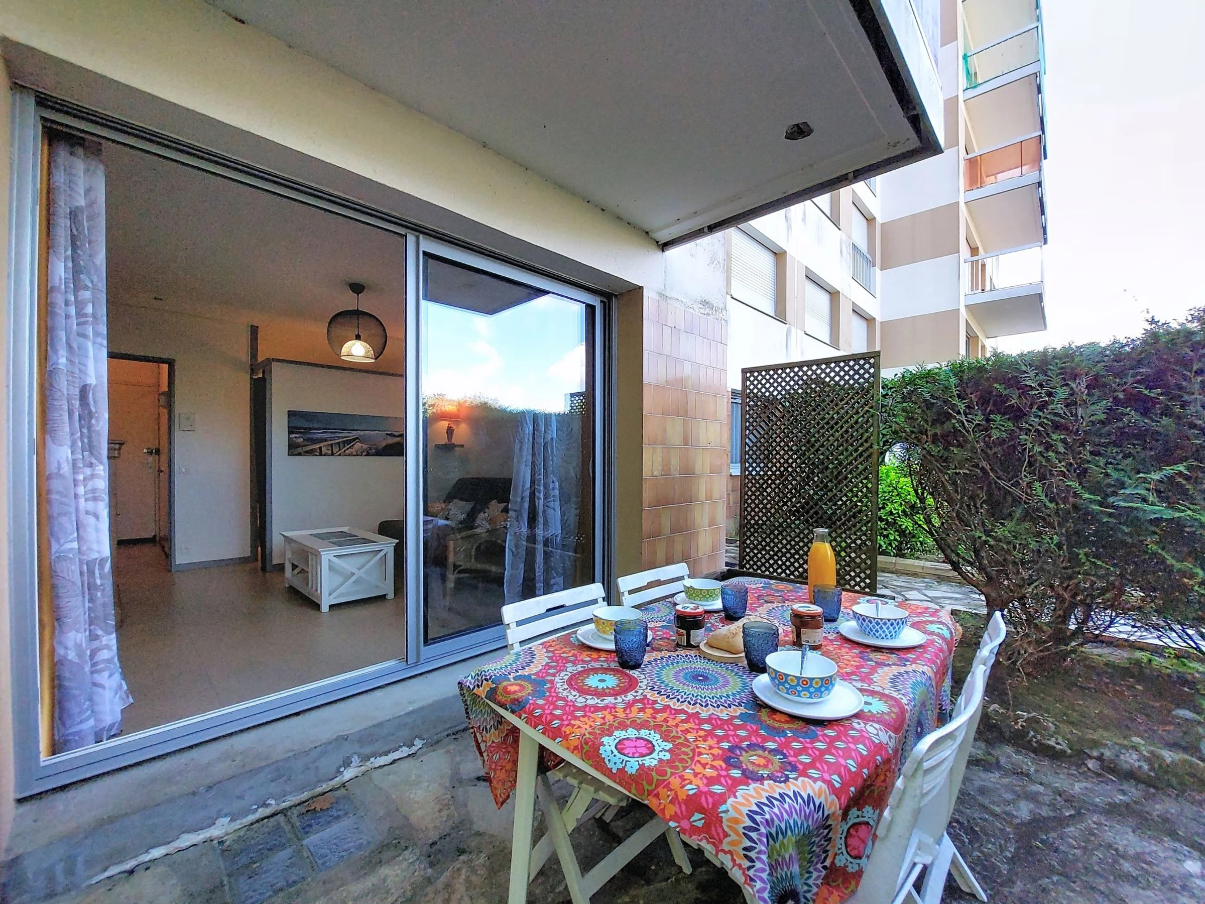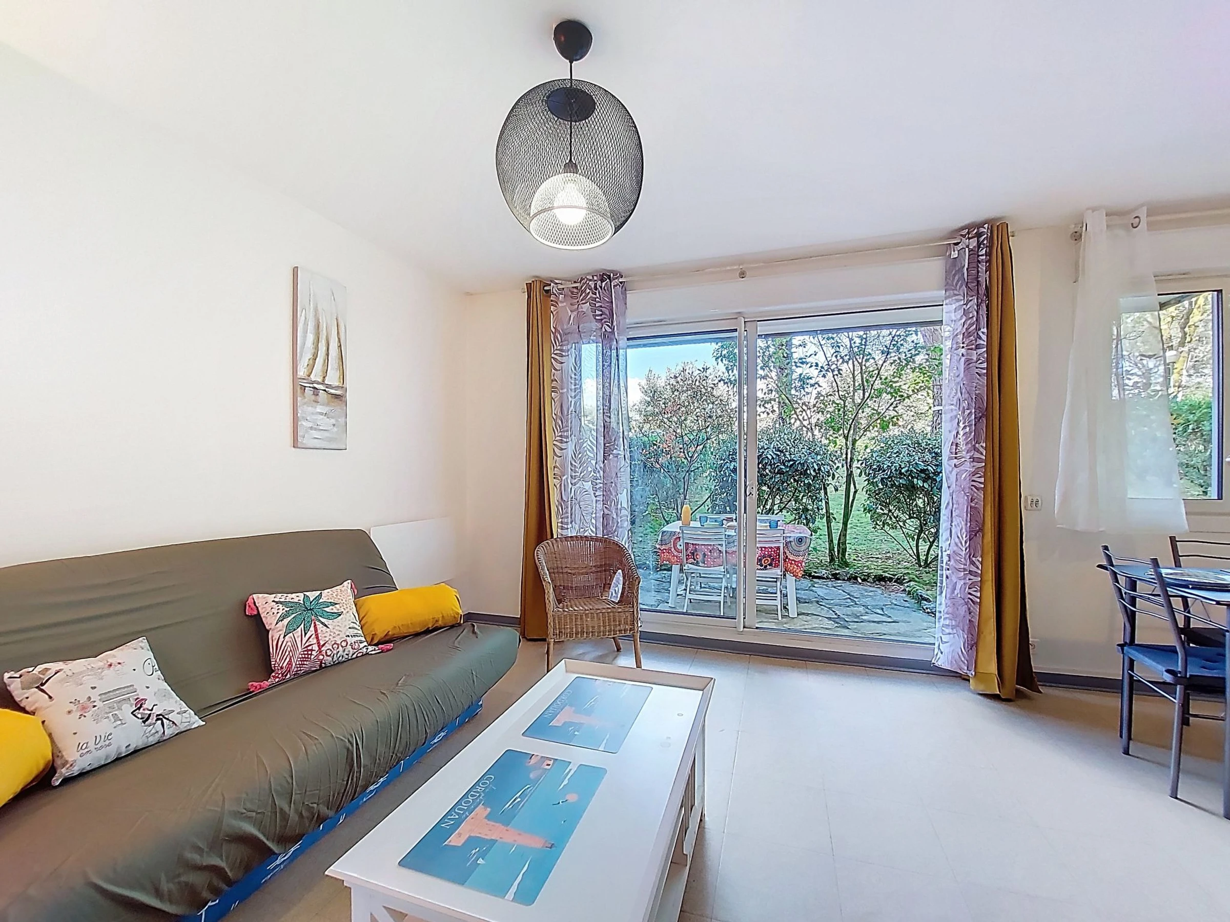 Studio 2 pièces 32 m2, au rez-de-chaussée. Logement idéal pour 2 adultes + 2 enfants. Séjour/salle à manger avec 1 divan-lit double (1 x 140 cm, longueur 190 cm), TV (écran plat). Sortie sur la terrasse. Alcôve avec rideau avec 1 lit (90 cm, longueur 190 cm), 1 grand-lit (1 x 140 cm, longueur 190 cm). Cuisine ouverte (four, 2 plaques vitrocéramiques, grille-pain, bouilloire électrique, micro-ondes, cafetière électrique). Douche/WC. Chauffage électrique. Terrasse 9 m2. Meubles de terrasse. A disposition: lave-linge, fer à repasser. Internet (Connexion WIFI, gratuit). Place de parking No 39. Veuillez noter: détecteur de fumée. La répartition des lits est flexible: Il y a plus de couchages que le nombre maximum de personnes admis dans la location. Ce nombre maximum doit néanmoins être respecté. Annonce d'un particulier (art 155, IV du CGI).