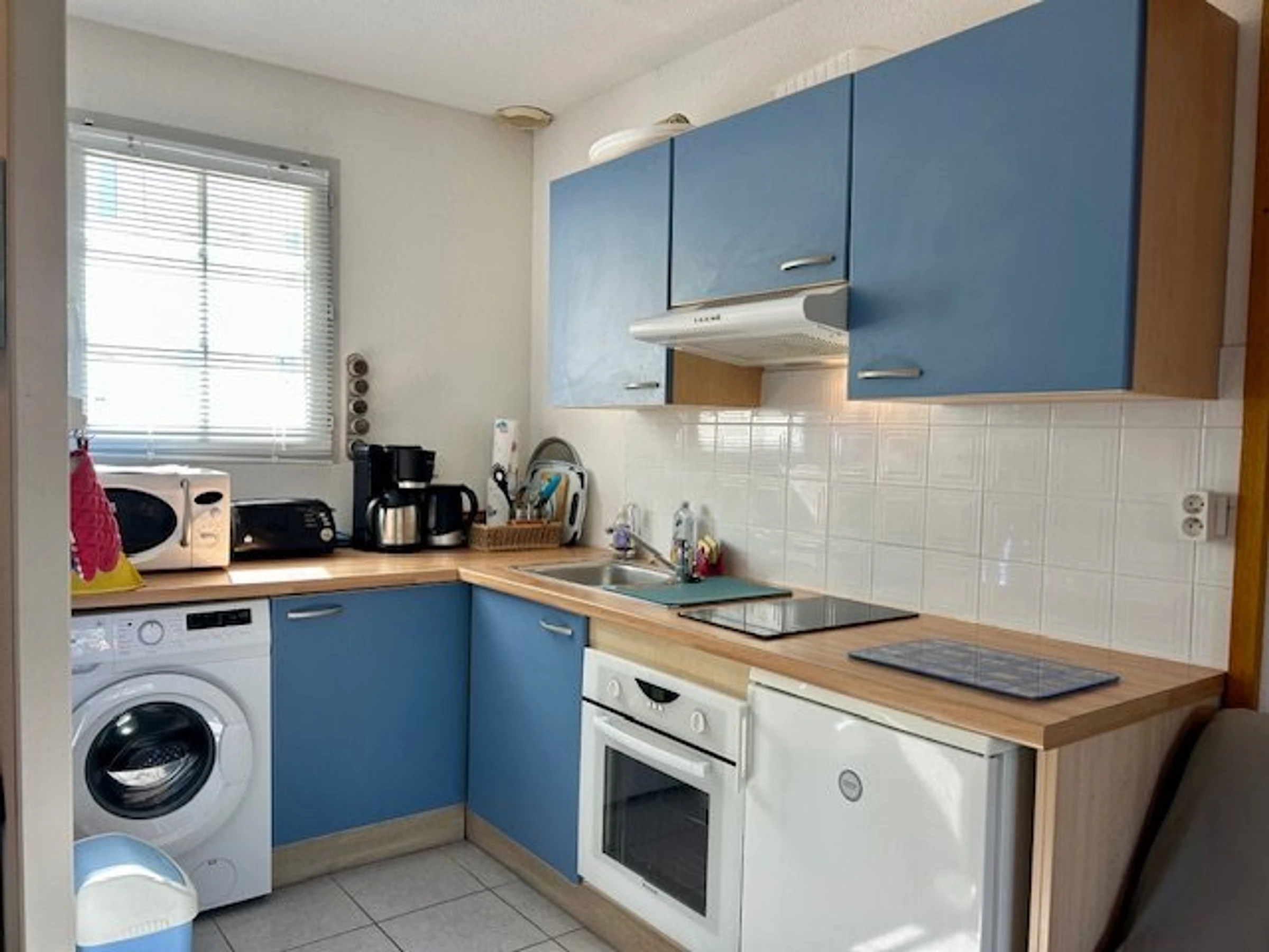 Composée d'une cuisine équipée avec réfrigérateur, une plaque vitrocéramique, un micro-ondes, un lave-linge ;