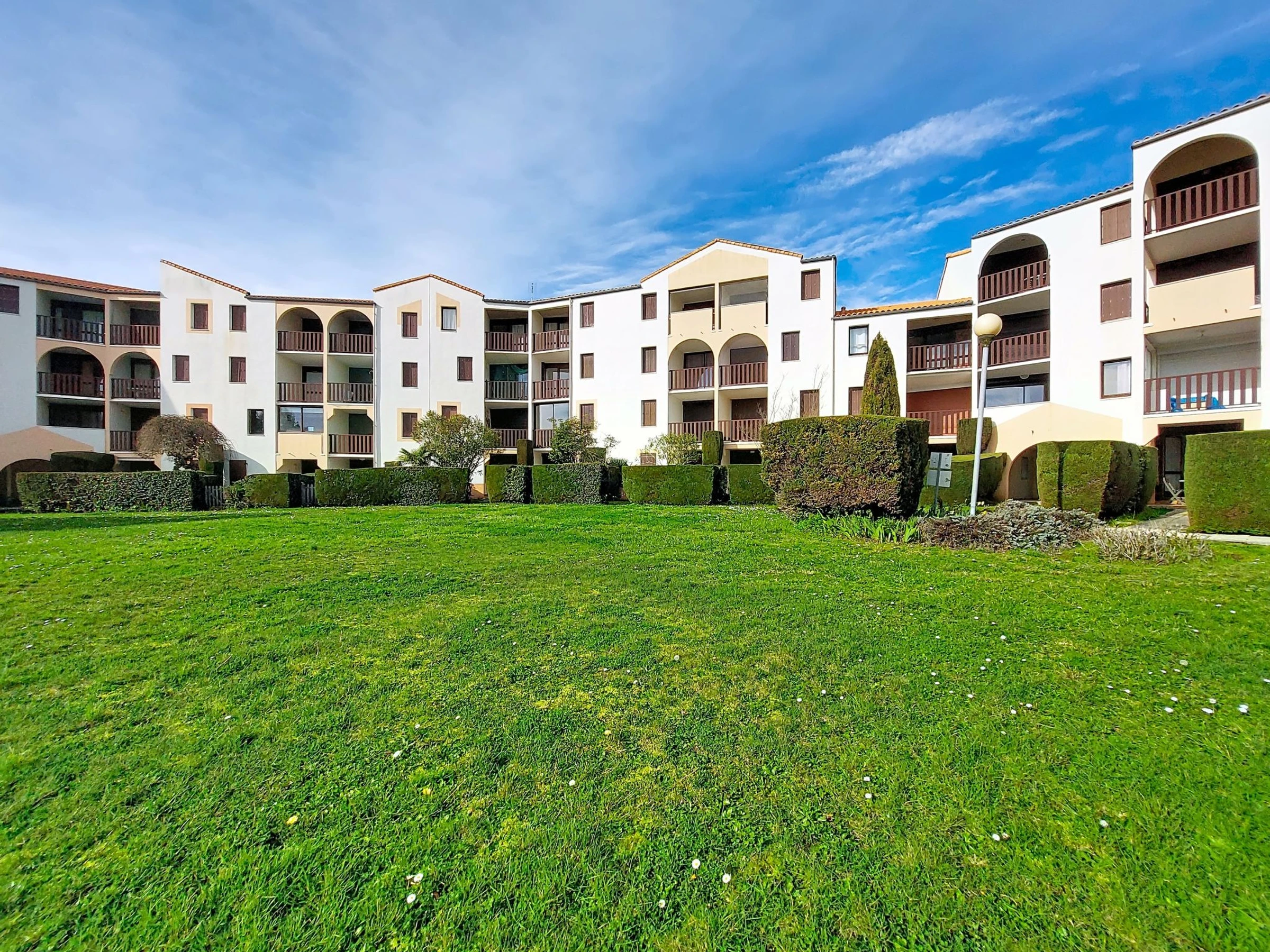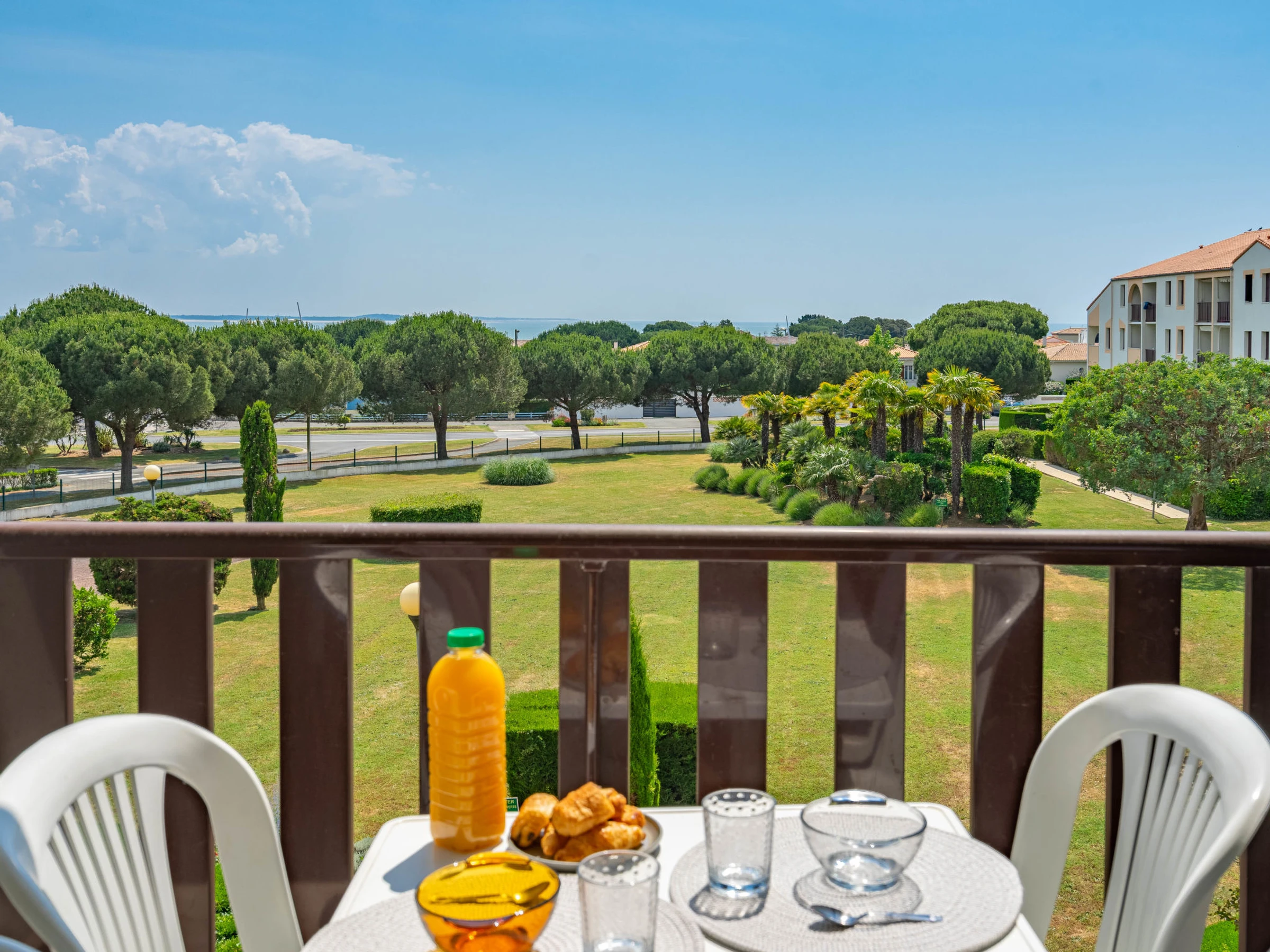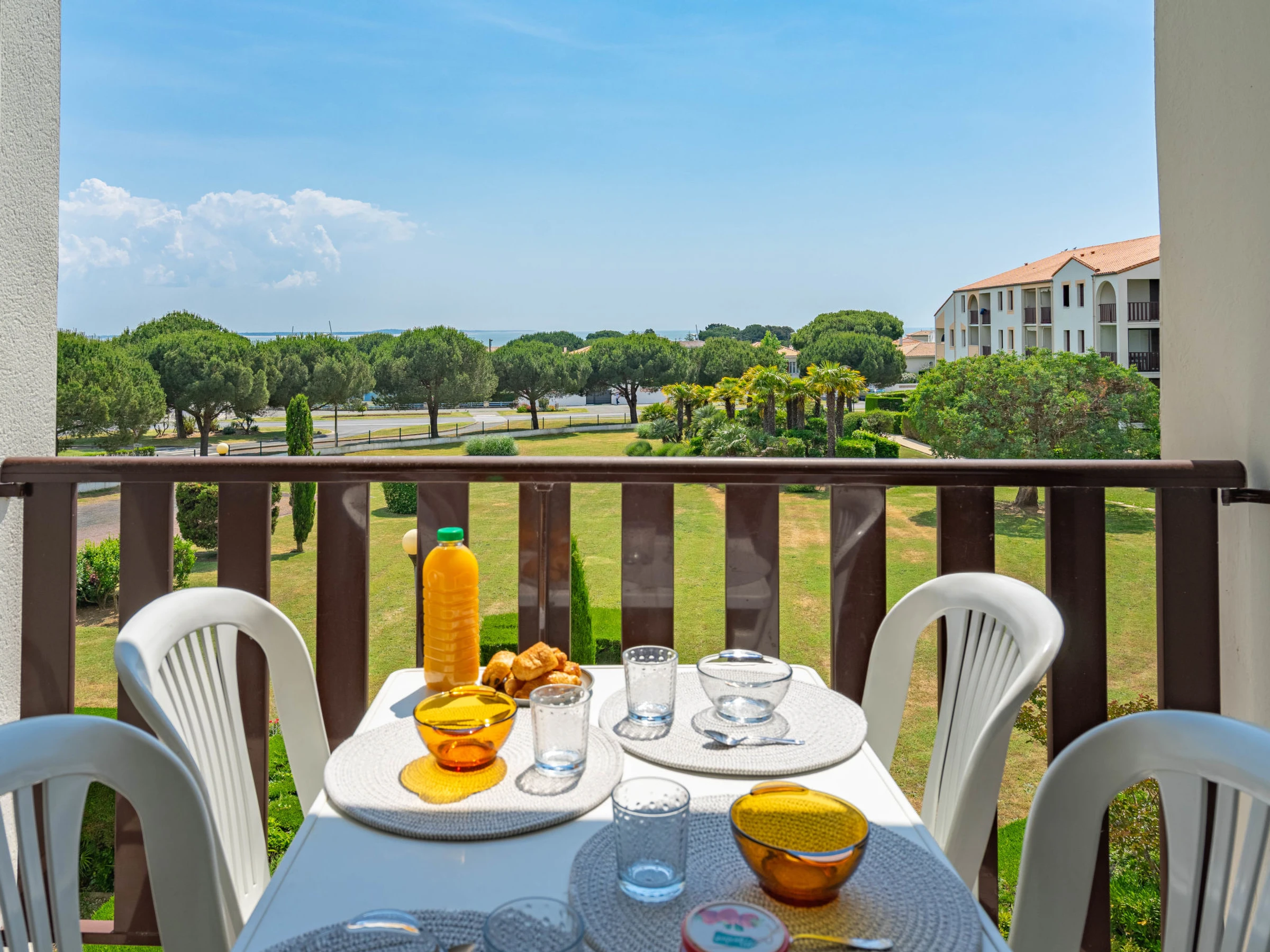 Vaux sur Mer à 2 km de Royan: Résidence "Les Balcons de l'Atlantique", de 3 étages. 114 appartements dans la résidence. Dans le quartier de Pontaillac, à 1.8 km du centre de Vaux sur Mer, à 500 m de la mer, à 500 m de la plage. En commun: jardin entretenu (pas clôturé) arbres, place de parking (nombre de places limité). Magasins 500 m, supermarché 1.2 km, restaurant, boulangerie, café 500 m, arrêt de bus "Porte Océane" 250 m, gare ferroviaire "Royan" 4 km, plage de sable "Pontaillac" 500 m, parc "Luna Park (Juillet-Août)" 18 km, piscine couverte 4 km, centre thermal "Thalassothérapie Thalazur Royan" 2 km. Port plaisance 3 km, terrain de golf (18 trous) 6 km, ecole de surf 500 m, ecole de voile 2 km, tennis 2.3 km, tennis couvert 2.3 km, golf miniature 1 km, centre équestre 7 km, piste cyclable 200 m. Attractions à proximité: Zoo de La Palmyre 13 km, Hippodrome - La Palmyre 14 km, Centre aquatique Iléo - Ile d'Oléron 47 km, Fort Boyard - Fouras 57 km, Aéroport La Rochelle - Ile de Ré 79 km, Aéroport Bordeaux - Merignac 132 km. Veuillez noter: D’autres appartements sont également proposés à la location dans cette maison de vacances.