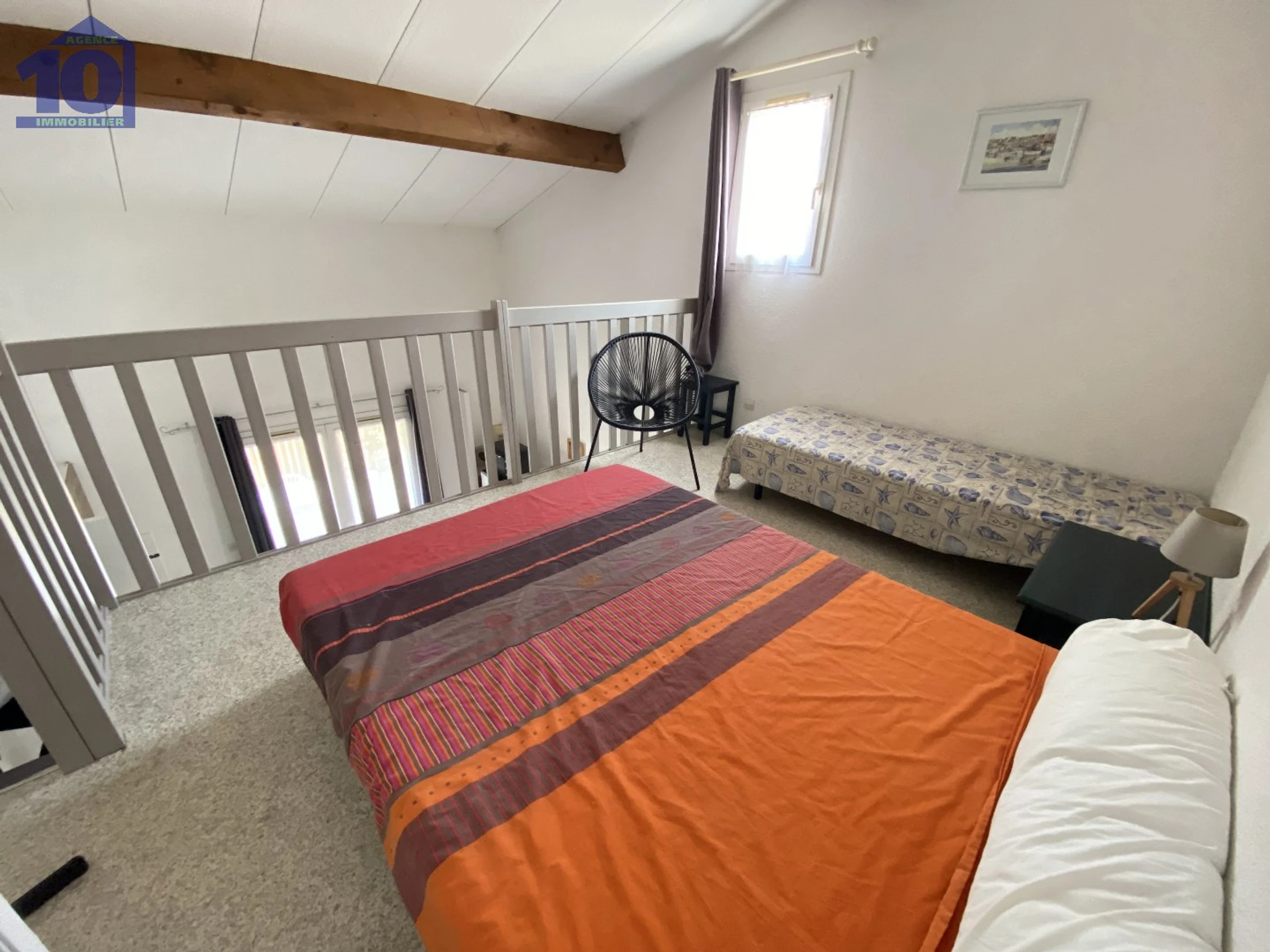 Mezzanine ouverte avec deux lits simples 90 cm