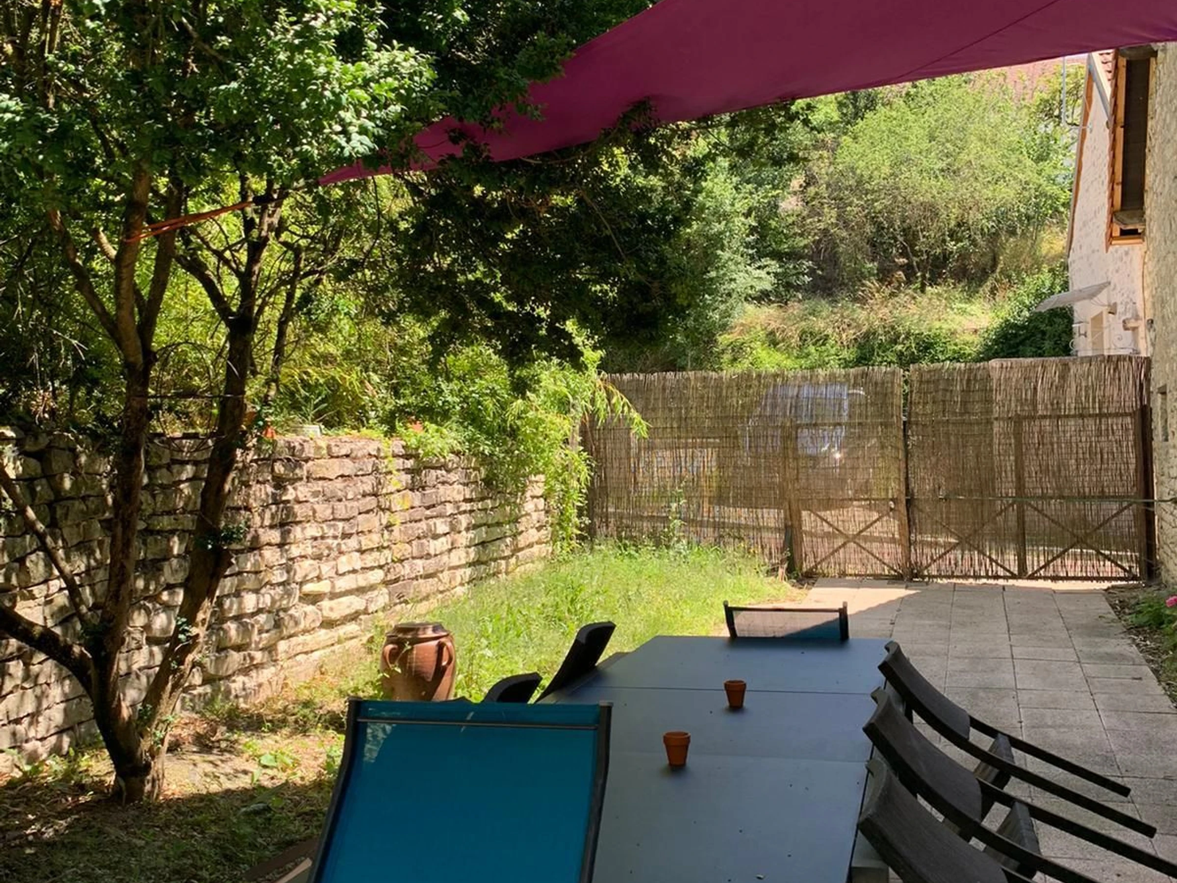 Abri fermé , jardin clos privatif avec terrasse (barbecue) équipé pour les enfants (balançoire, toboggan).