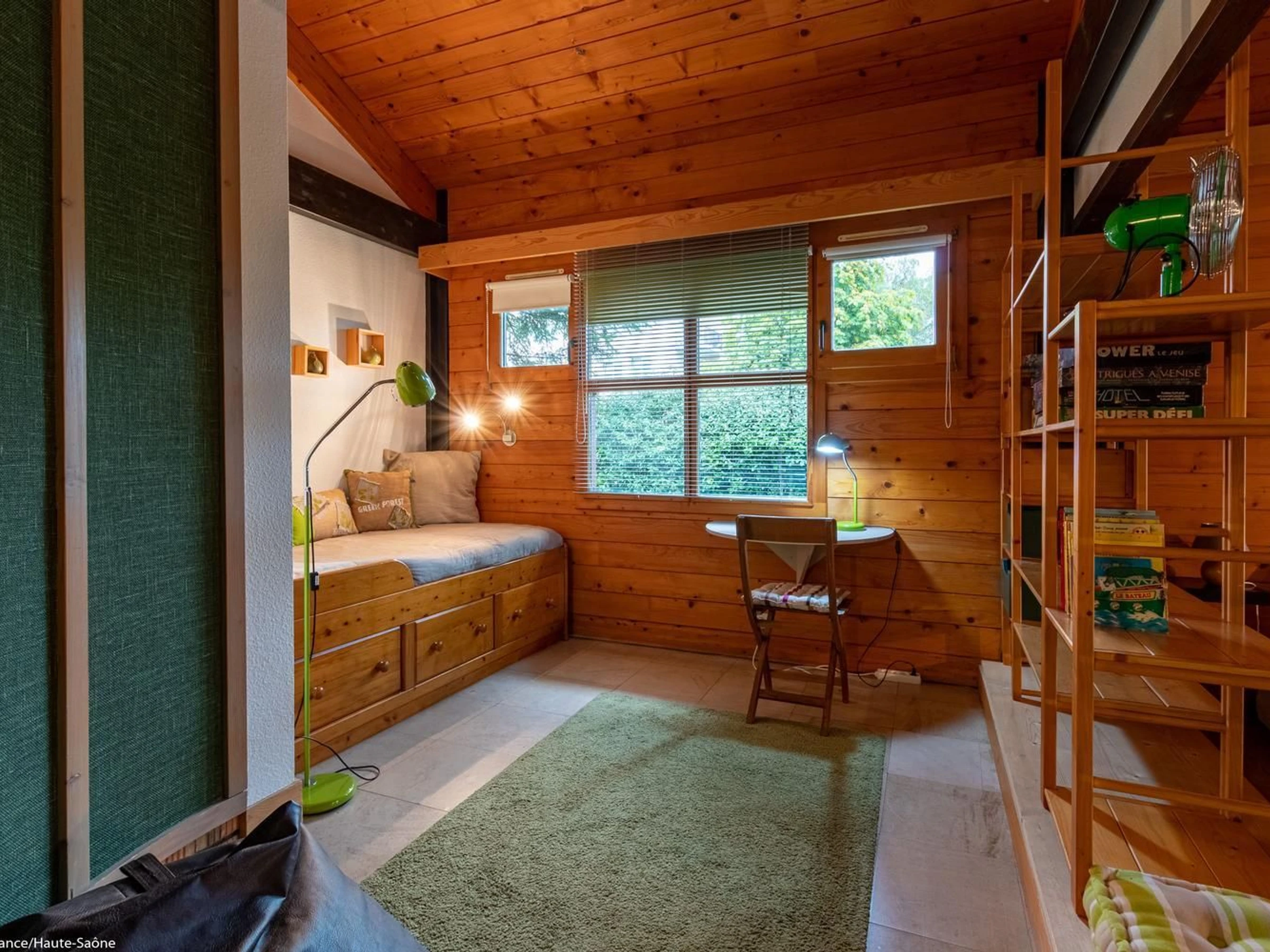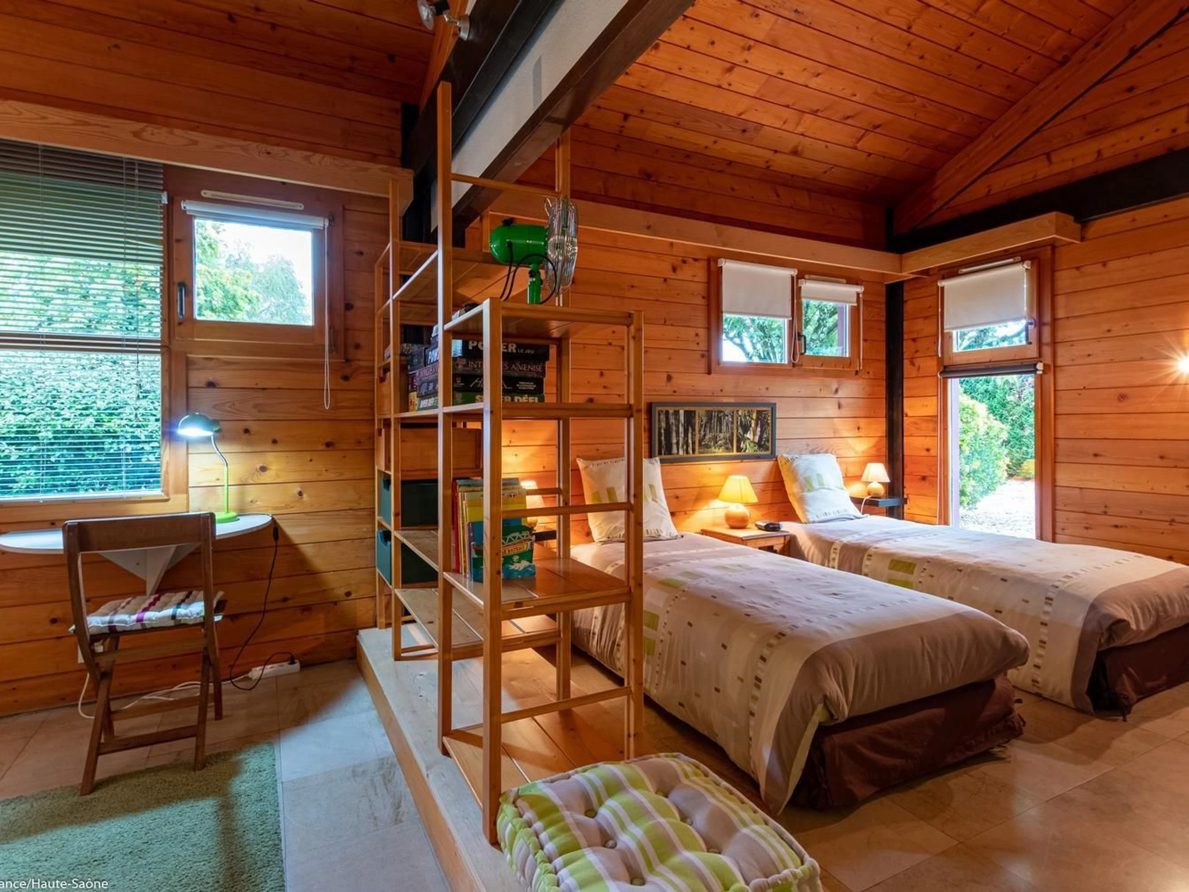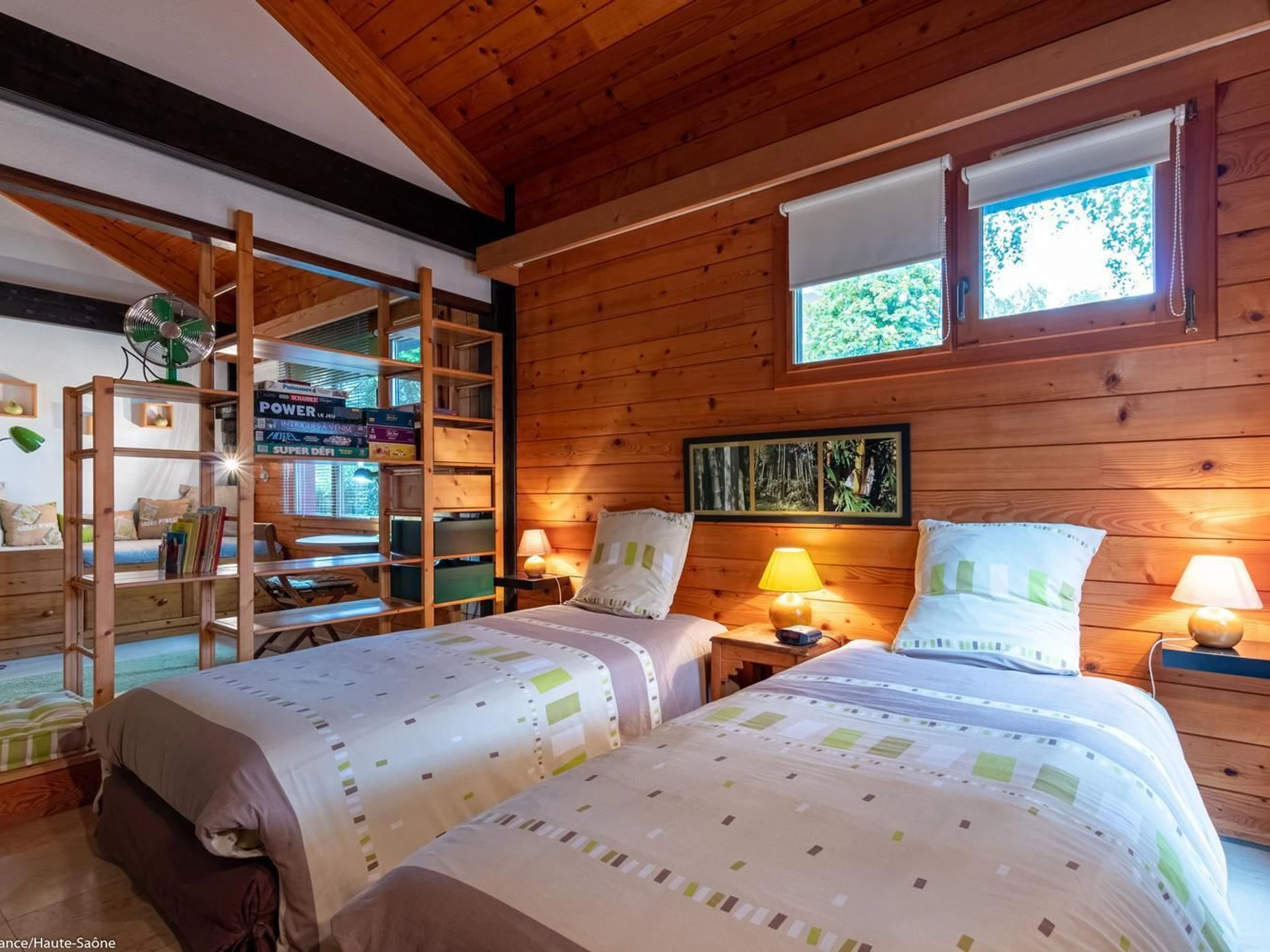 A découvrir: le centre historique de Vesoul, les rues commerçantes, le marché couvert, le lac et le parc aquatique ludolac, le jardin anglais, le musée Garret. Nombreuses animations et visites guidées en été par l'office de tourisme. Les festivals: Cinémas d'Asie, festival Jacques [hidden] encore le théâtre, cinéma, bowling, vélo-rail, karting... Découvrez un petit coin de sérénité, à deux pas du centre ville, jolie maison ossature bois, à la décoration harmonieuse et zen, indépendante, sans vis à vis, comprenant en rez-de-chaussée : grande pièce à vivre : cuisine équipée, espace repas, salon avec TV écran plat, chaîne Hi-fi, bibliothèque, piano, Wifi. Une superbe luminosité grâce aux grandes baies vitrées, avec vue sur le jardin arboré à l'arrière de la maison, petite rivière en contre-bas. Accès sur la terrasse de plein pied. 1 chambre (1 lit 160/200) avec salle d'eau privative (douche jets massant). 1 chambre (2 lits 90/200 - 1 lit d'appoint 90/190). Salle de bain/d'eau (baignoire et douche italienne). WC (indépendant). Espace extérieur clos, avec portail électrique. Parking privatif. Garage (pour vélo, moto). Chauffage gaz au sol compris. Gîte non-fumeur. 3 Vélos à disposition.