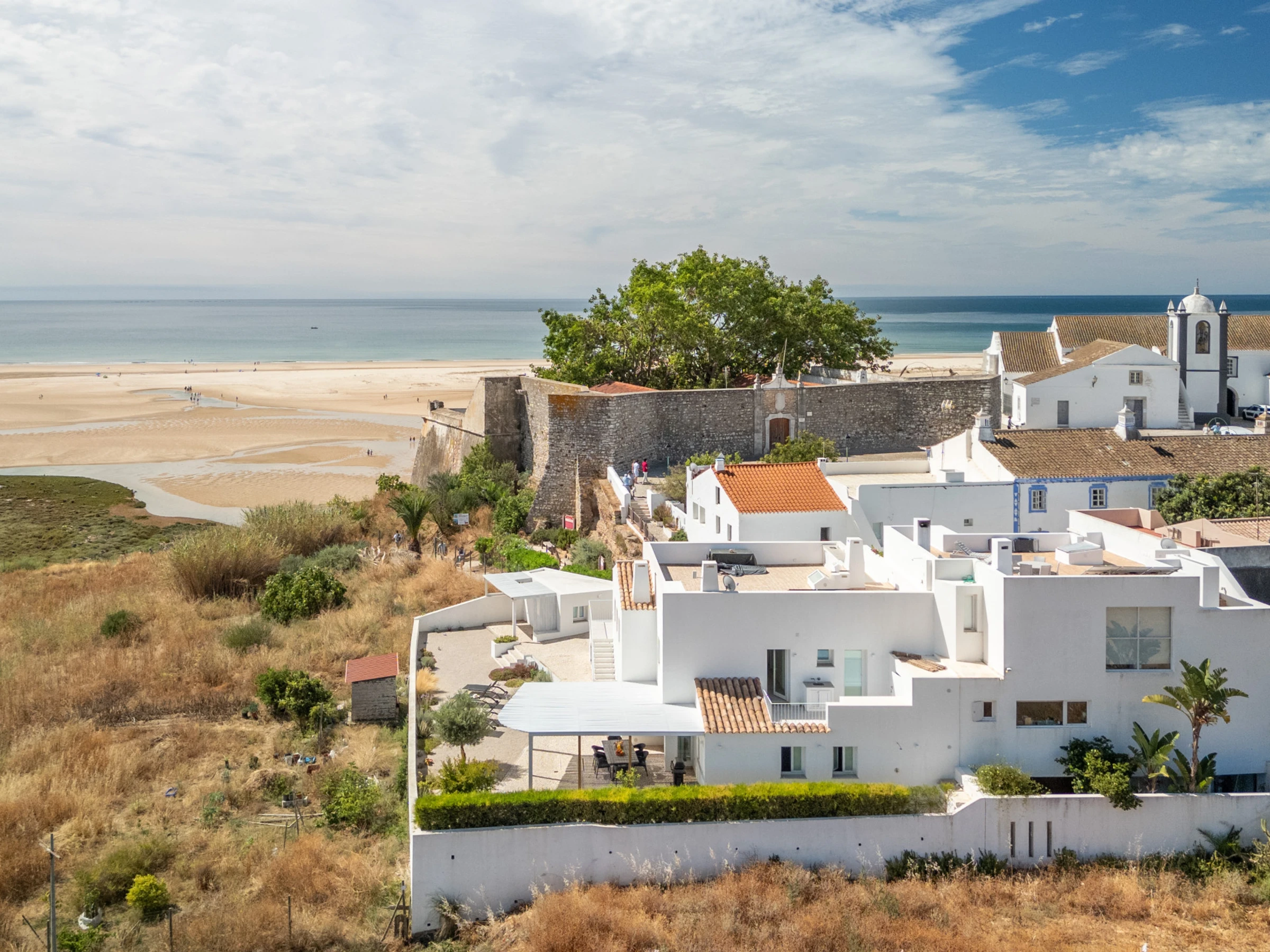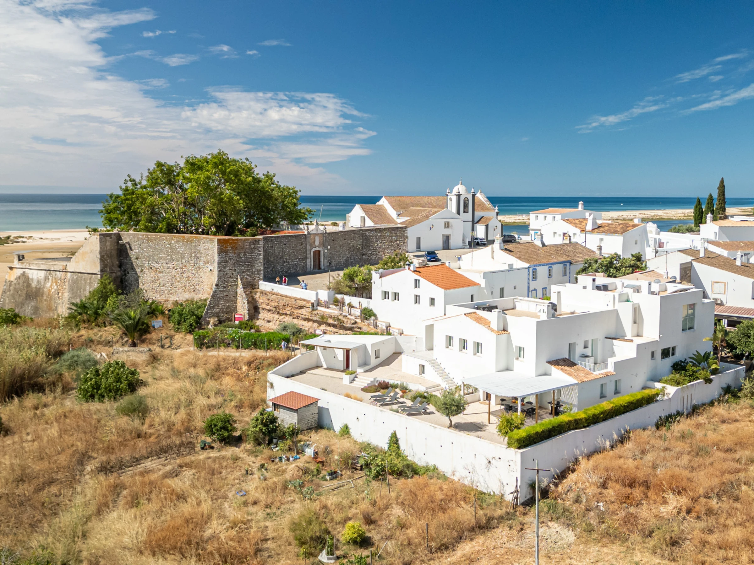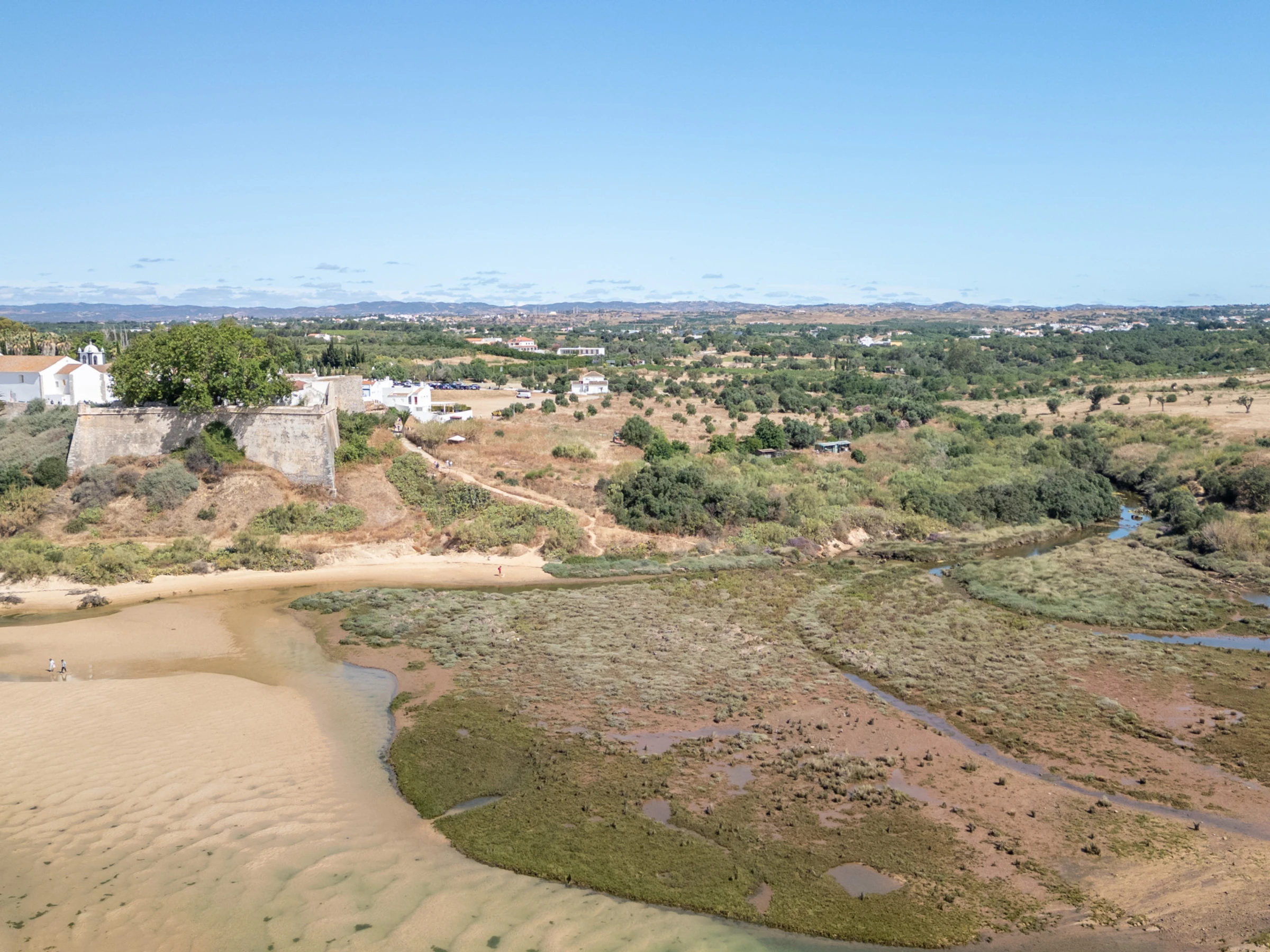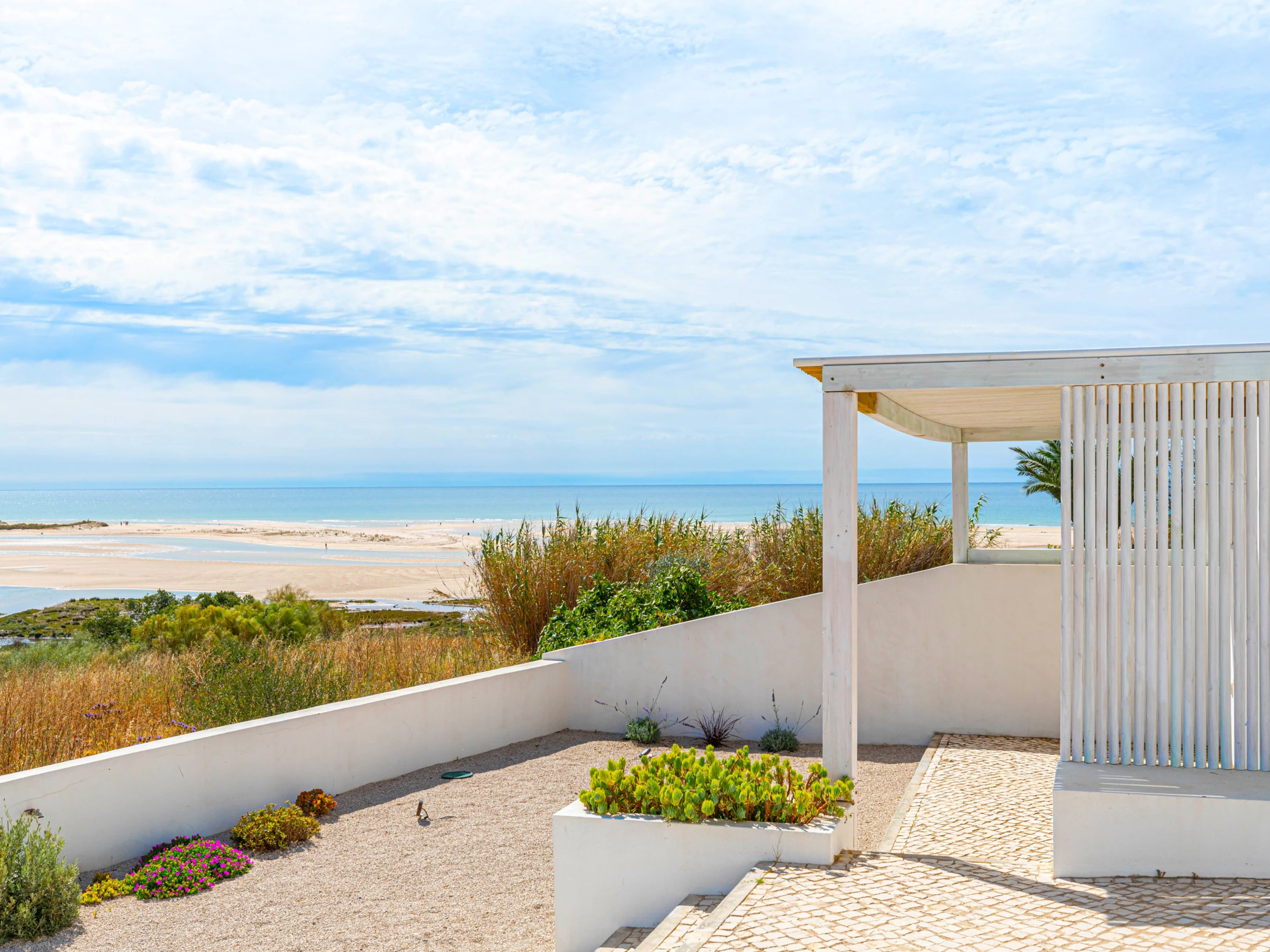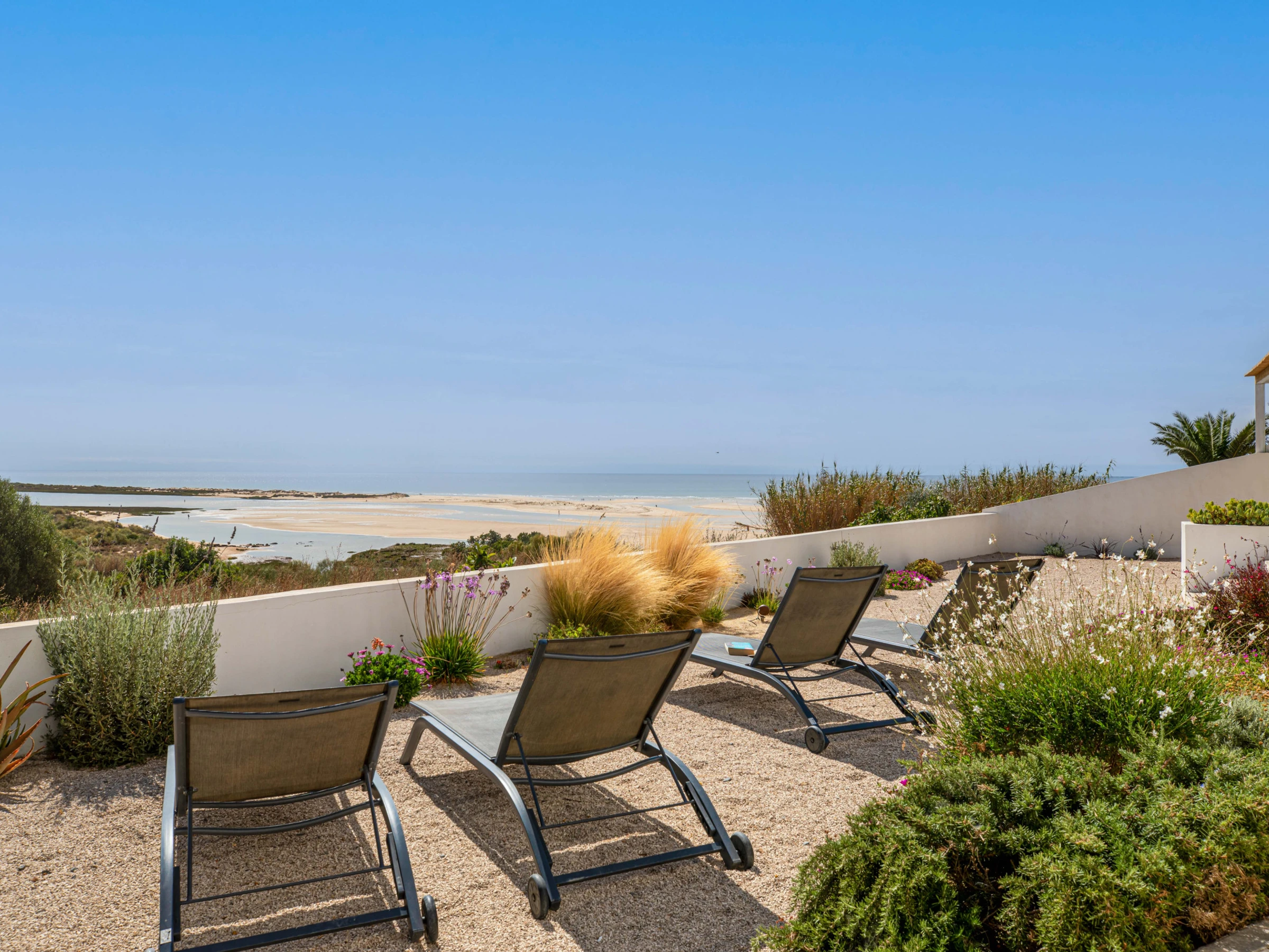 Le jardin extérieur spacieux offre l'un des plus beaux points de vue que l'Algarve puisse offrir. La magnifique ligne de côte s'étend devant vous, présentant des vues impressionnantes sur le parc naturel de Ria Formosa et la Forteresse. La plage n'est qu'à 160m – avec des escaliers menant directement au rivage. Pour ceux qui préfèrent éviter les escaliers, il existe un itinéraire de marche alternatif. À marée haute, de petits bateaux proposent une traversée en rivière jusqu'aux sables de la plage, et à marée basse, il est possible de marcher.
