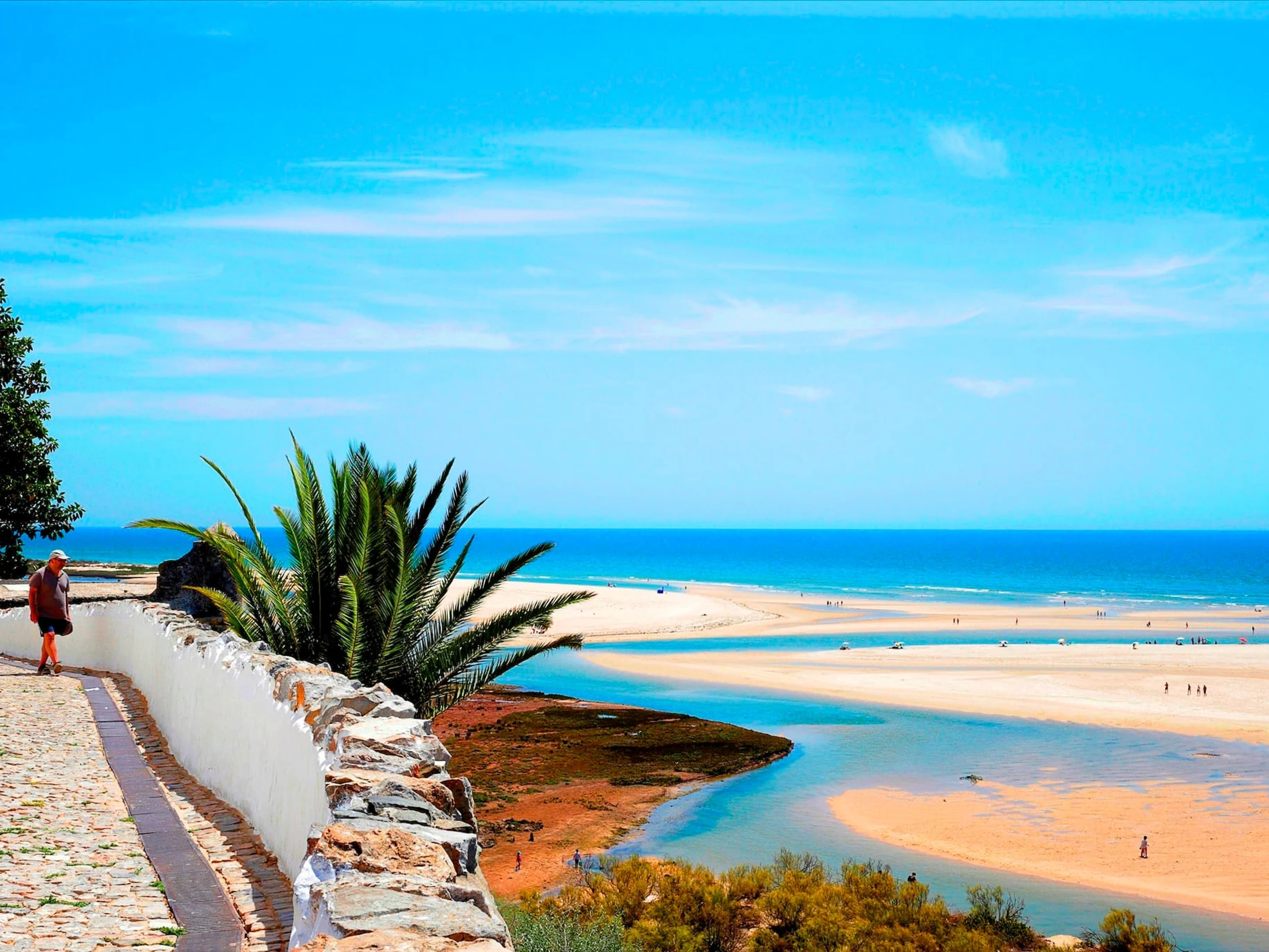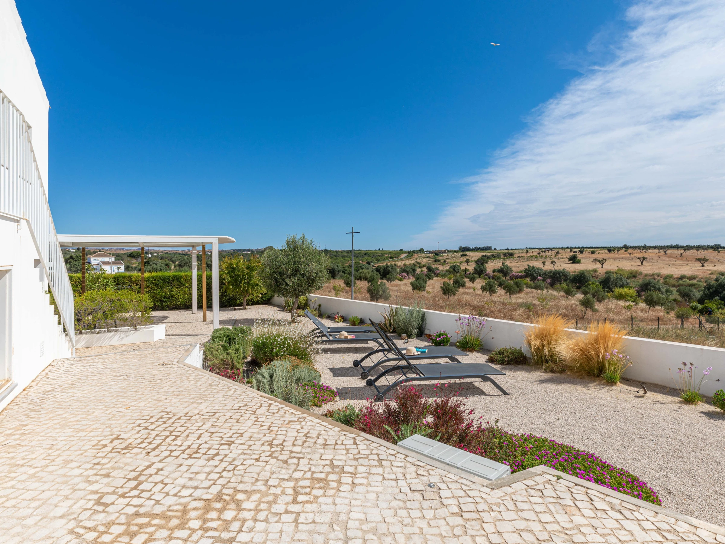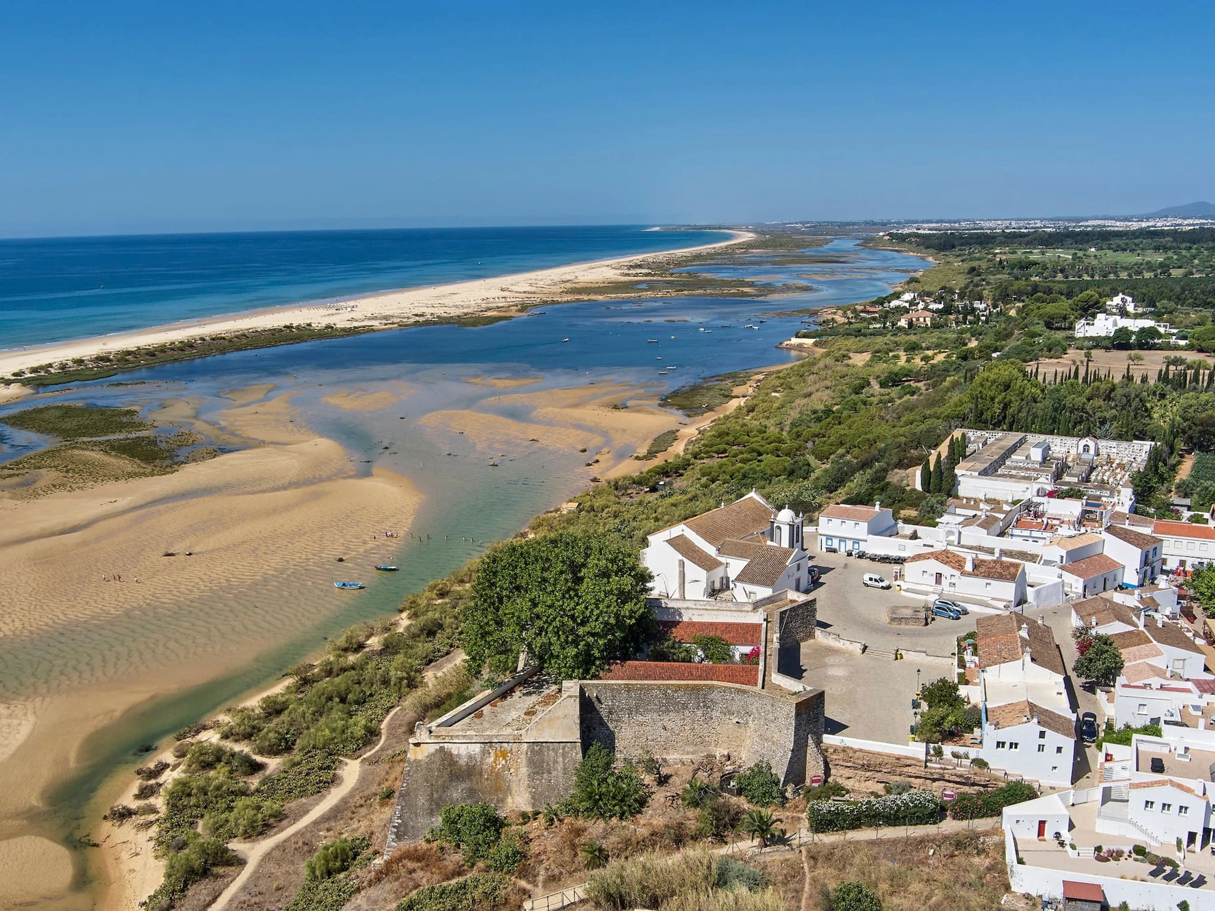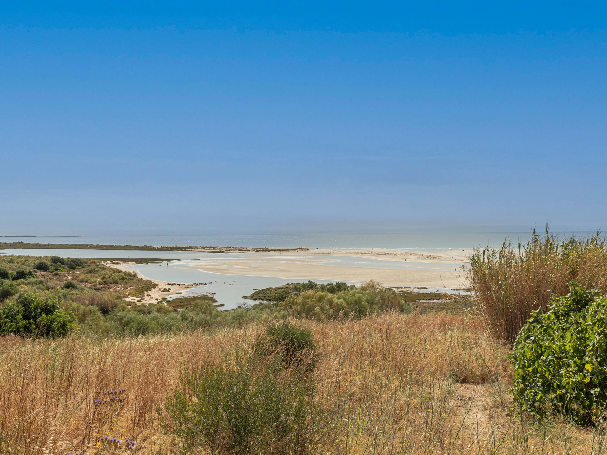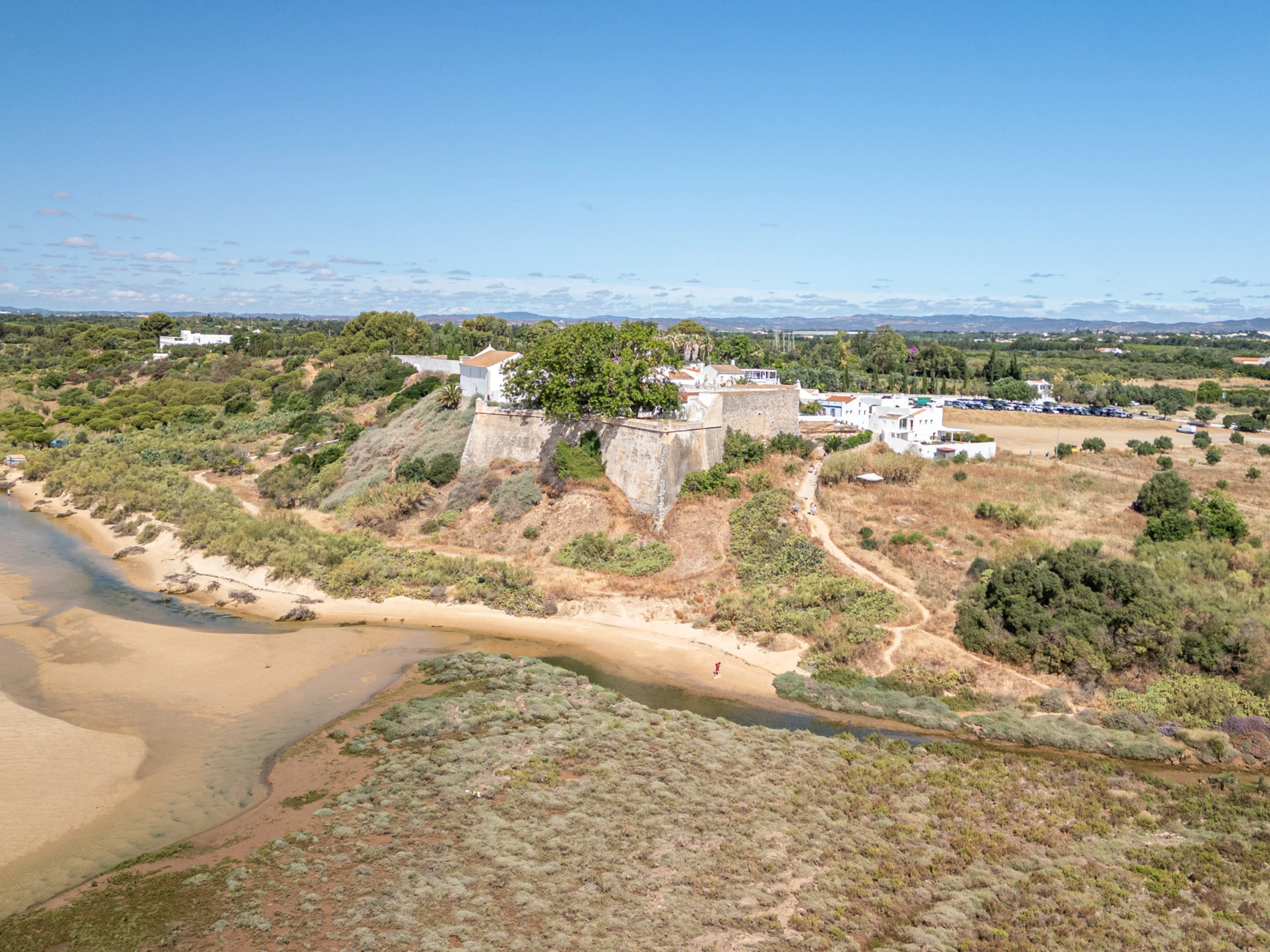 Le jardin extérieur spacieux offre l'un des plus beaux points de vue que l'Algarve puisse offrir. La magnifique ligne de côte s'étend devant vous, présentant des vues impressionnantes sur le parc naturel de Ria Formosa et la Forteresse. La plage n'est qu'à 160m – avec des escaliers menant directement au rivage. Pour ceux qui préfèrent éviter les escaliers, il existe un itinéraire de marche alternatif. À marée haute, de petits bateaux proposent une traversée en rivière jusqu'aux sables de la plage, et à marée basse, il est possible de marcher.
