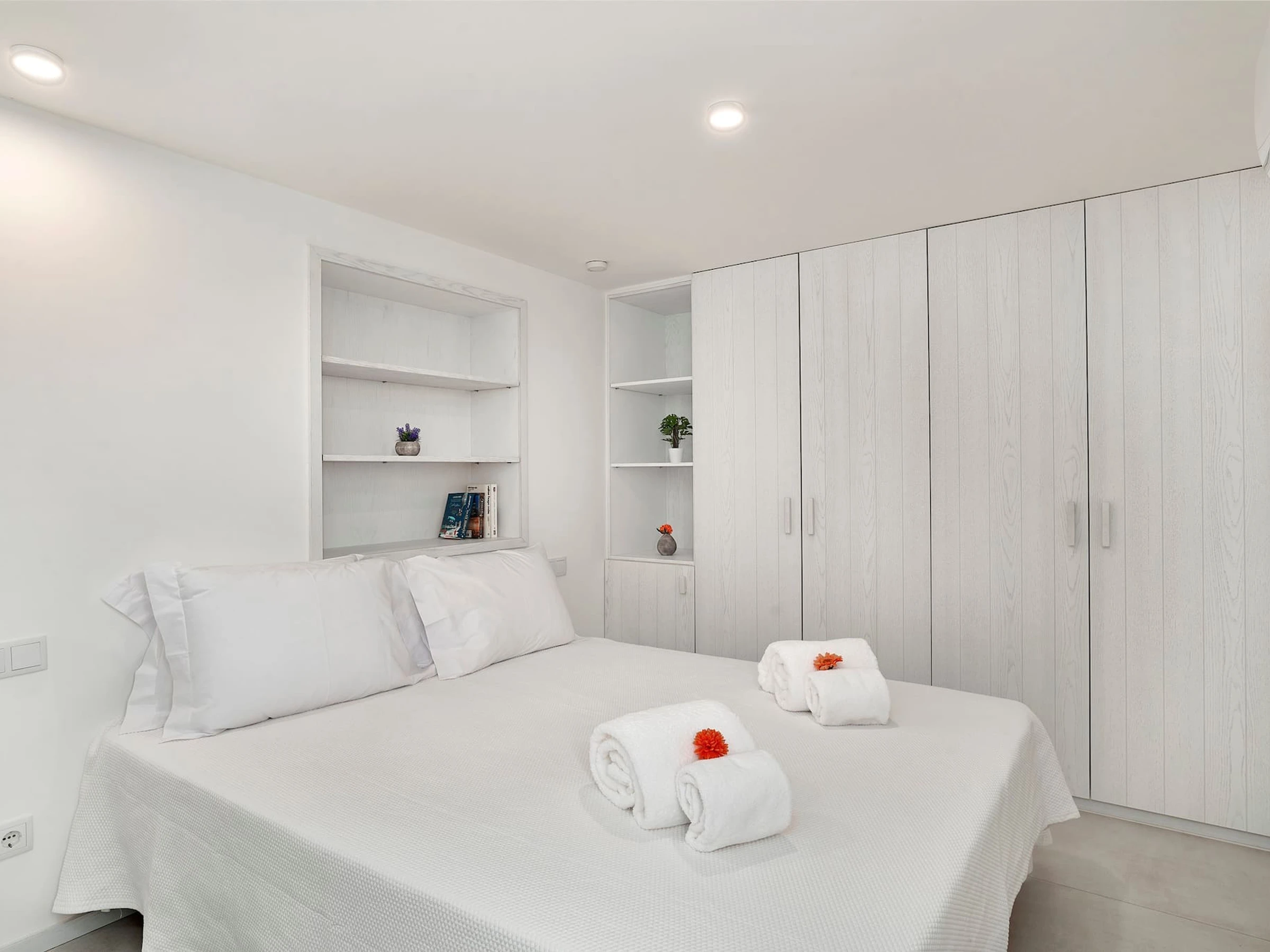 CHAMBRE 1 (Hébergement principal) - Trouvez le réconfort dans le lit king-size, des solutions de rangement soigneusement conçues, et une abondance de lumière naturelle qui baigne la pièce d'une lueur chaleureuse et accueillante.