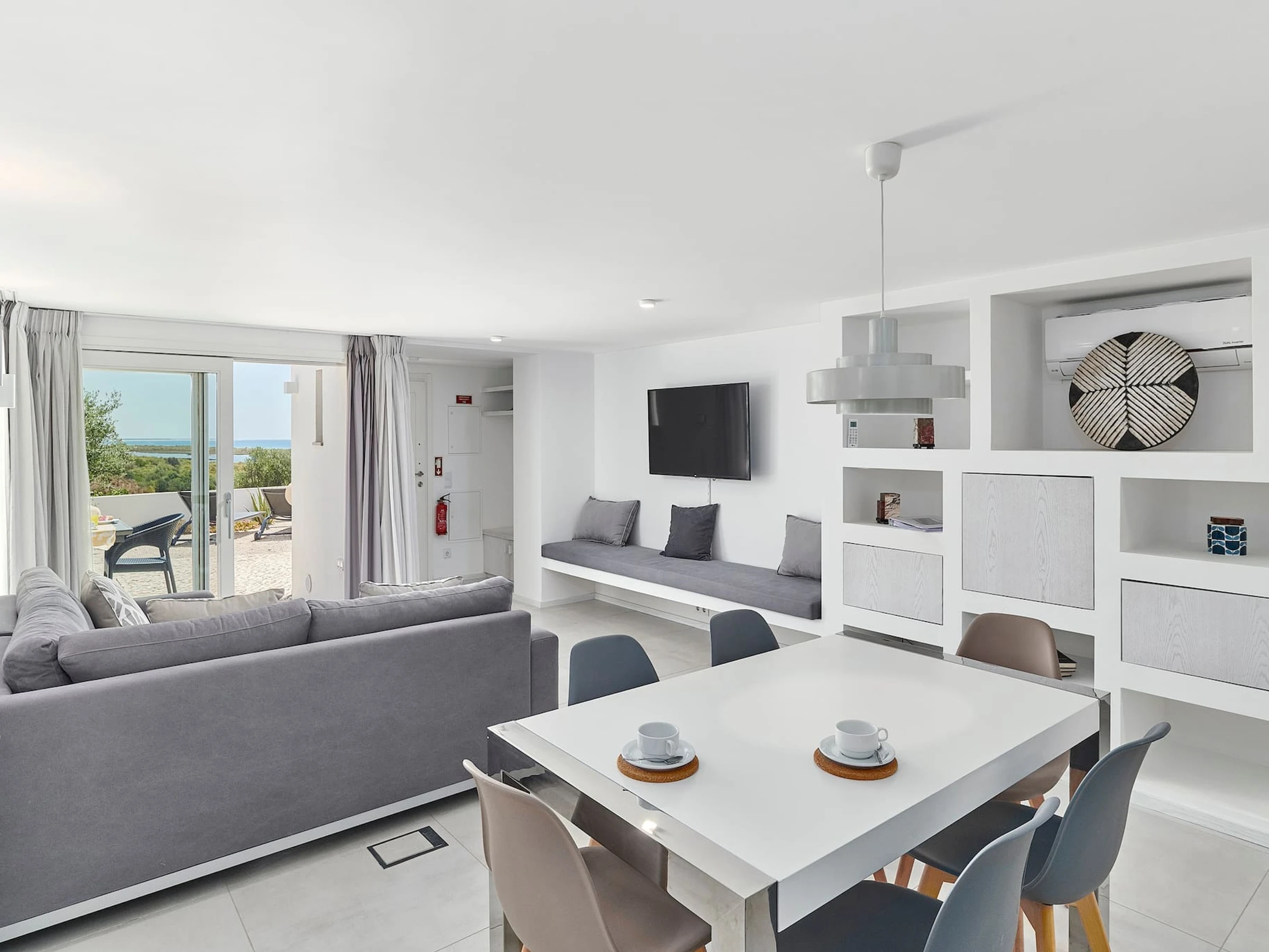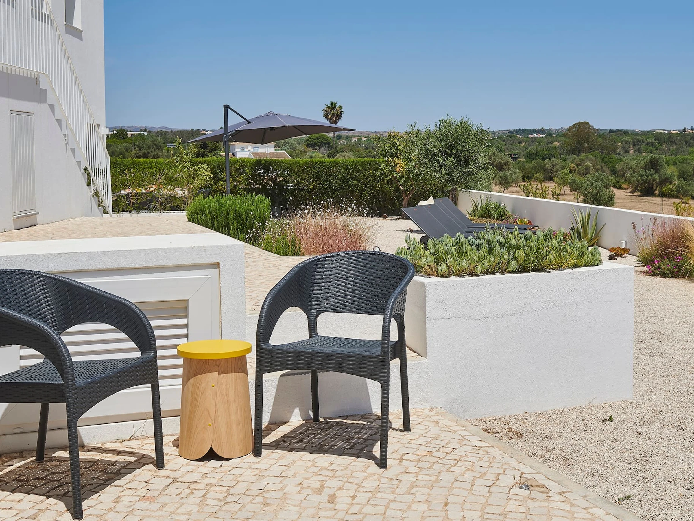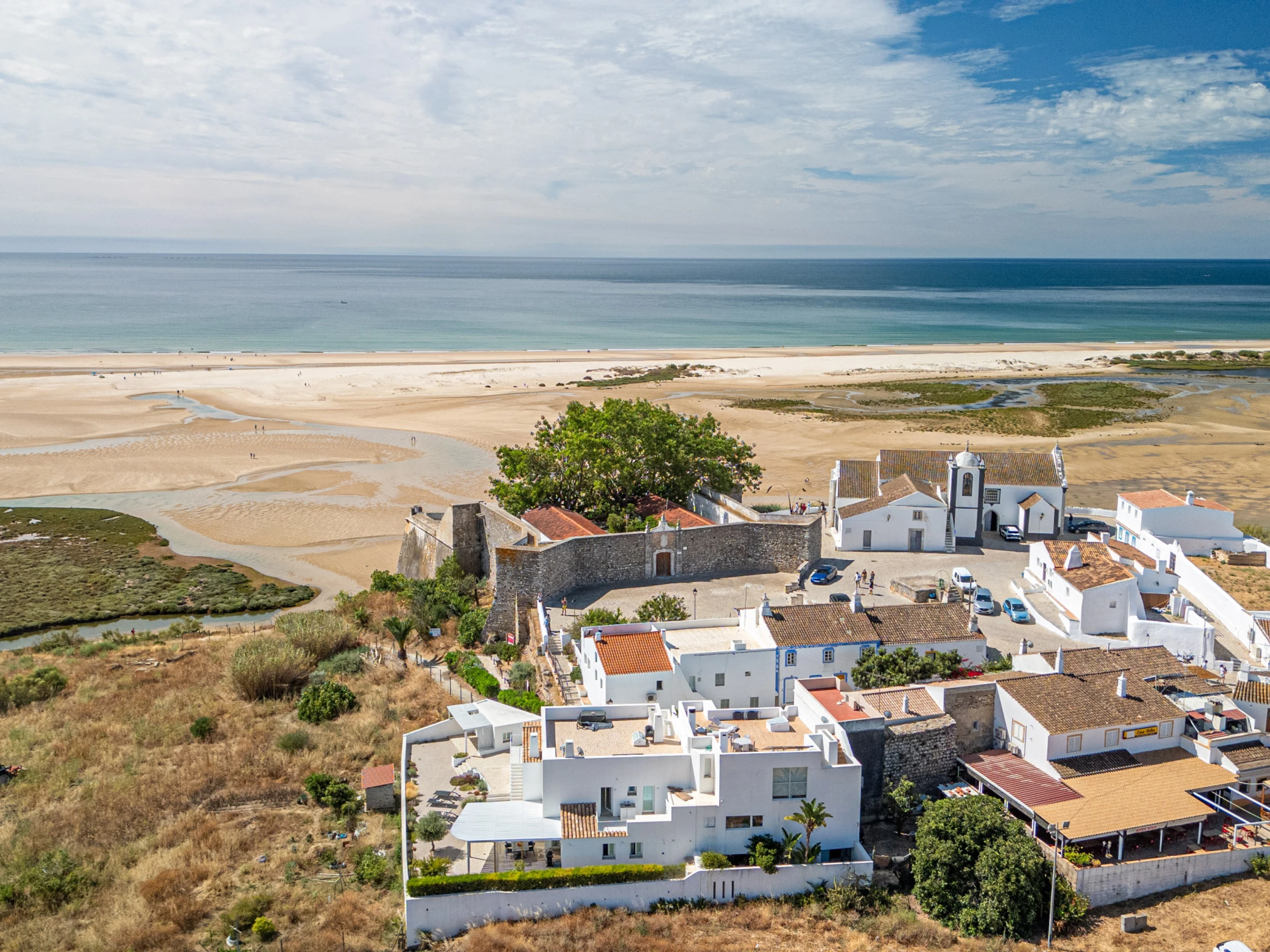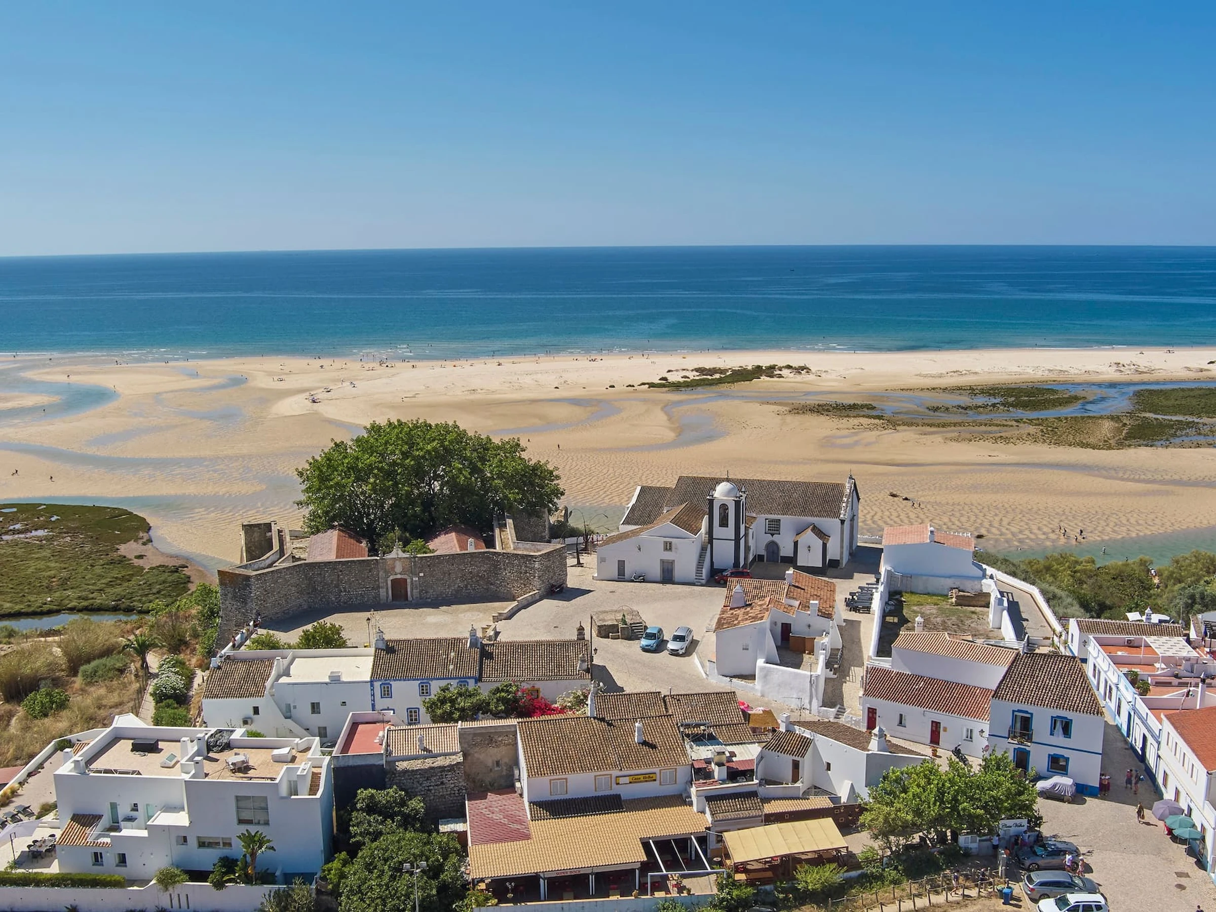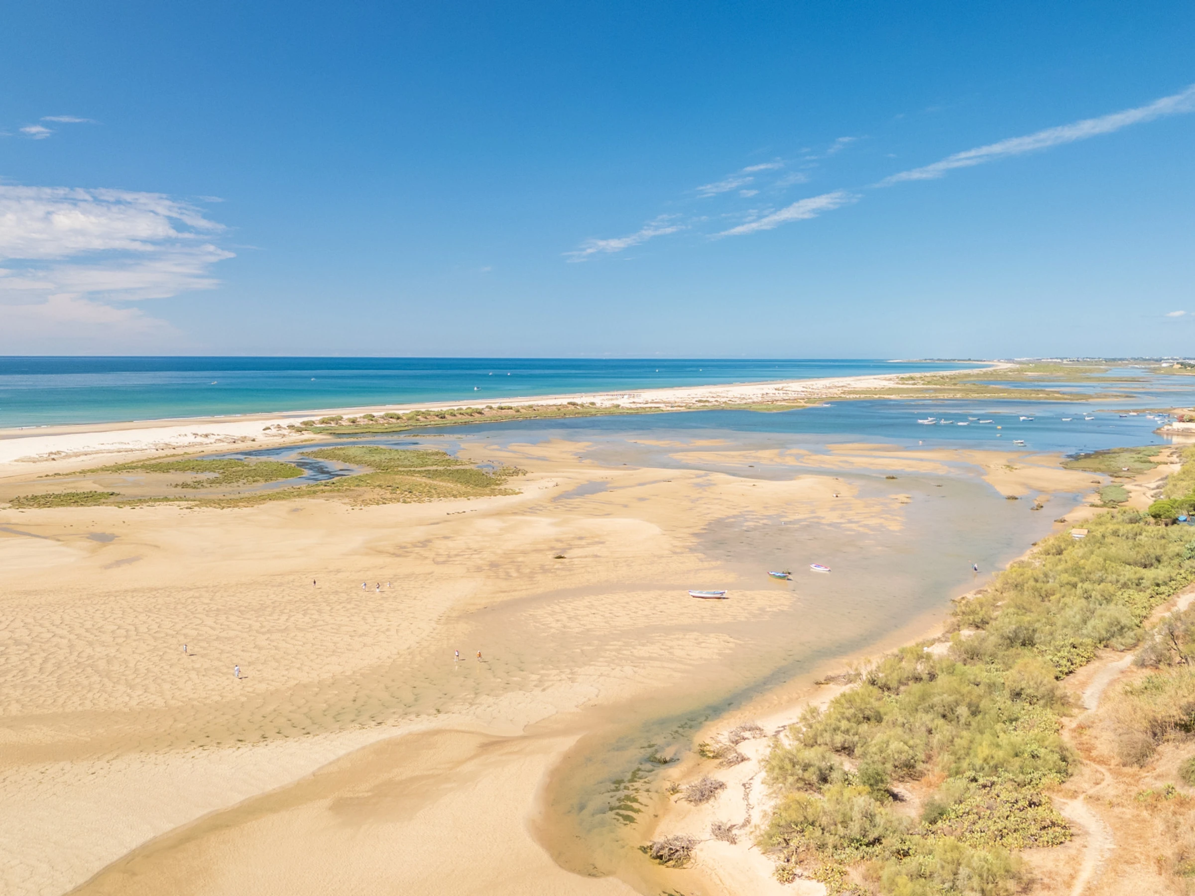 Le jardin extérieur spacieux offre l'un des plus beaux points de vue que l'Algarve puisse offrir. La magnifique ligne de côte s'étend devant vous, présentant des vues impressionnantes sur le parc naturel de Ria Formosa et la Forteresse. La plage n'est qu'à 160m – avec des escaliers menant directement au rivage. Pour ceux qui préfèrent éviter les escaliers, il existe un itinéraire de marche alternatif. À marée haute, de petits bateaux proposent une traversée en rivière jusqu'aux sables de la plage, et à marée basse, il est possible de marcher.