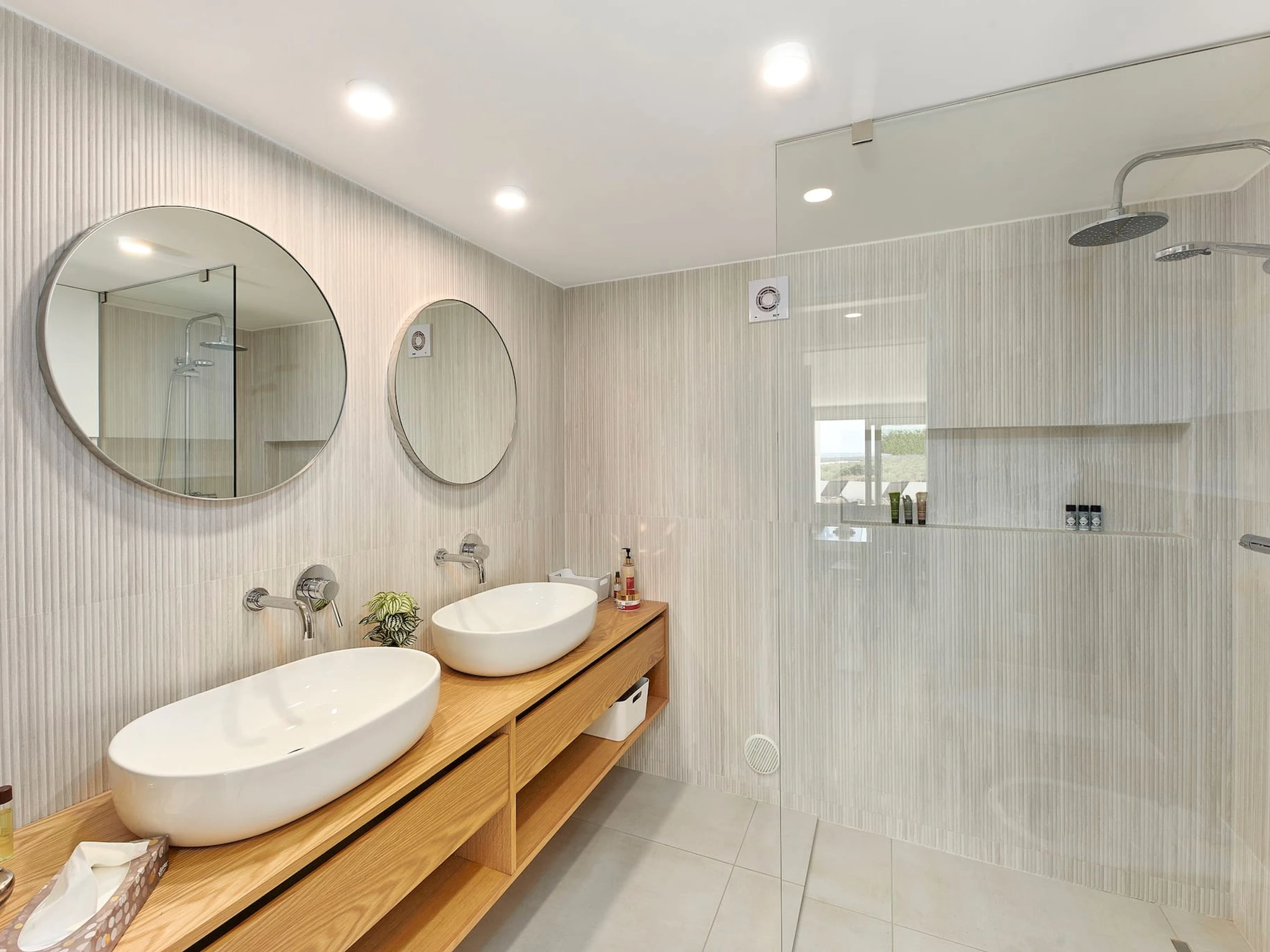 CHAMBRE 1 (Hébergement principal) - Trouvez le réconfort dans le lit king-size, des solutions de rangement soigneusement conçues, et une abondance de lumière naturelle qui baigne la pièce d'une lueur chaleureuse et accueillante.