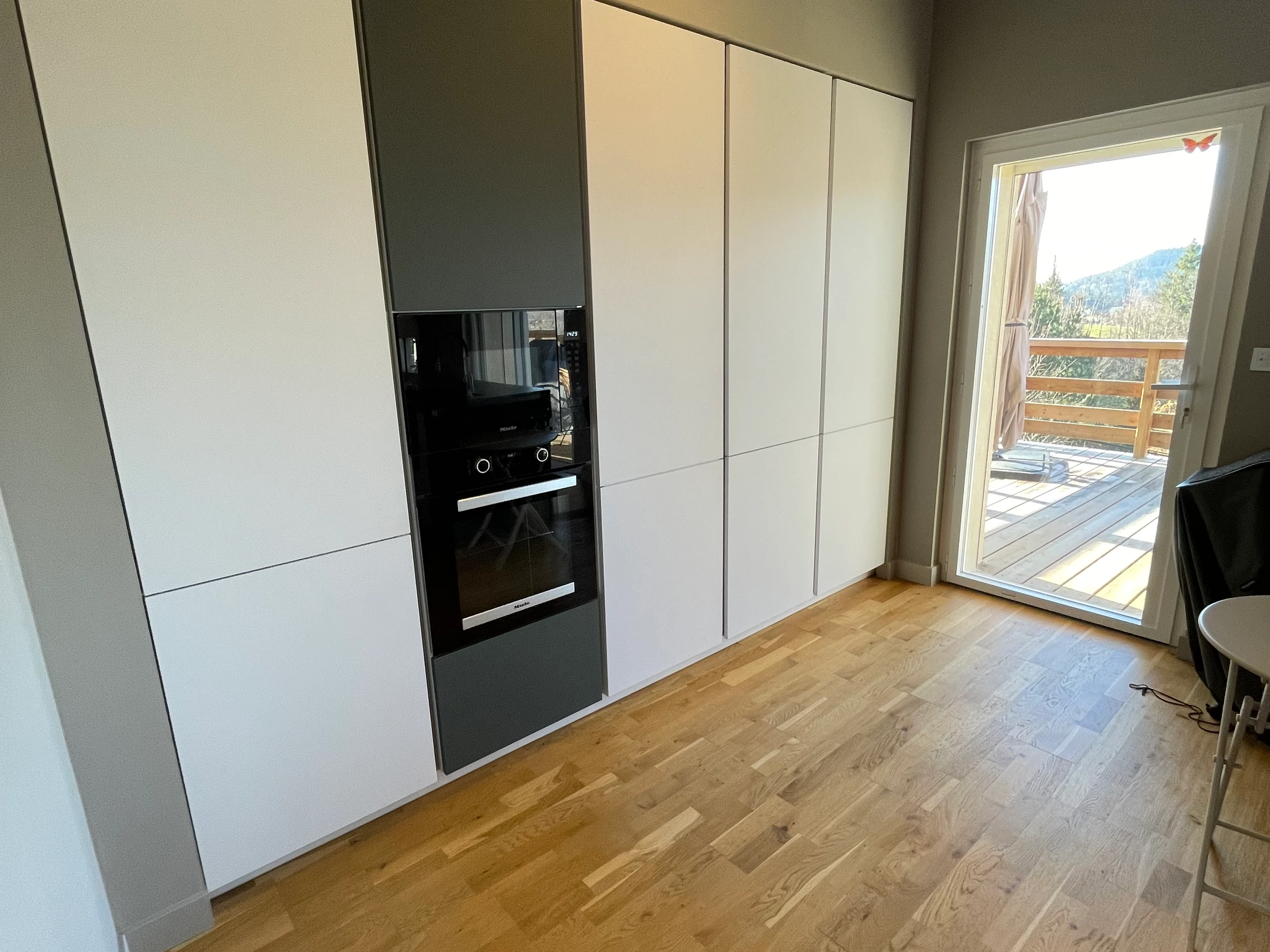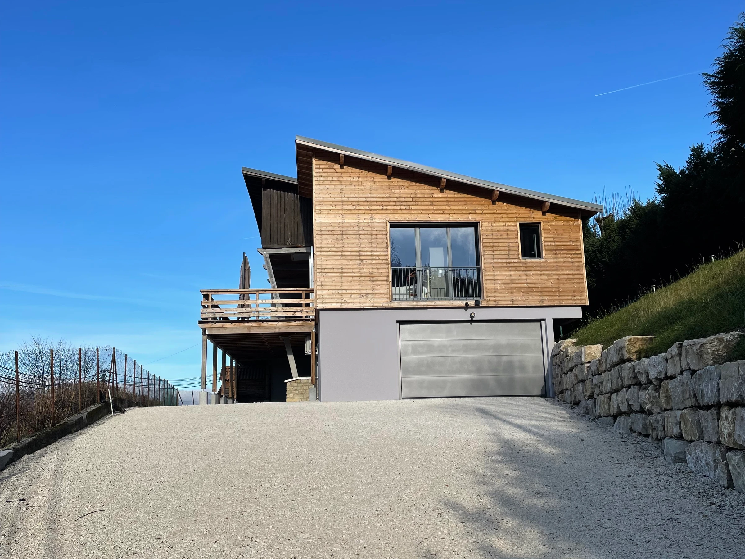 Cette maison orientée vers l’extérieur donne sur une grande terrasse-balcon exposée sud-ouest avec une vue panoramique. Le cadre est très agréable.