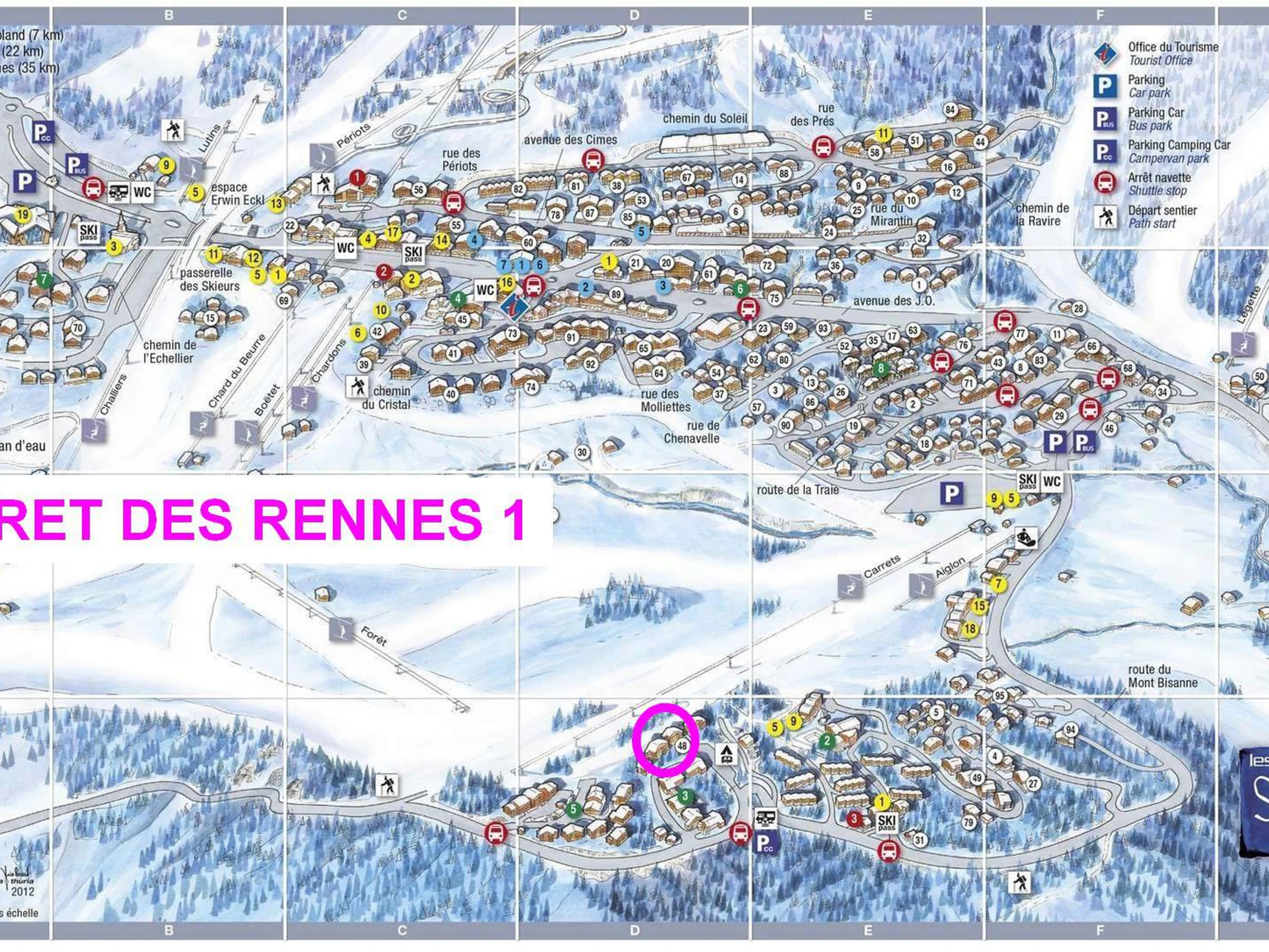 Résidence très qualitative située quartier Forêt au 1690 route bisanne. Ambiance bucolique, vue Mt Blanc et bordure immédiate de piste. Bus, caisse rm 150m, centre 2.4 kms