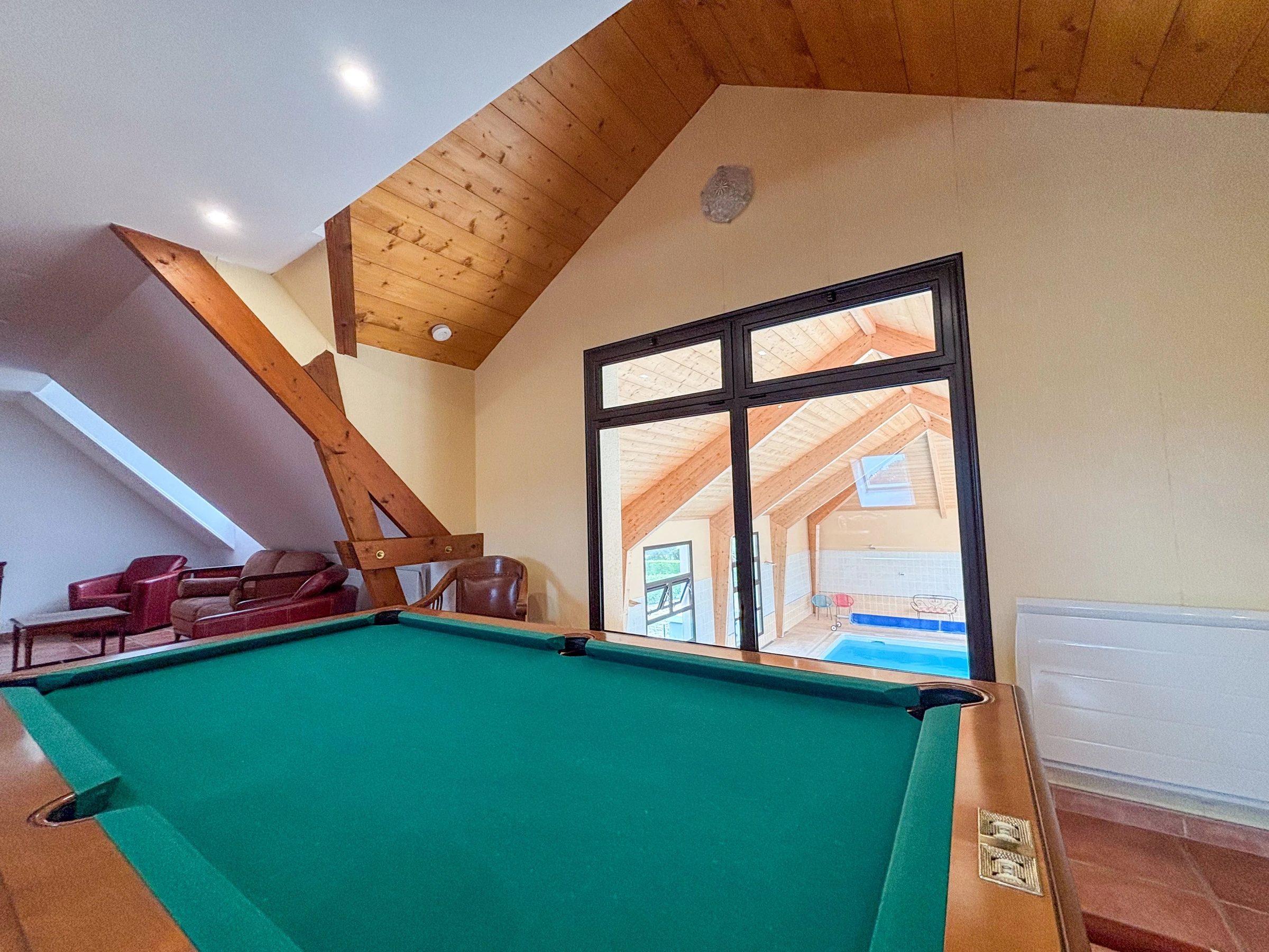A l'étage : salle de loisirs (billard, bureau, bibliothèque avec salon) - 3 chambres (lit 2 personnes) - salle de bain - wc indépendant