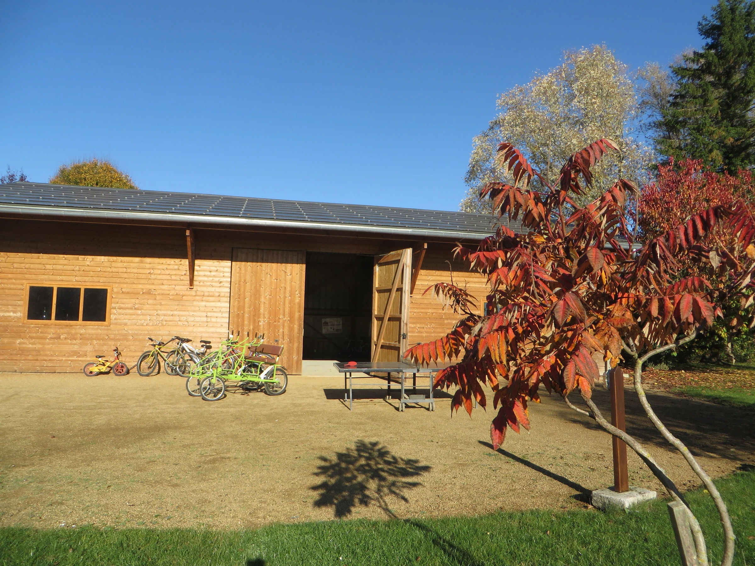 Jardin verdoyant clos (2600 m²) avec 2 terrasses (dont une sous auvent), salon de jardin, barbecue et parking. Ping-pong, baby-foot, filet de volley et vélos à disposition. Sur les terrains communaux : aire de jeux sécurisée, terrain de pétanque.