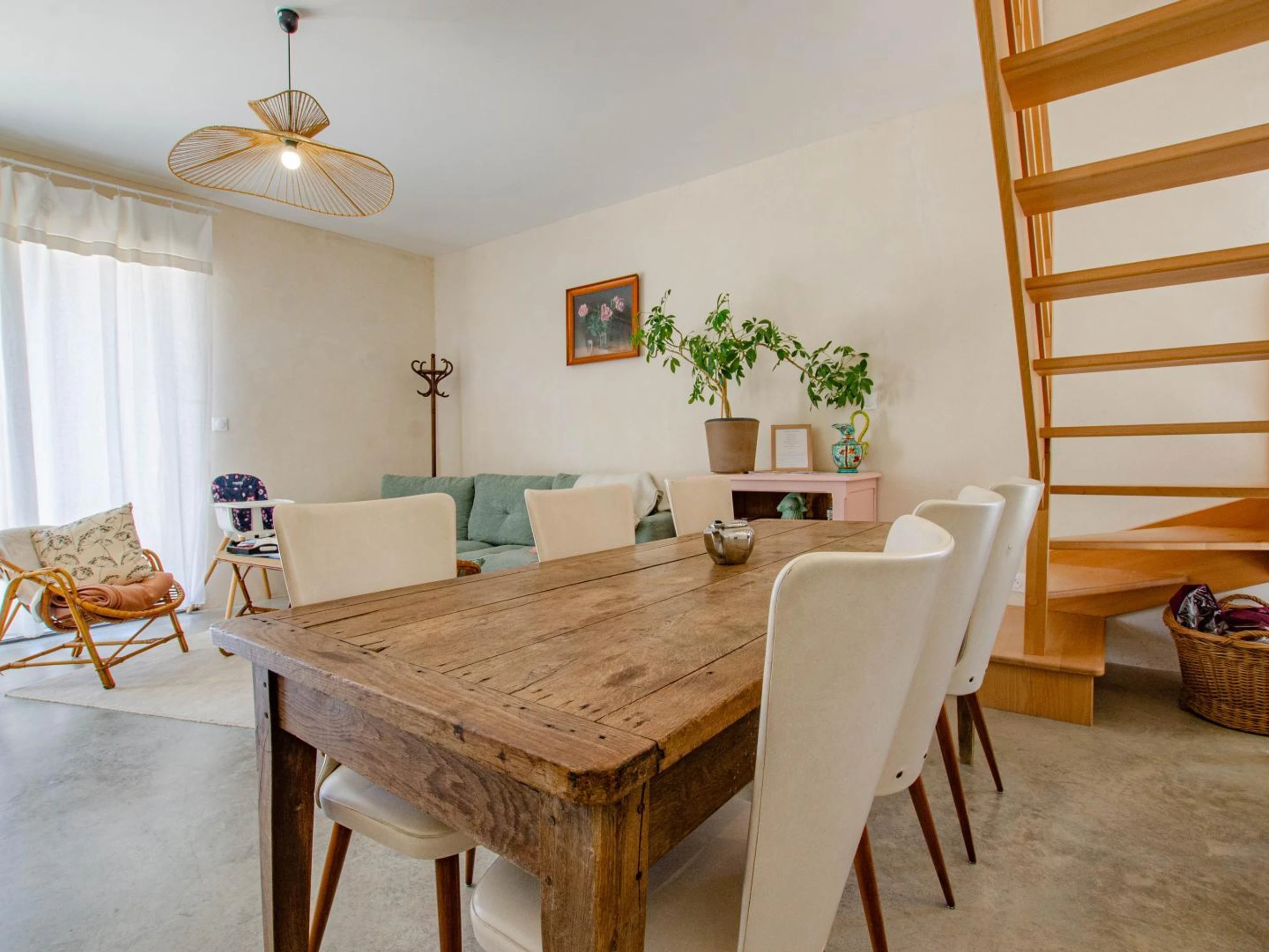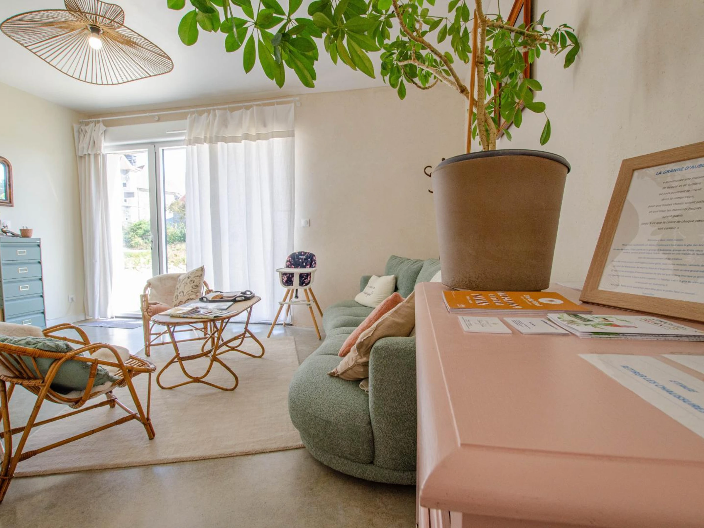 Au rez-de-chaussée, vous trouverez une cuisine ouverte équipée ouverte sur le séjour, une salle d'eau (douche, wc, vasque) et une buanderie. A l'étage, vous disposerez d'une chambre double, d'une chambre twin (2 lits simples) et d'une 3ème chambre avec 2 lits superposés (90x190). Espaces télétravail et coin lecture. A l'extérieur, vous apprécierez un espace privatif avec salon détente, plancha et une vue imprenable sur la campagne environnante. Vous pourrez pique niquer ou vous détendre dans le verger (à partager avec l'autre gite). Parking sur place dans la propriété (terrain non clos). Lits faits à l'arrivée, linge de toilette et de maison inclus. Electricité incluse dans la limite d'une consommation normale (relevé de compteurs), granulés pour le poêle en supplément (7€/sac). Possibilité de louer une salle sur place (infos et réservations auprès de la propriétaire). Au coeur de la Campagne auboise, à 5 km de la Route du Champagne, à 35 minutes de Troyes, niché dans une ancienne grange pleine de charme rénovée avec des matériaux bruts : béton au sol, bois, chaux et chanvre de l'Aube. Notre gite (mitoyen à un autre gite de 6 personnes) vous accueille dans un havre de paix pensé pour le ressourcement et la sérénité. Passionnée de Feng Shui, Amandine a conçu chaque espace avec soin afin d'offrir une atmosphère harmonieuse et équilibrée. L'agencement, les matériaux, les couleurs et les objets ont été choisis pour créer une ambiance chaleureuse, douce et régénérante. Que vous veniez en famille, entre amis ou en solo, vous trouverez un lieu propice à la déconnexion, au recueillement et au retour à soi. Le gîte offre tout le confort moderne dans un écrin de calme, entouré de nature, idéal pour couper du quotidien, se recentrer et retrouver l'essentiel. Idéal pour les séjours bien-être, les retraites personnelles ou les vacances déconnectées.