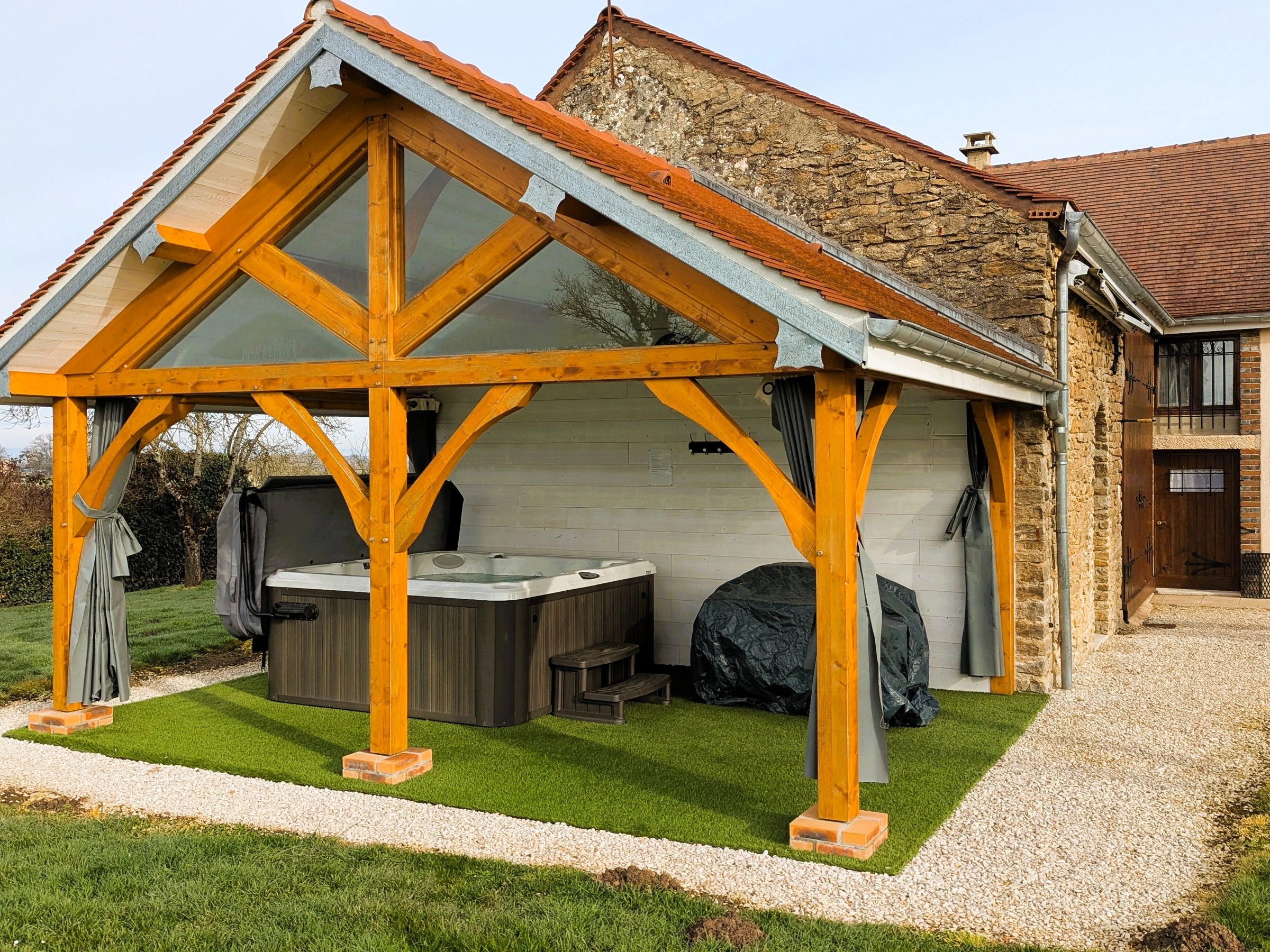 A votre disposition un spa pour vous détendre et vous relaxer afin de mieux profiter de votre séjour. Ping-pong, billard, salon de jardin, barbecue. Maison indépendante de plain pied (1 petite marche à l'entrée du gîte). Cuisine, séjour (convertible), 2 chambres (1 lit 2 personnes, 2 lits gigognes 1 pers.), salle d'eau et WC indépendant. Grand terrain clos. 2 places de stationnement.