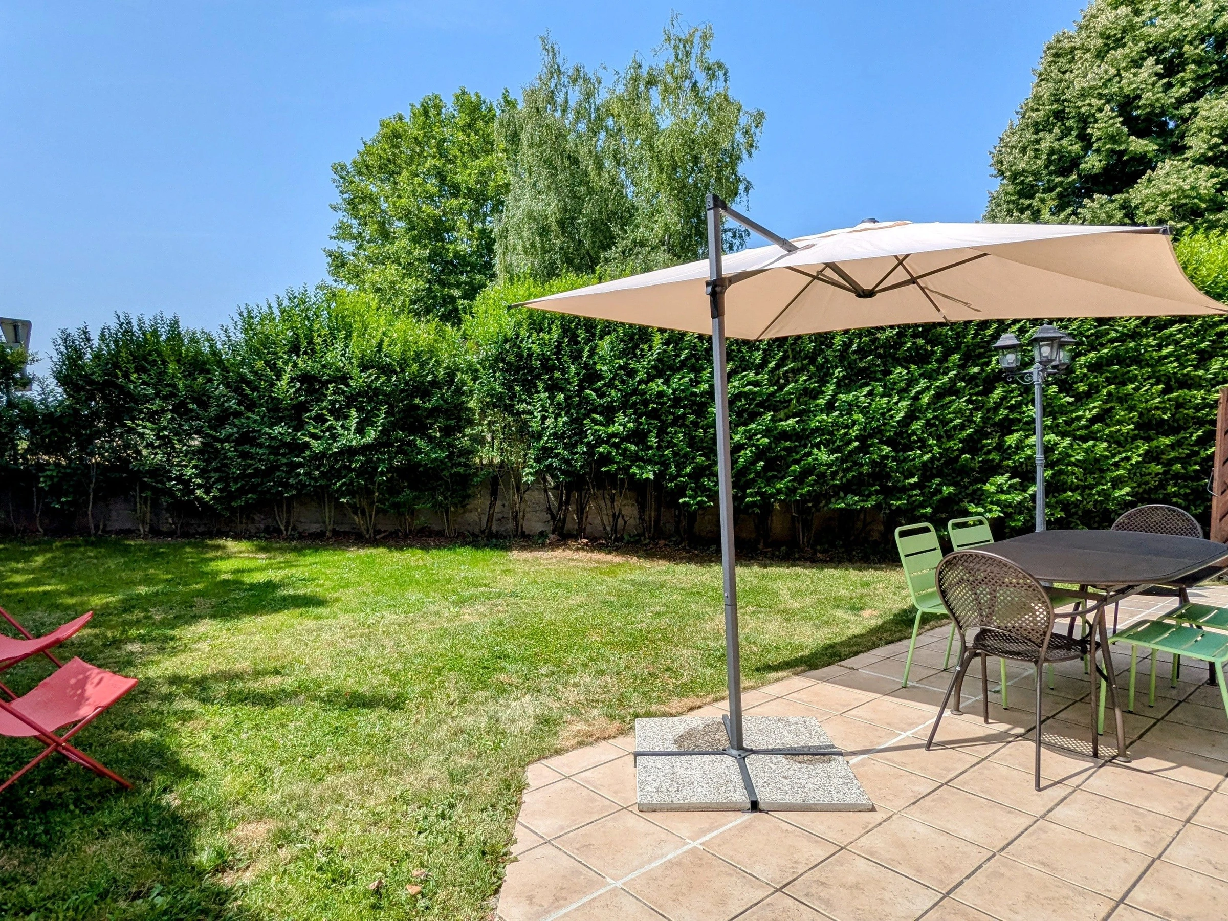 A l'extérieur: une grande cour à l'avant de la maison avec salon de jardin (possibilité de stationner 2 véhicules), 1 terrasse sur le côté de la maison plein sud avec salon de jardin, barbecue et parasol. Jardin d'agrément sans vis à vis. Environnement très calme proche de l'église classée et de la rivière .A disposition sur demande gratuitement : Lit parapluie, chaise haute, matelas à langer, pot et baignoire bébé.