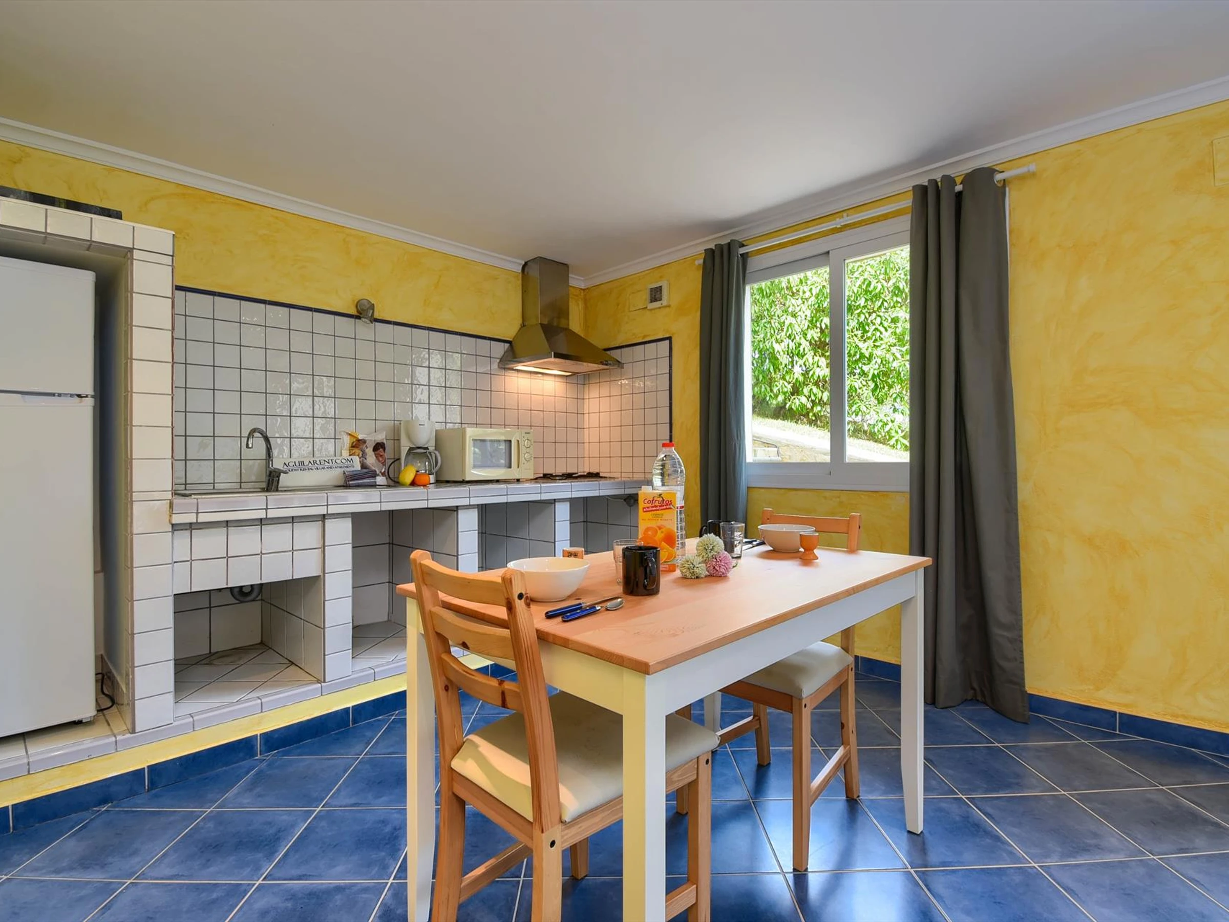 * Cuisine avec plaque de cuisson à gaz, micro-ondes et réfrigérateur