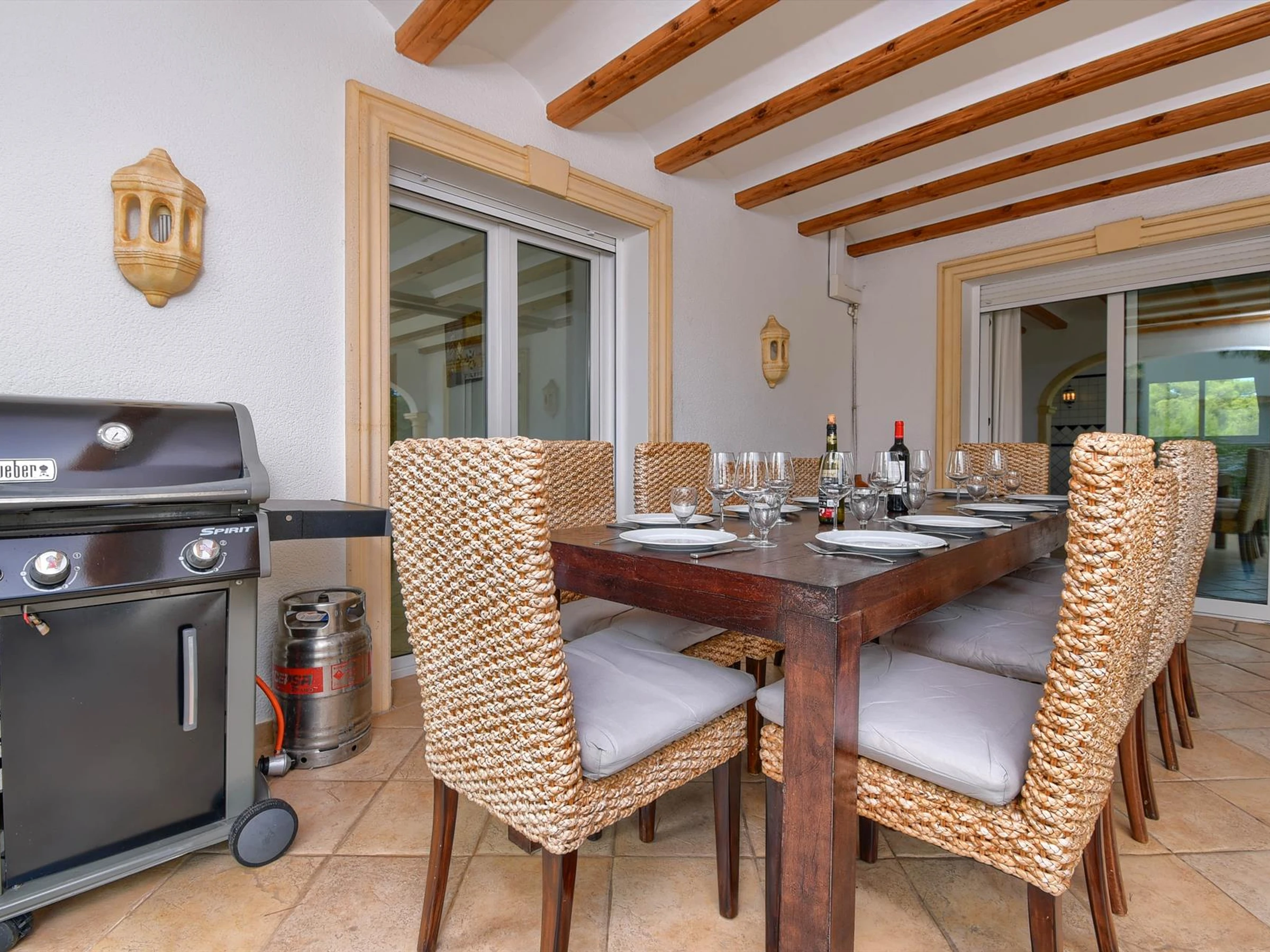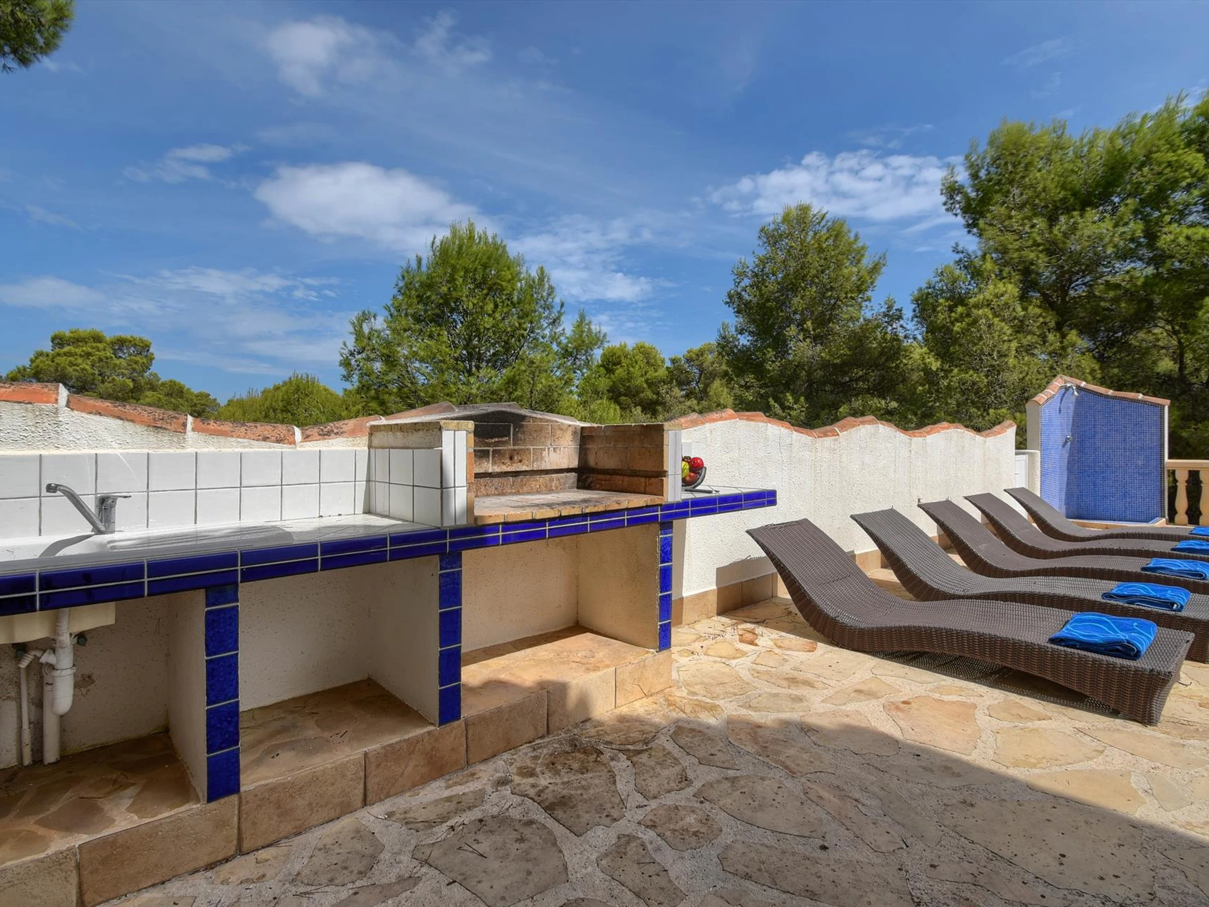Magnifique et charmante villa avec piscine privée à Jávea, Costa Blanca, Espagne pour 12 personnes. La maison est située dans une zone résidentielle de plage vallonnée et boisée, proche des supermarchés et à 4 km de la plage de La Granadella, Jávea.
