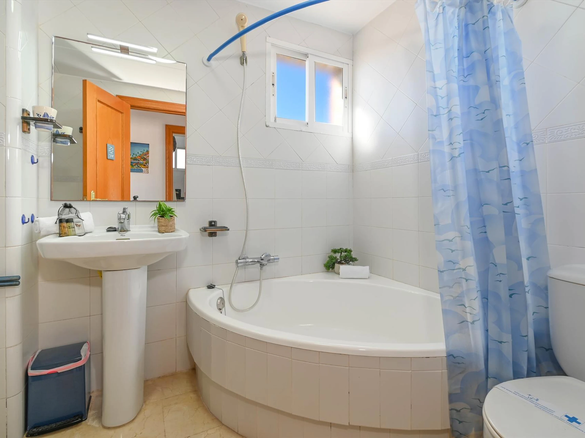 * Salle de bains avec lavabo simple, combinaison baignoire/douche, bidet et