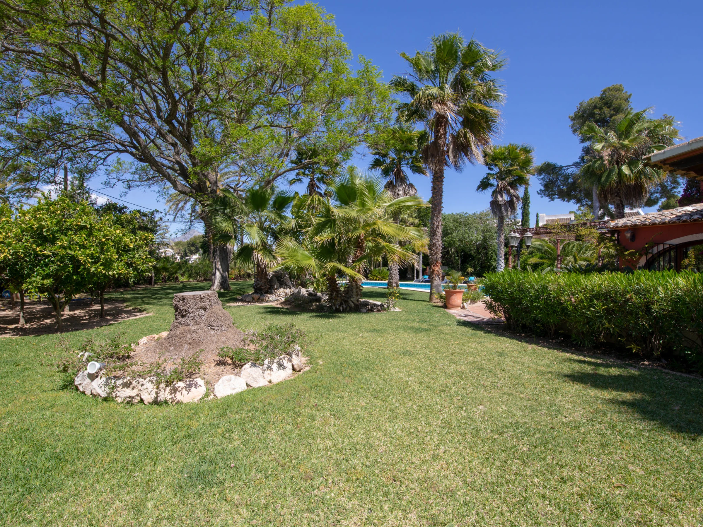 Belle, grande villa ancienne "Adelfa", de 2 étages. Dans la localité, à 2.5 km du centre de Jávea, situation tranquille, ensoleillée quartier résidentiel, à 2.5 km de la mer, à 2.5 km de la plage. A usage privé: grand, beau jardin 2'500 m2 (clôturé) avec plantes et arbres, piscine (10 x 8 m, profondeur 120 - 210 cm, disponibilité saisonnière: [hidden] - [hidden] avec marches intérieures. Jardinet, tonnelle, pergola, terrasse, meubles de jardin. Infrastructures de la Maison: chauffage central, lave-linge. Place de parking (pour 4 voitures) sur le terrain. Supermarché 850 m, restaurant 550 m, arrêt de bus 3 km, plage de sable "Arenal" 2.5 km. Terrain de golf (9 trous) 6 km, ecole de surf 2.5 km, ecole de voile 2.5 km, tennis 2.8 km. Le propriétaire n'accepte pas les groupes de jeunes. Environnement très sensible au bruit. Silence et bonne tenue exigés.