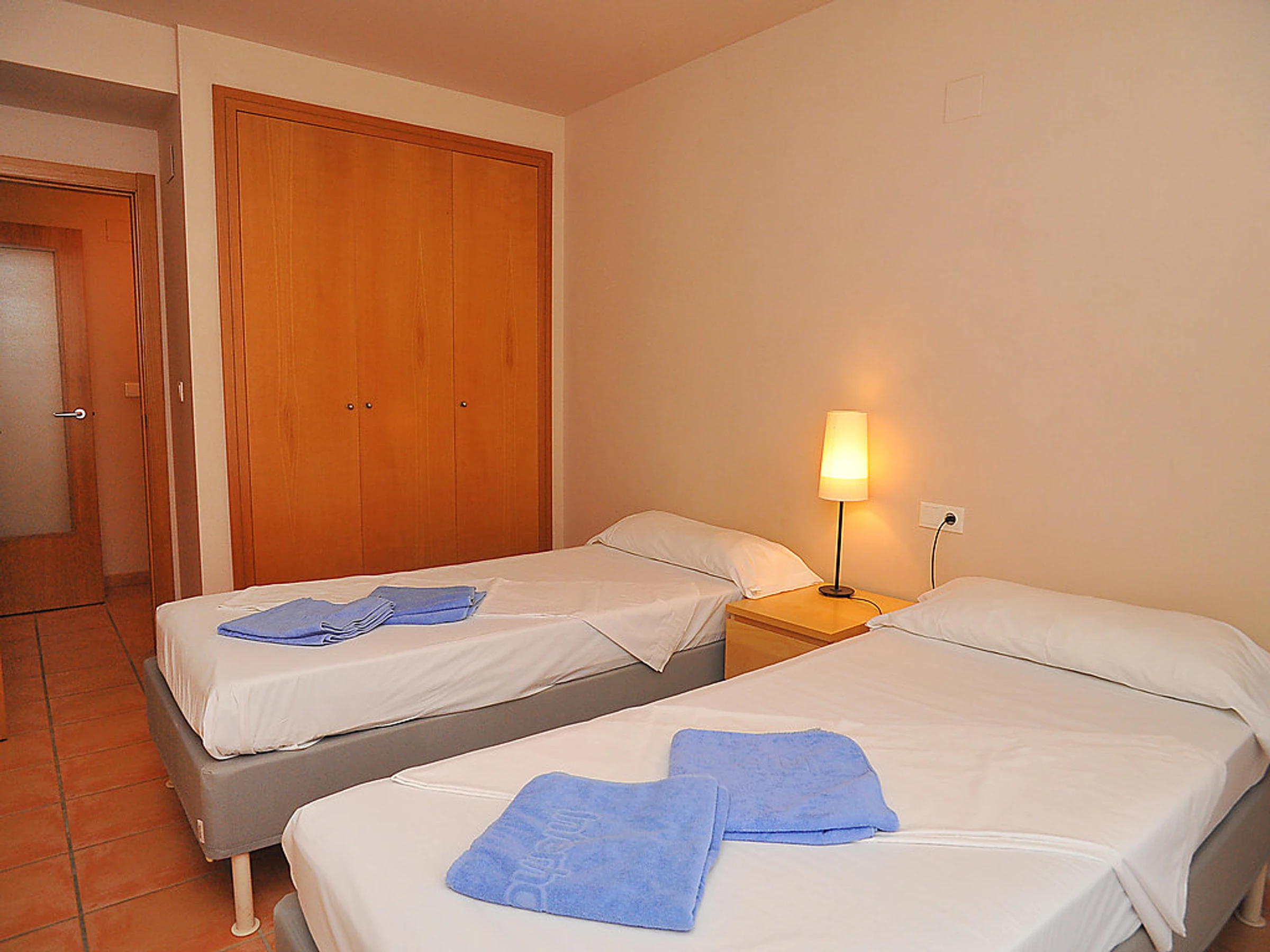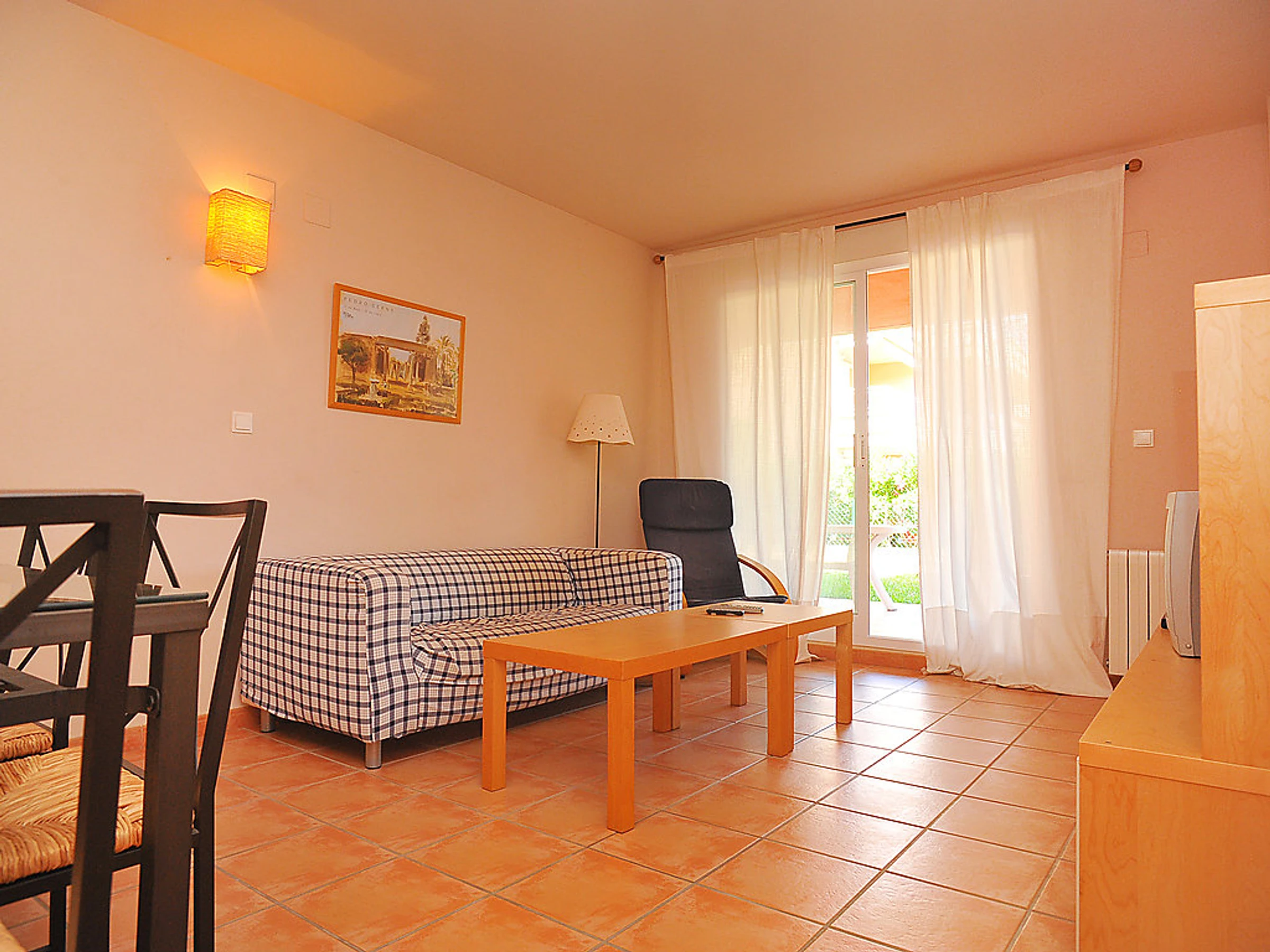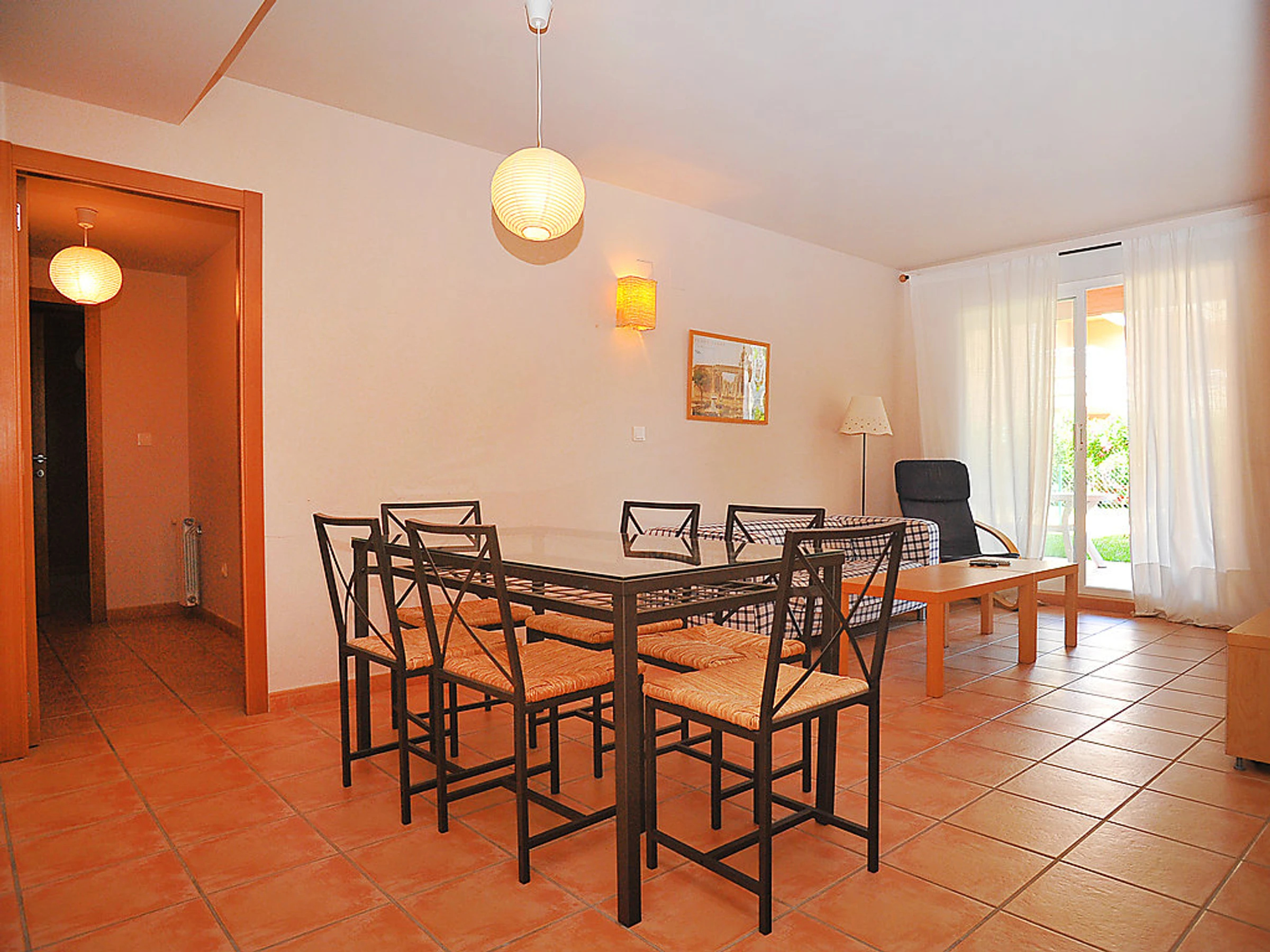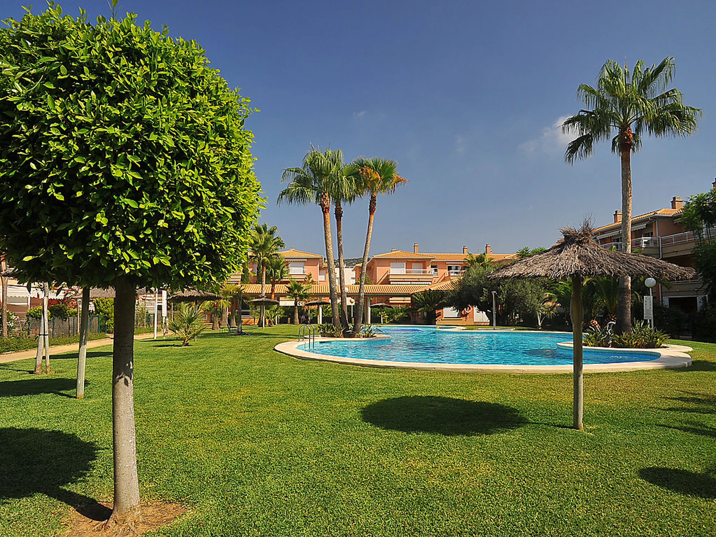 Belle résidence "La Senia". Situation centrale, à 500 m de la mer. En commun: jardin (clôturé) avec pelouse, plantes, fleurs et arbres, piscine (01.01.-31.12.) avec marches intérieures. Bassin pour les enfants. Infrastructures de la Maison: ascenseur, chauffage central. Supermarché 50 m, restaurant 200 m, plage de sable "Arenal" 1.7 km plage de graviers "Montanar I" 500 m. Veuillez noter: D’autres appartements sont également proposés à la location dans cette maison de vacances.