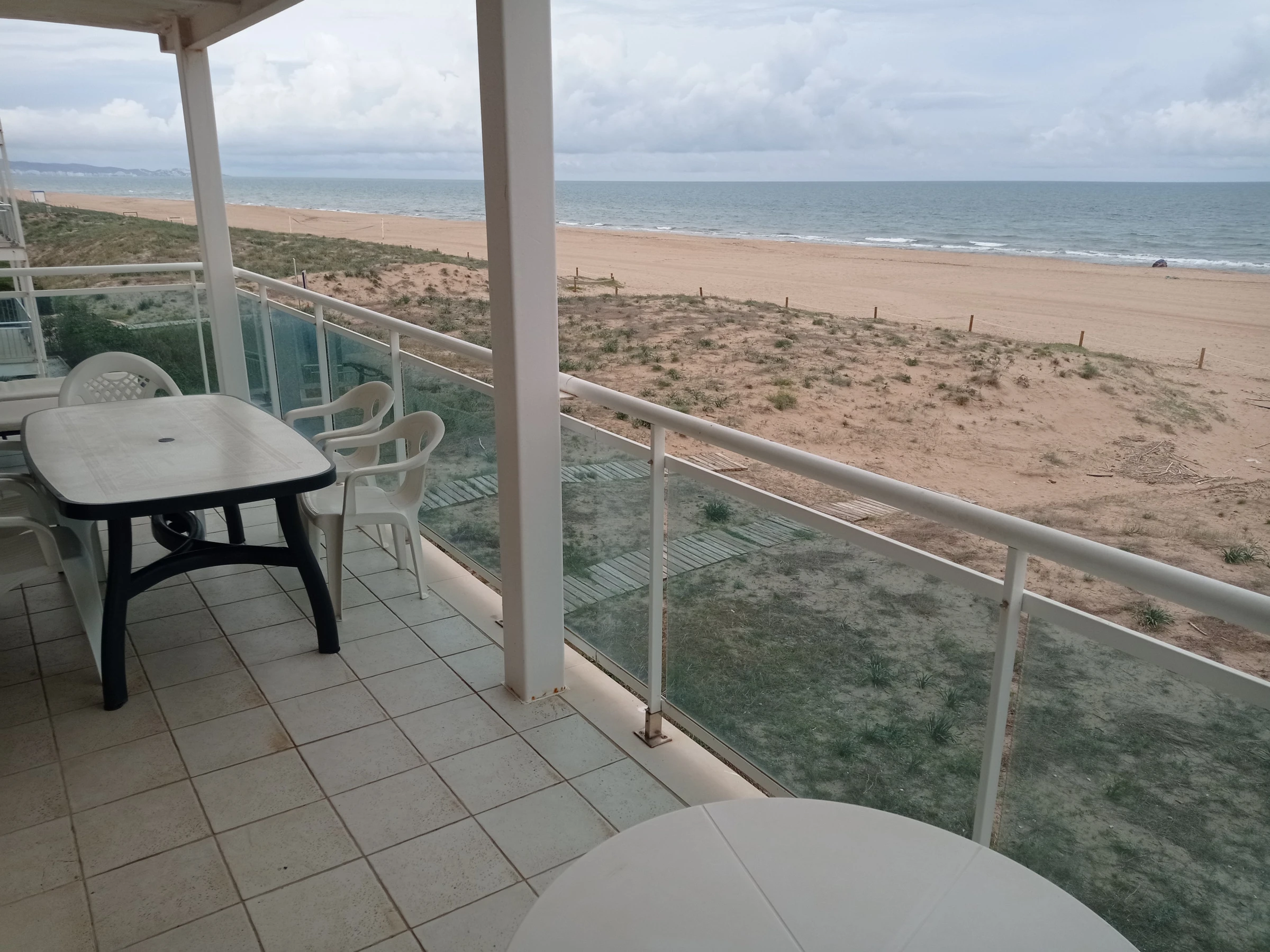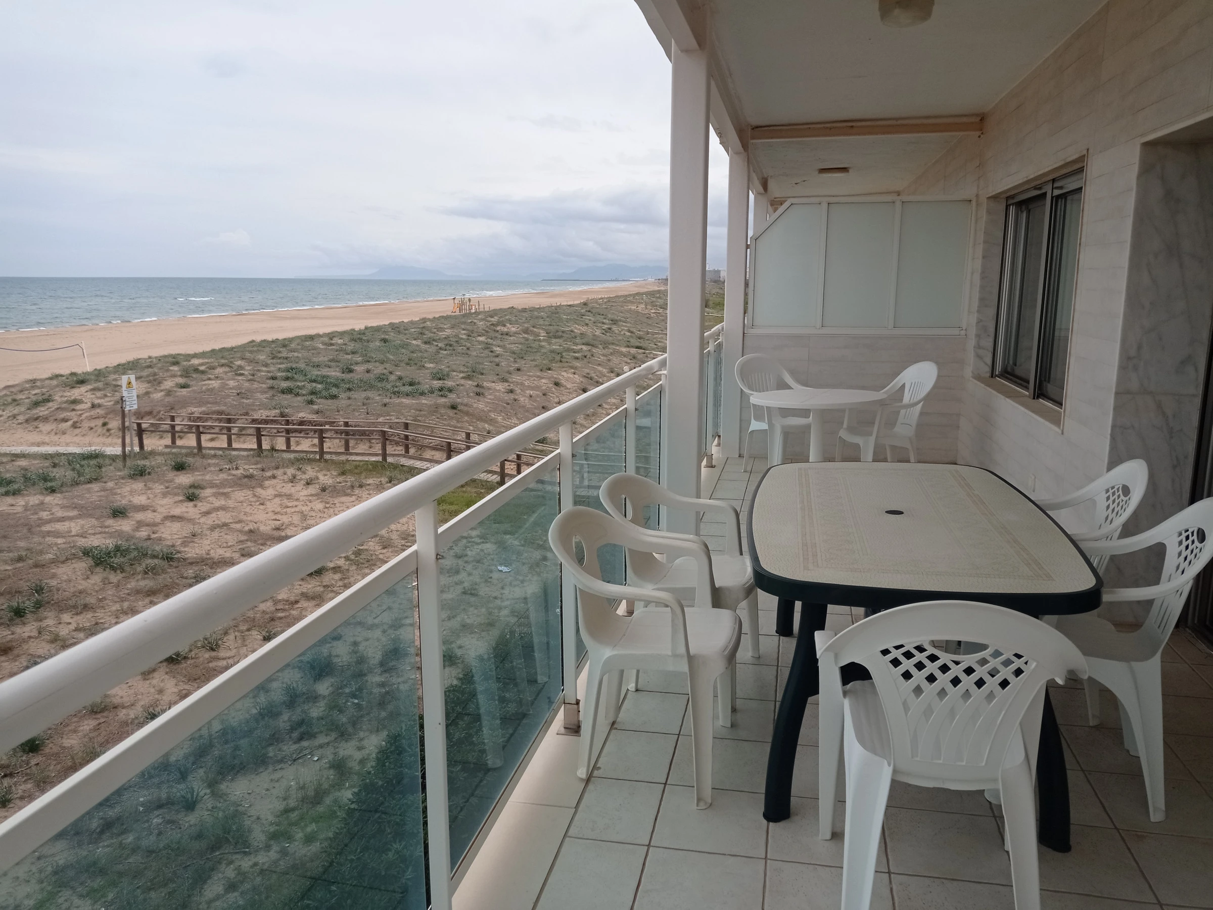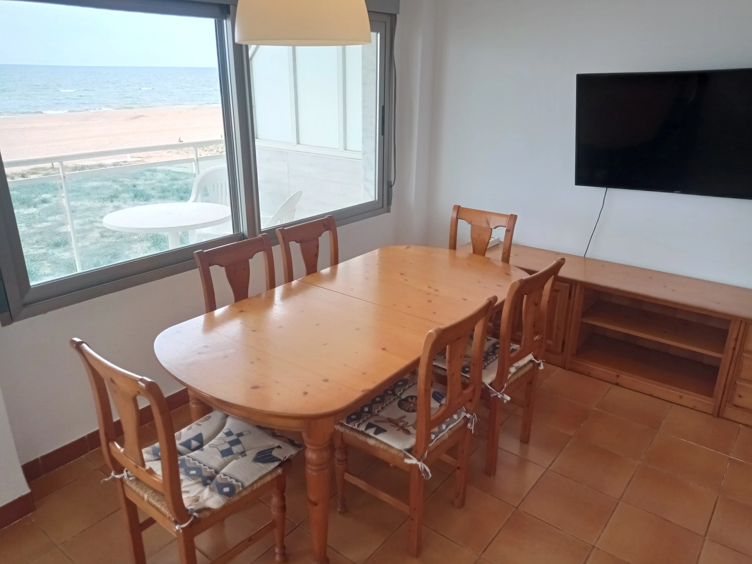 Appartement situé au deuxième étage avec trois chambres, deux salles de bains (toutes deux avec douche), grande cuisine rénovée indépendante avec zone repas, idéale pour les petits-déjeuners. Grand salon-salle à manger avec sortie sur une large terrasse d'orientation Est frontale. Vues spectaculaires sur la mer et la plage, tant depuis la terrasse que depuis n'importe quel point du salon-salle à manger.