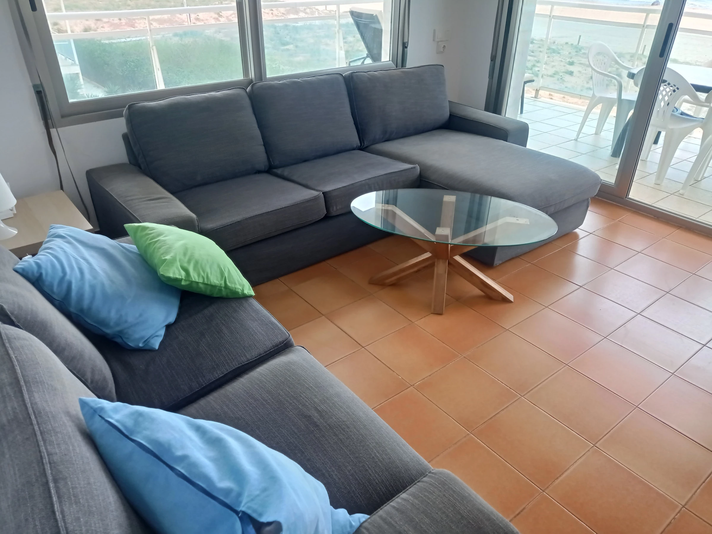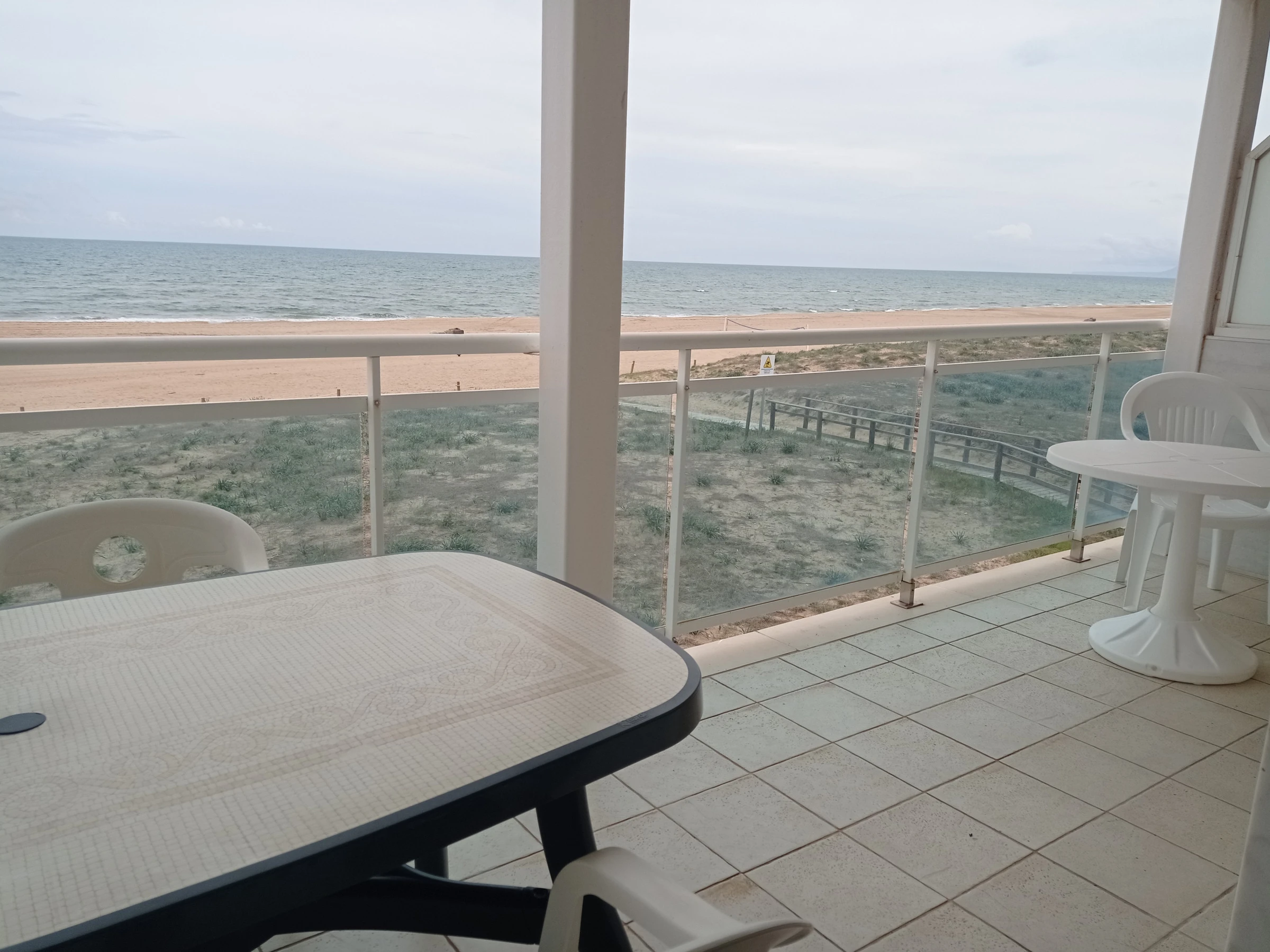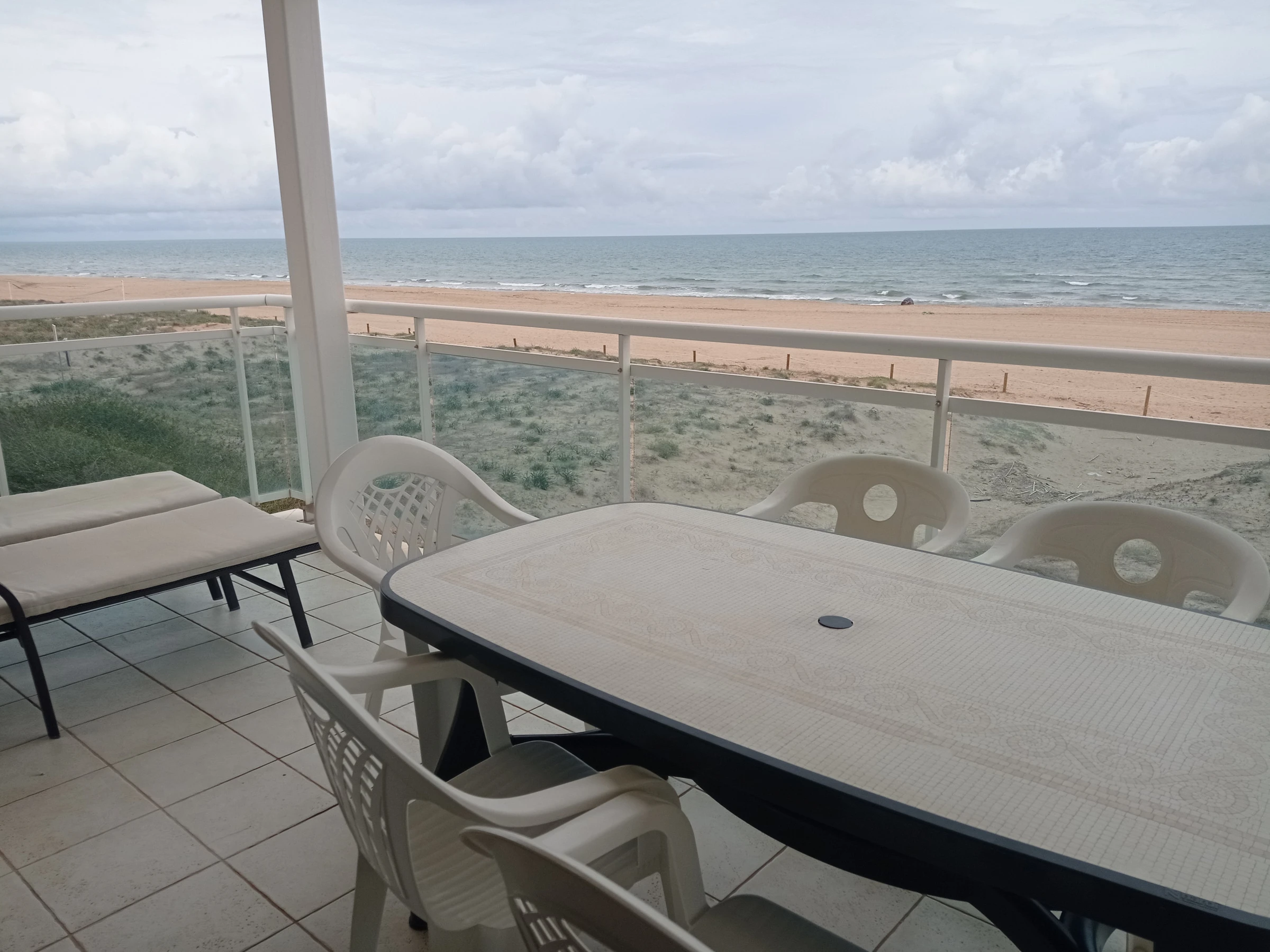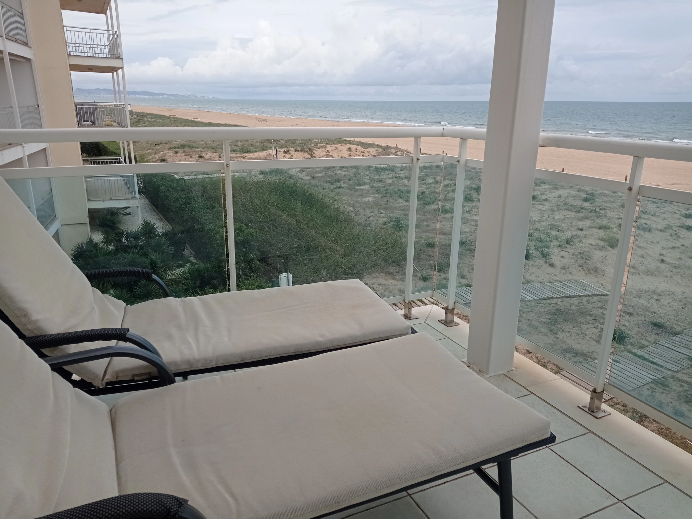Appartement situé au deuxième étage avec trois chambres, deux salles de bains (toutes deux avec douche), grande cuisine rénovée indépendante avec zone repas, idéale pour les petits-déjeuners. Grand salon-salle à manger avec sortie sur une large terrasse d'orientation Est frontale. Vues spectaculaires sur la mer et la plage, tant depuis la terrasse que depuis n'importe quel point du salon-salle à manger.
