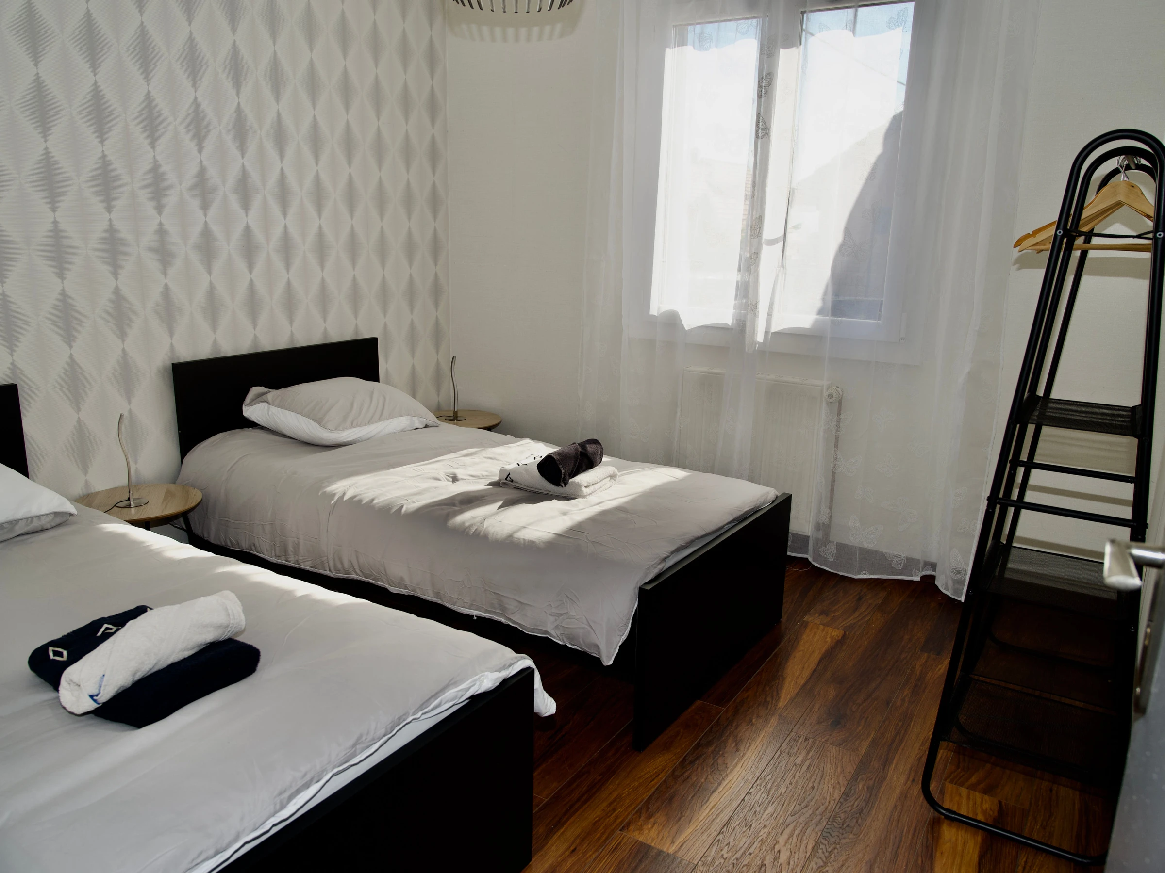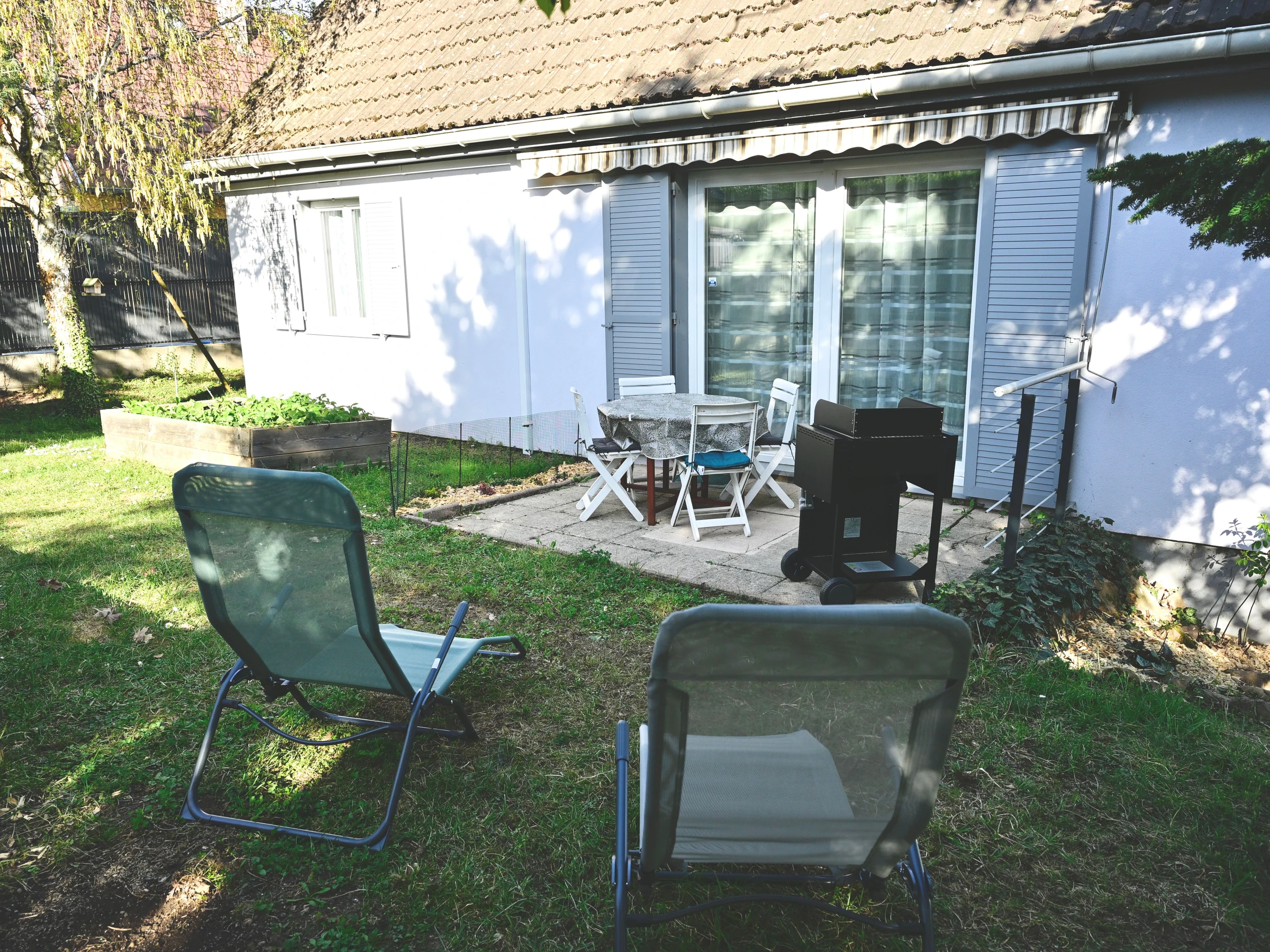 Gîte indépendant Au Sapin Bleu Gîte indépendant comprenant une cuisine aménagée, un séjour, un salon avec TV, une chambre avec un lit double (140cm x 190cm), une chambre deux lits simples (90cm x 190cm), une salle d'eau avec douche italienne et un wc indépendant. Terrasse privative close avec salon de jardin, store, transat et barbecue. Parking privatif. Draps, linge de table et linge de toilette inclus. Forfait ménage proposé à 50€.